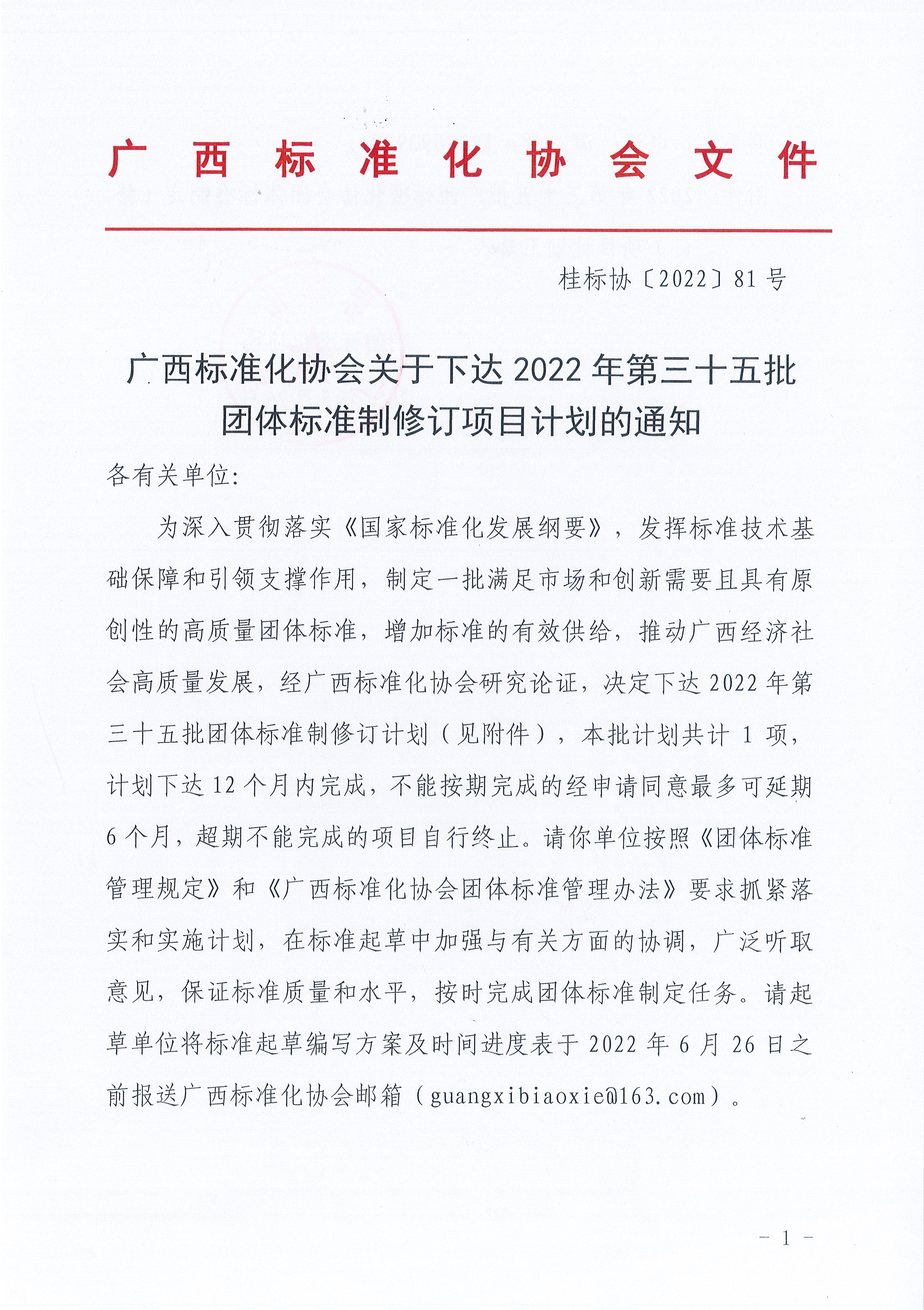 广西标准化协会关于下达2022年第三十五批团体标准制修订项目计划的通知