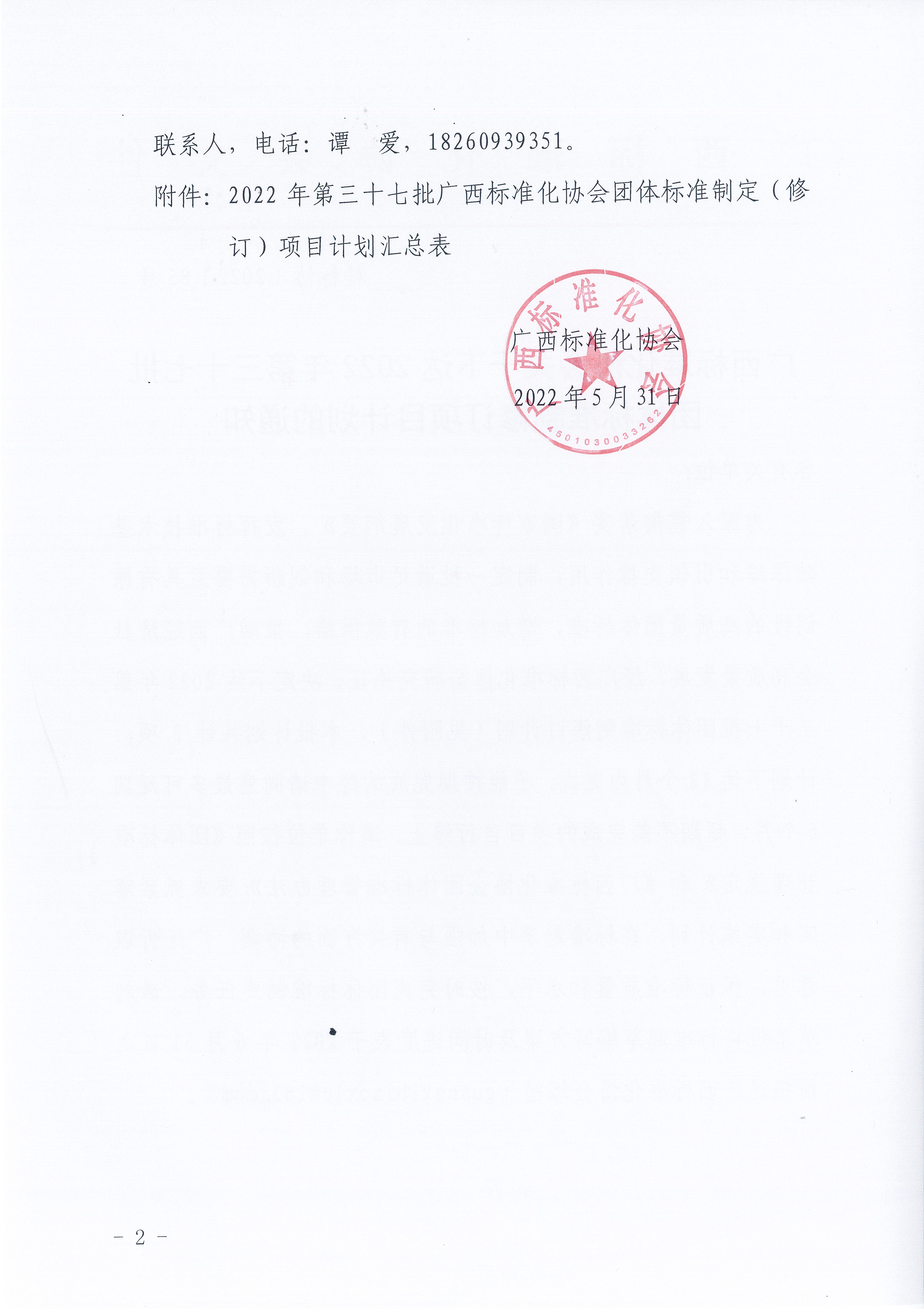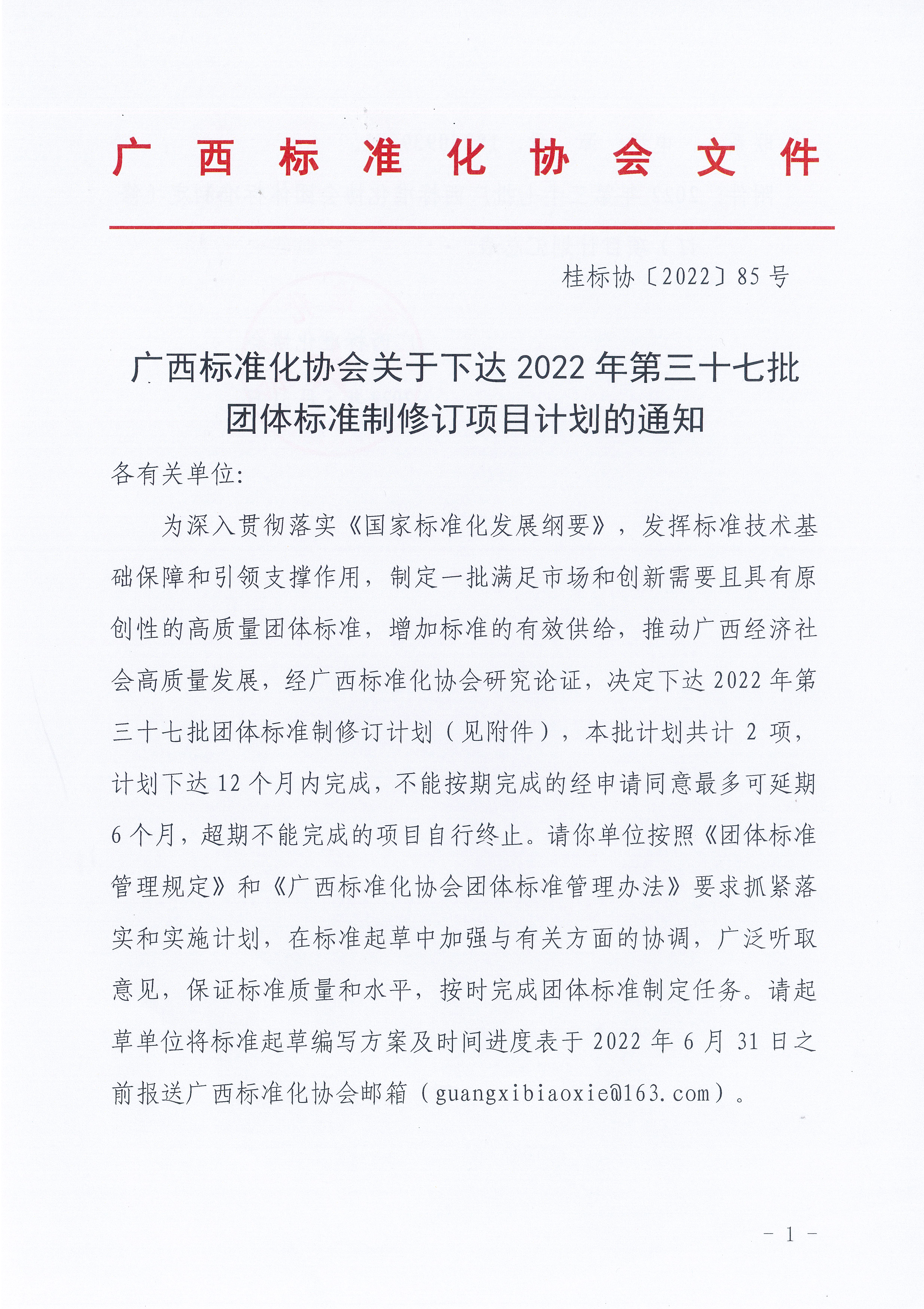 广西标准化协会关于下达2022年第三十七批团体标准制修订项目计划的通知