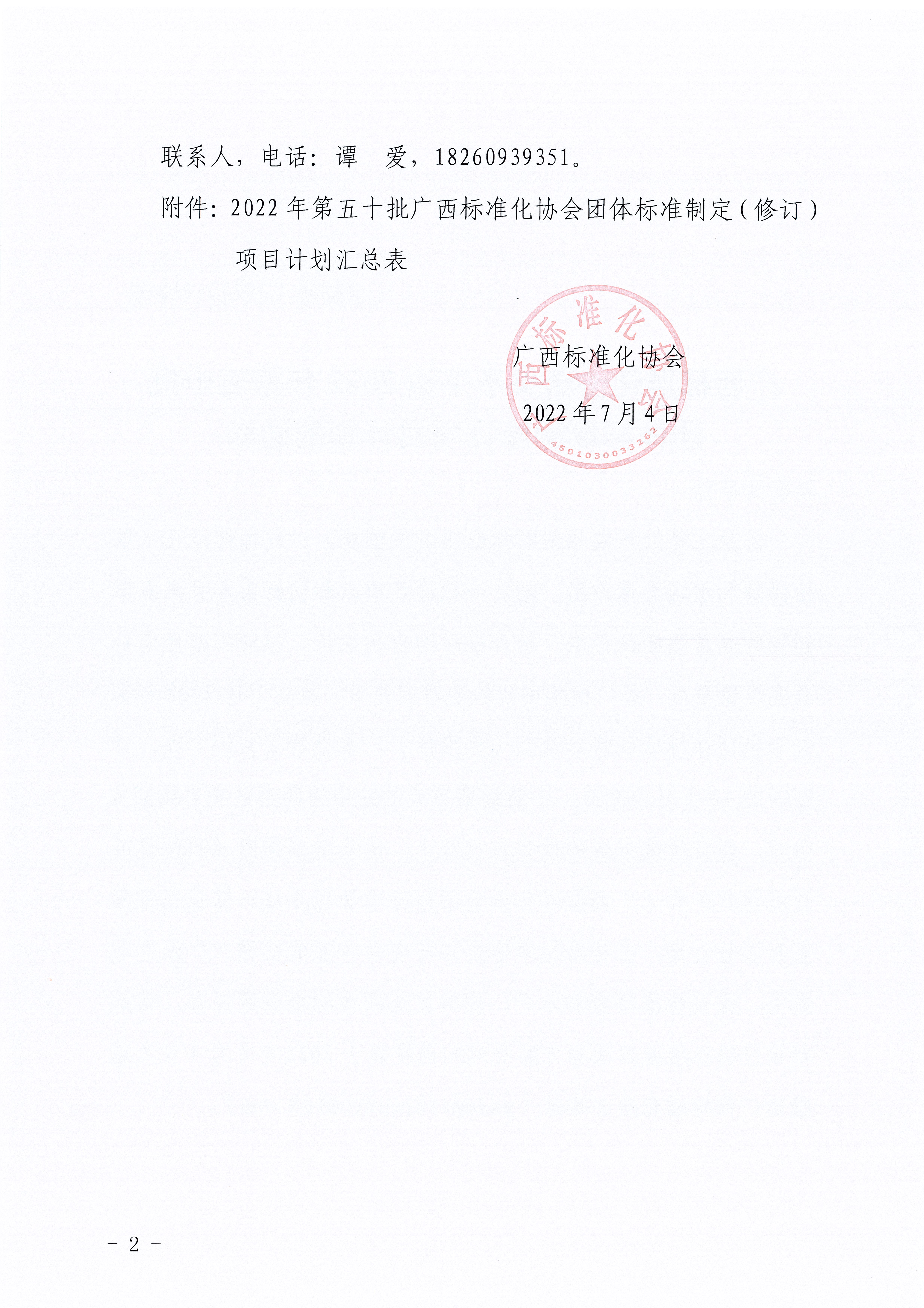 广西标准化协会关于下达2022年第五十批团体标准制修订项目计划的通知