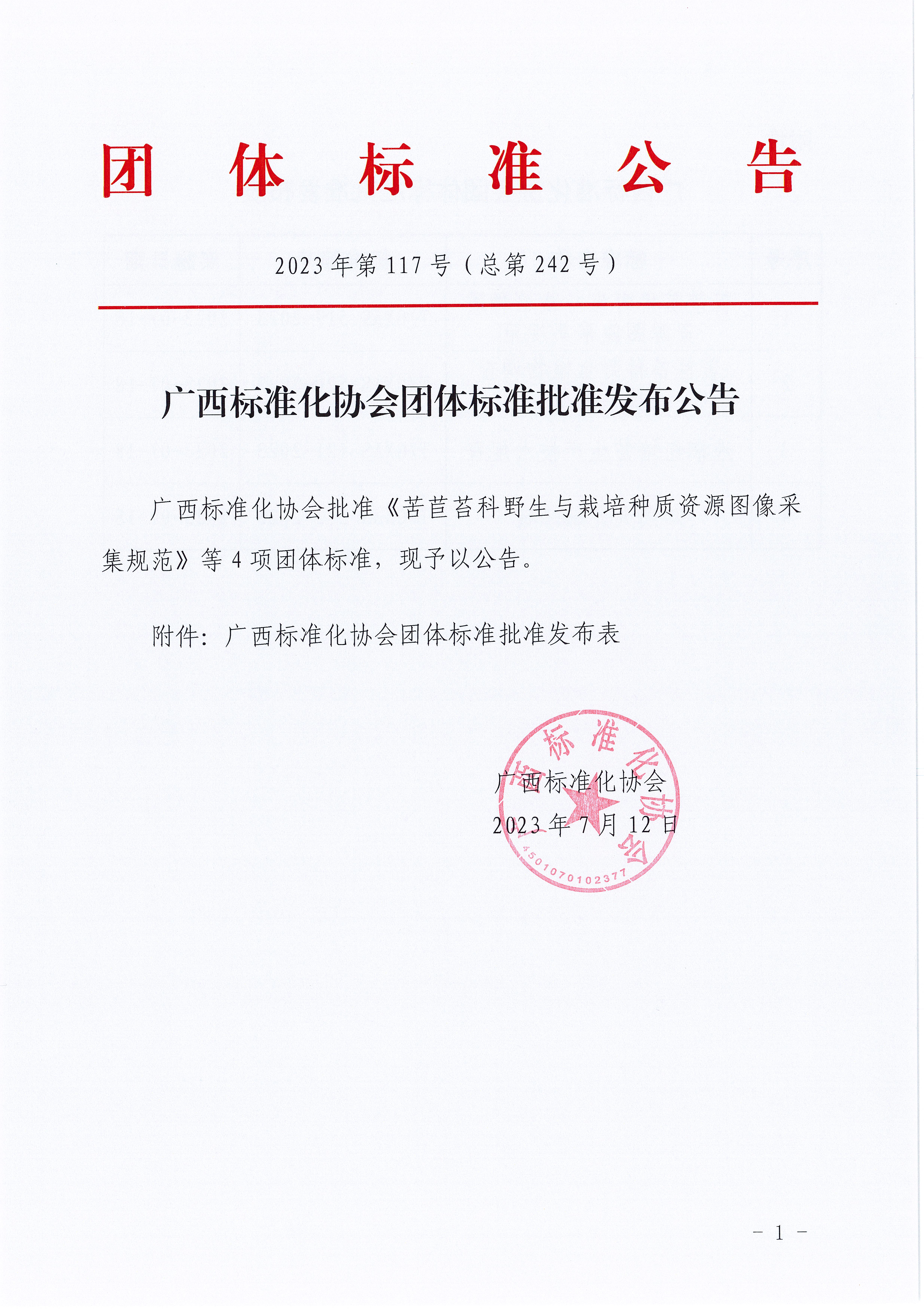 广西标准化协会团体标准批准发布公告《2023年第117号(总第242号)》