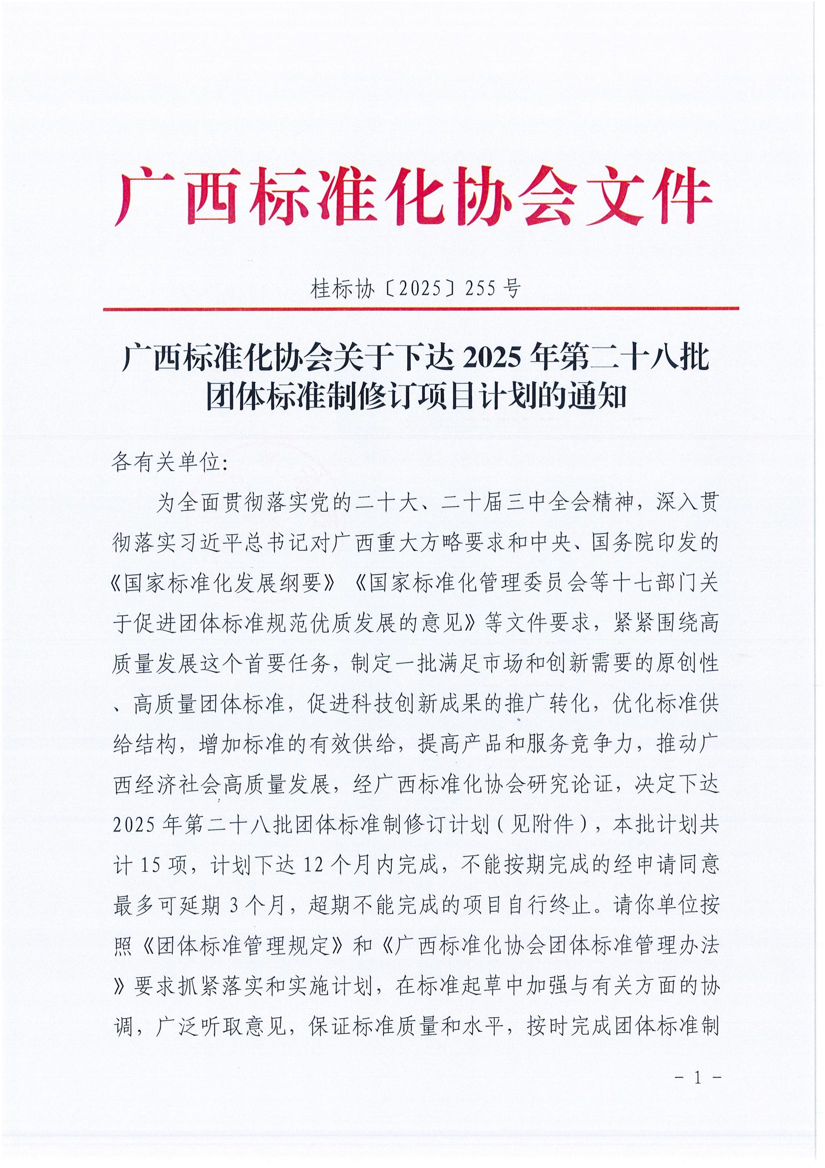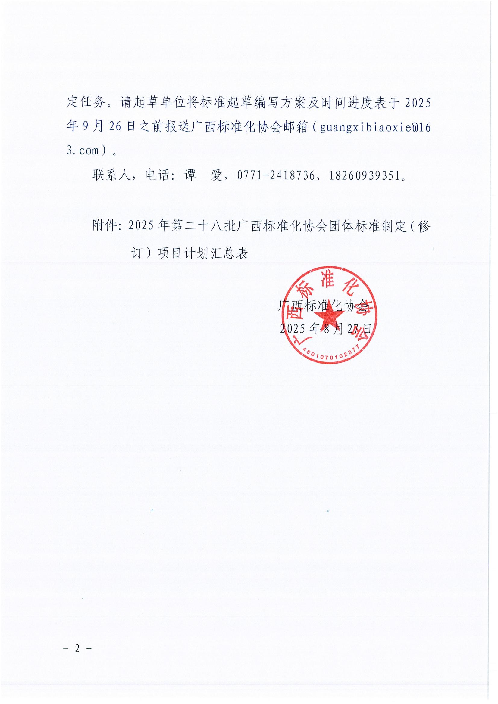 广西标准化协会关于下达2025年第二十八批团体标准制修订项目计划的通知