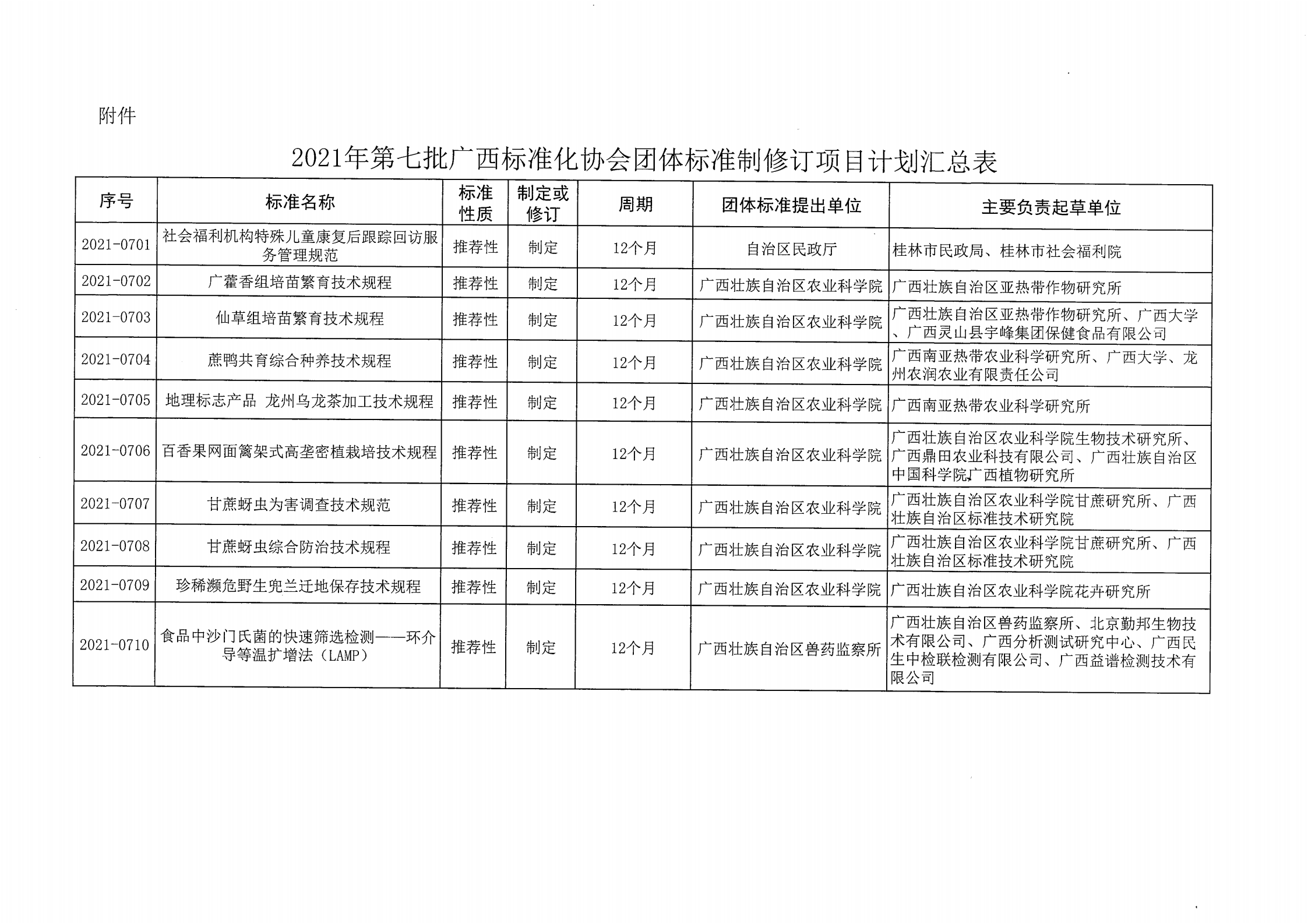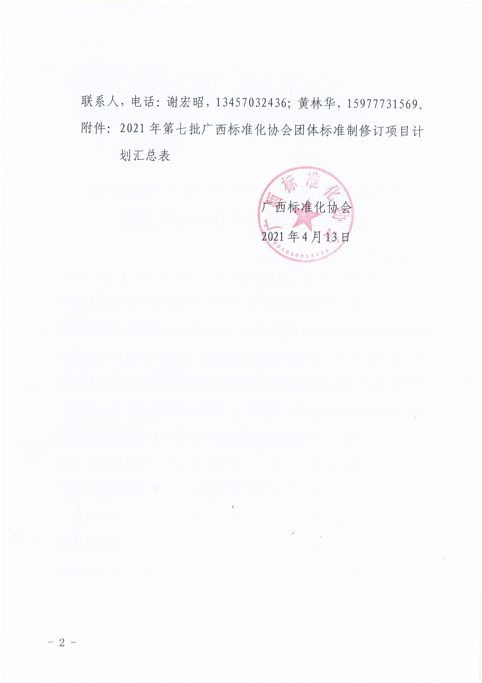 广西标准化协会关于下达2021年第七批团体标准制修订项目计划的通知