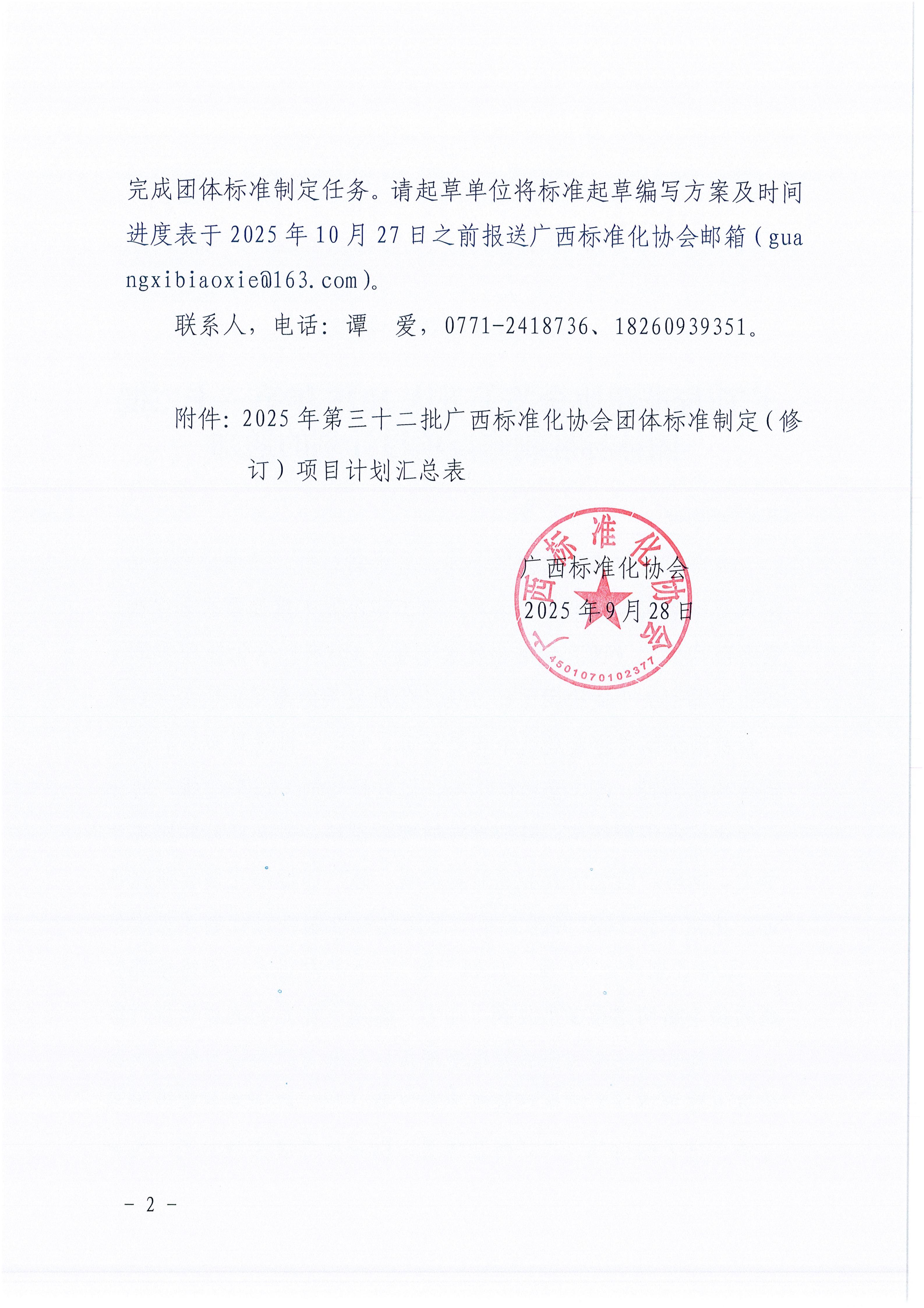 广西标准化协会关于下达2025年第三十二批团体标准制修订项目计划的通知
