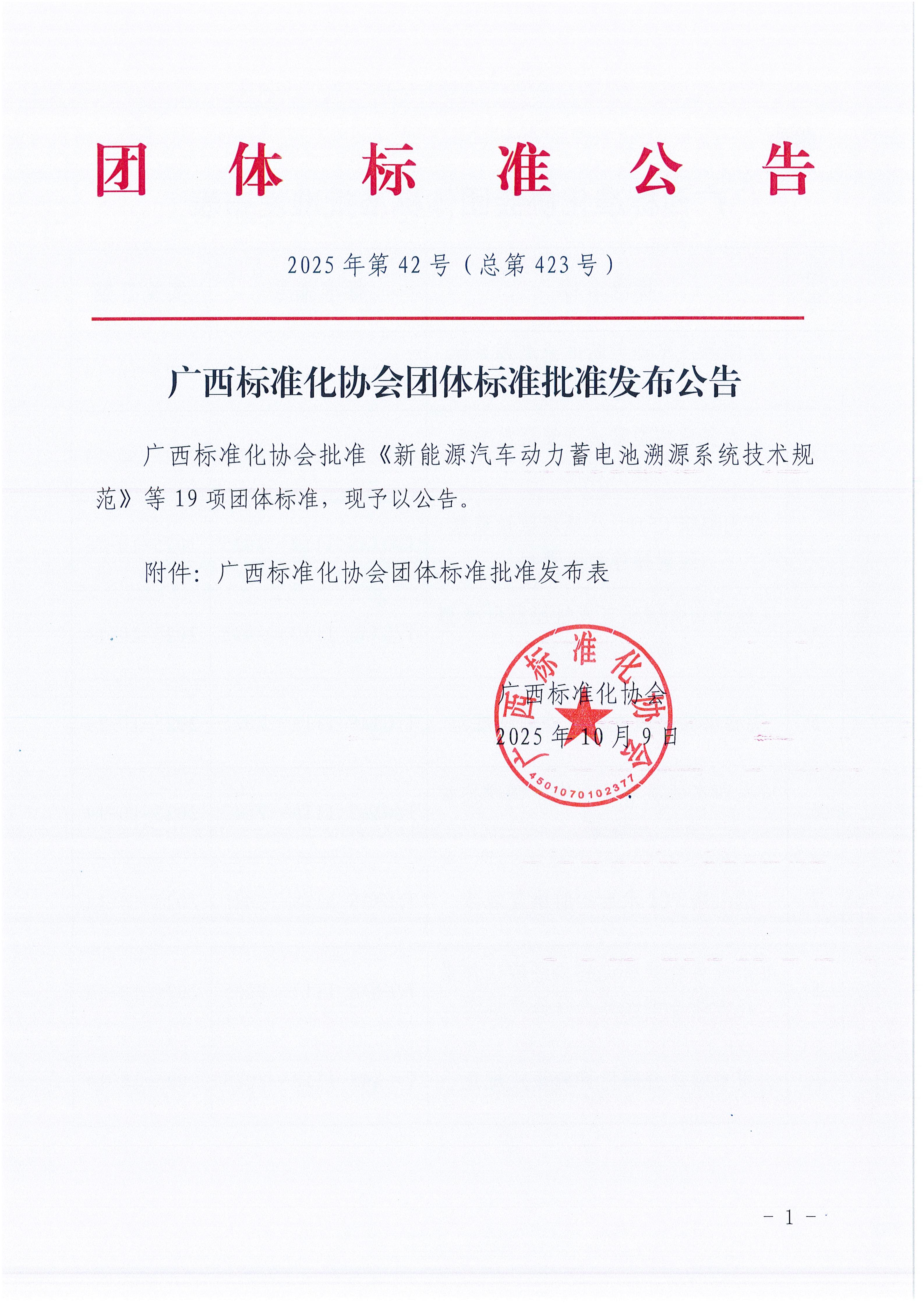 广西标准化协会团体标准批准发布公告《2025年第42号(总第423号)》