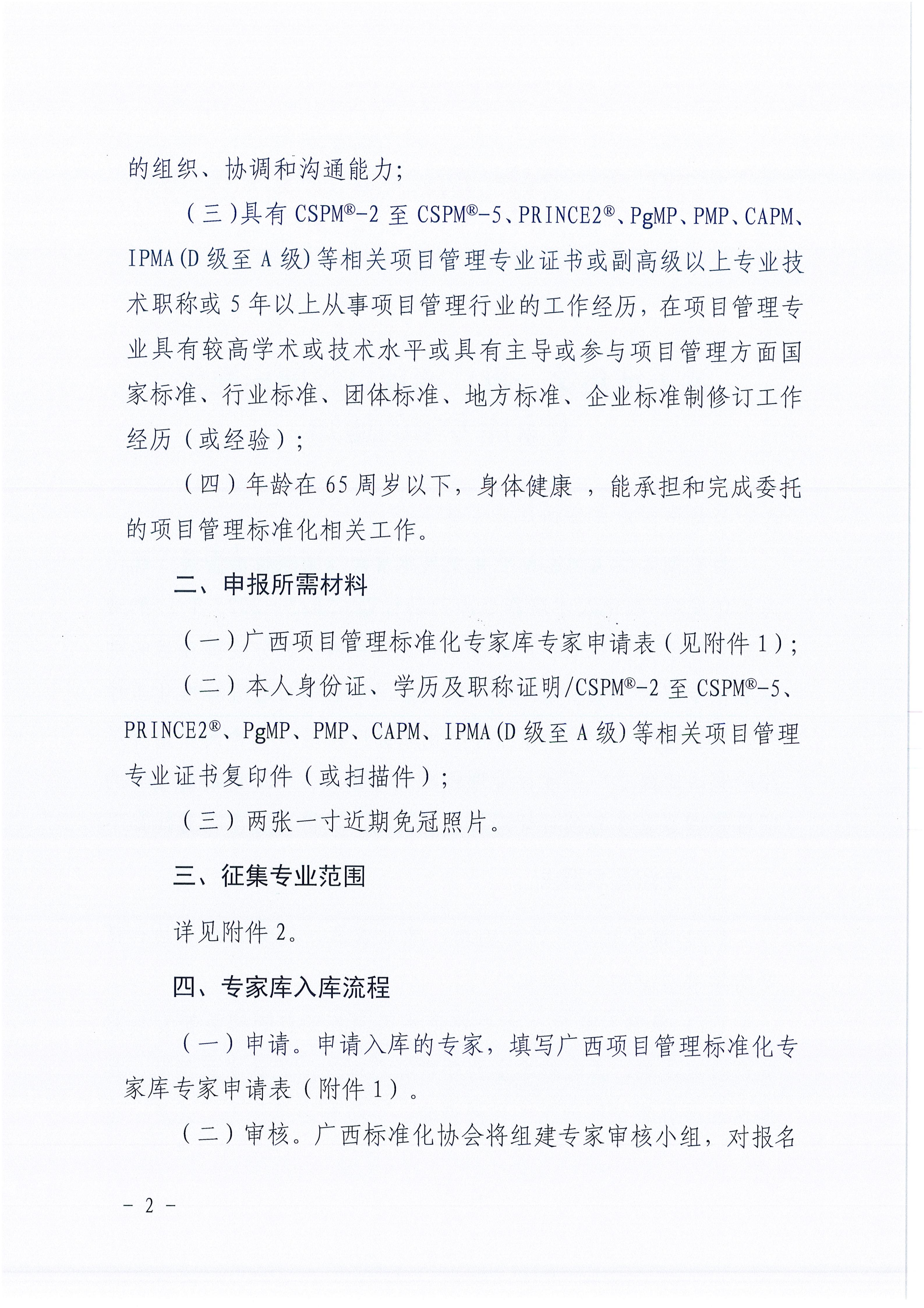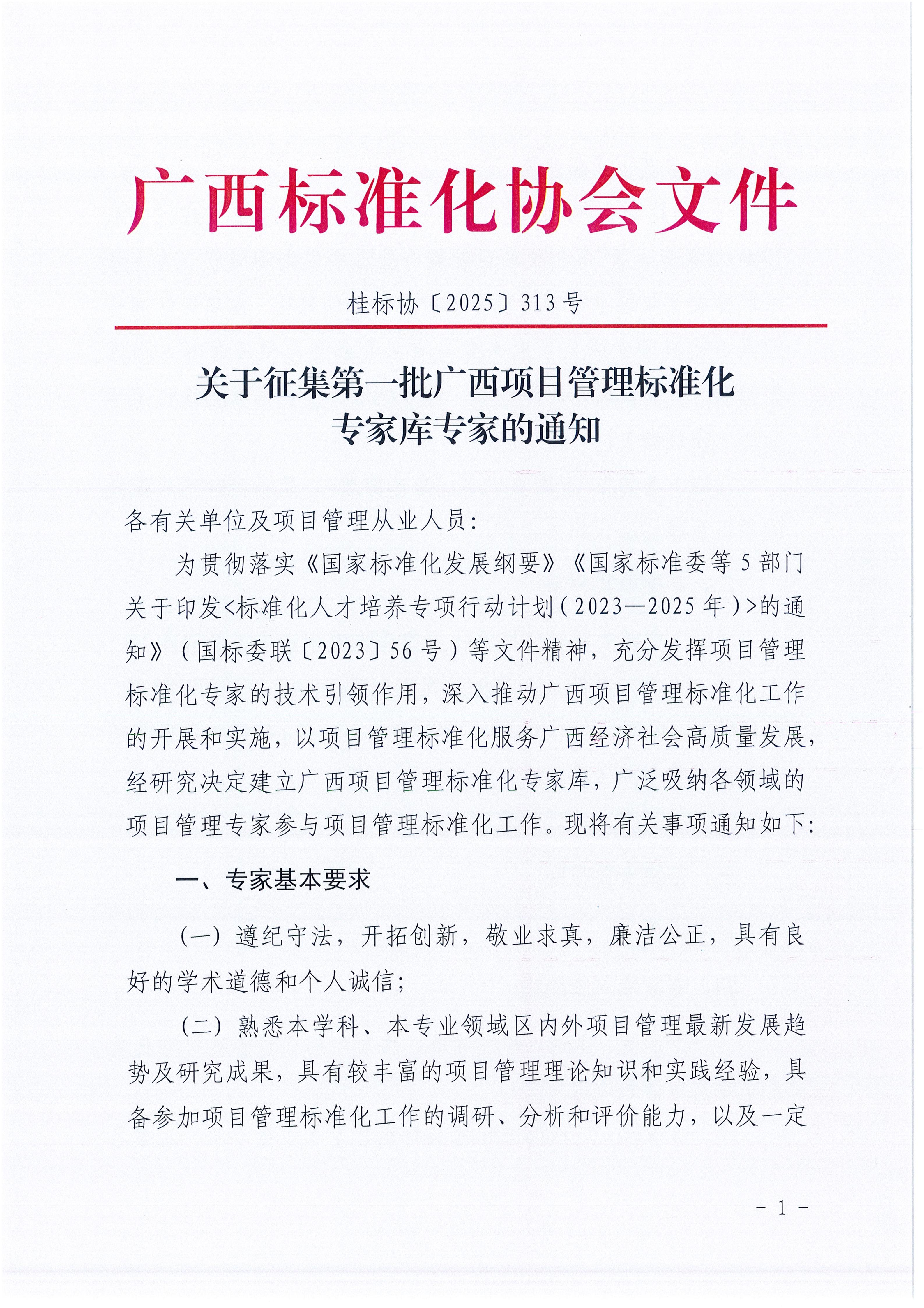 关于征集第一批广西项目管理标准化专家库专家的通知