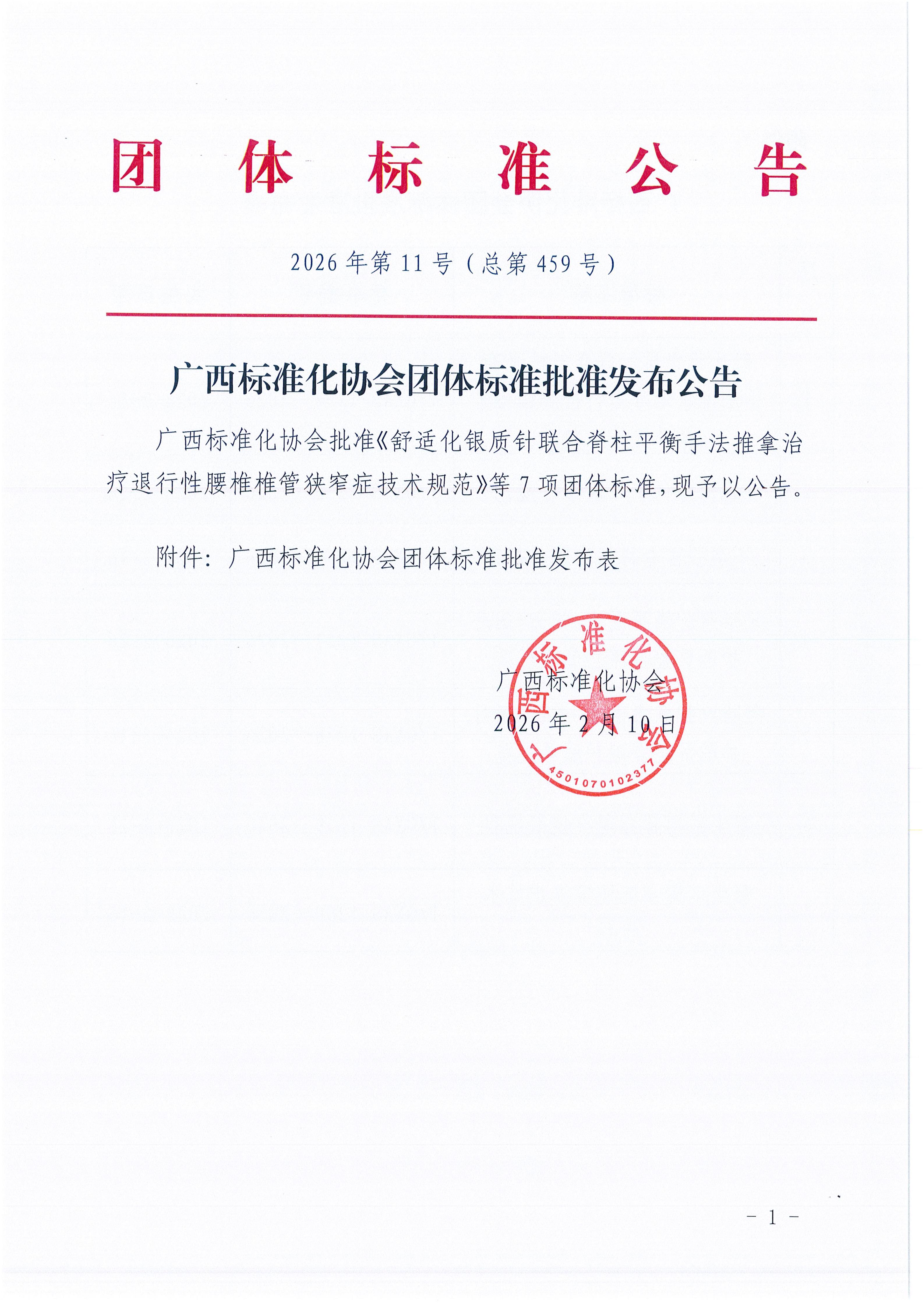 广西标准化协会团体标准批准发布公告《2026年第11号(总第459号)》