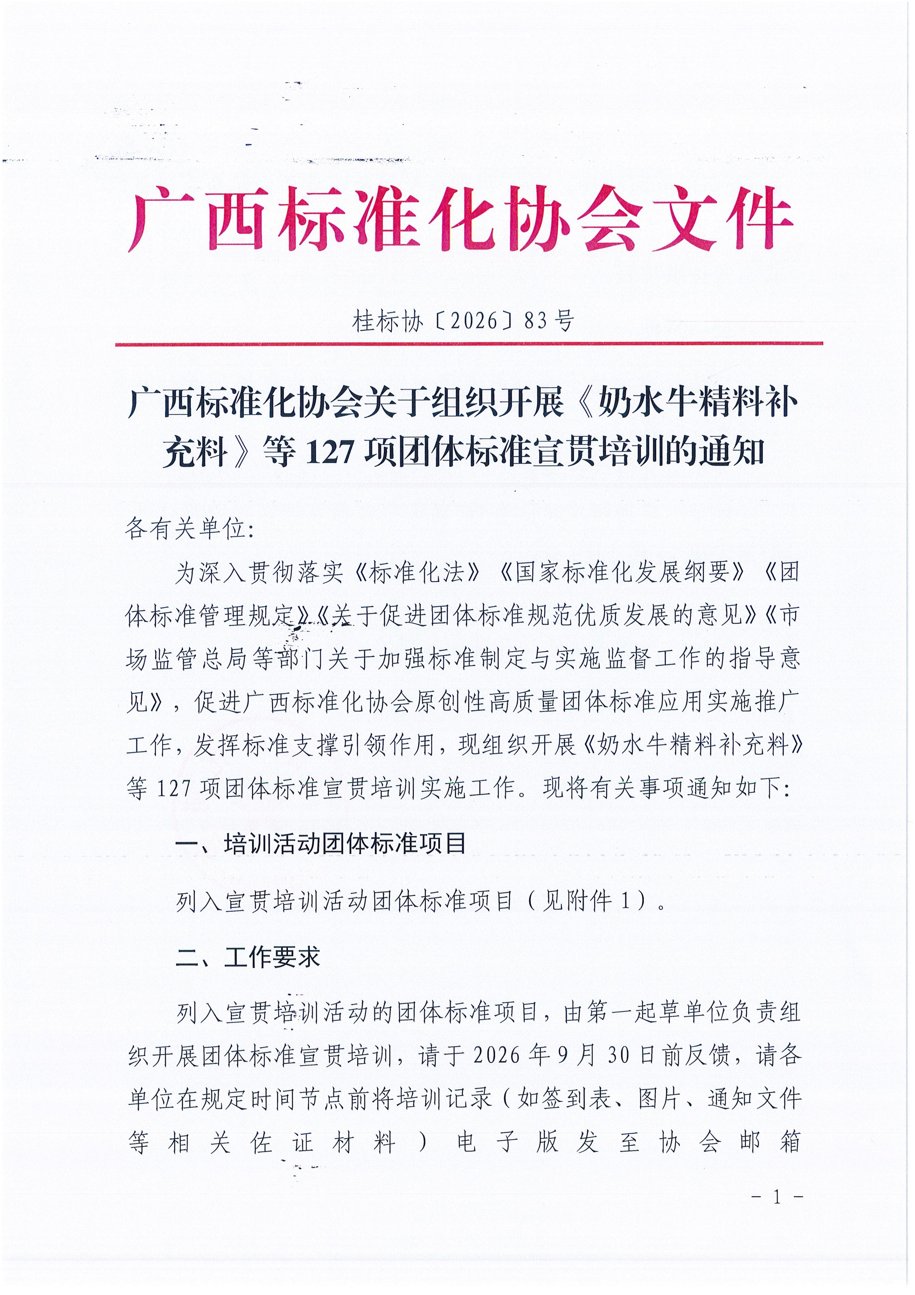 广西标准化协会关于组织开展《奶水牛精料补充料》等127项团体标准宣贯培训的通知