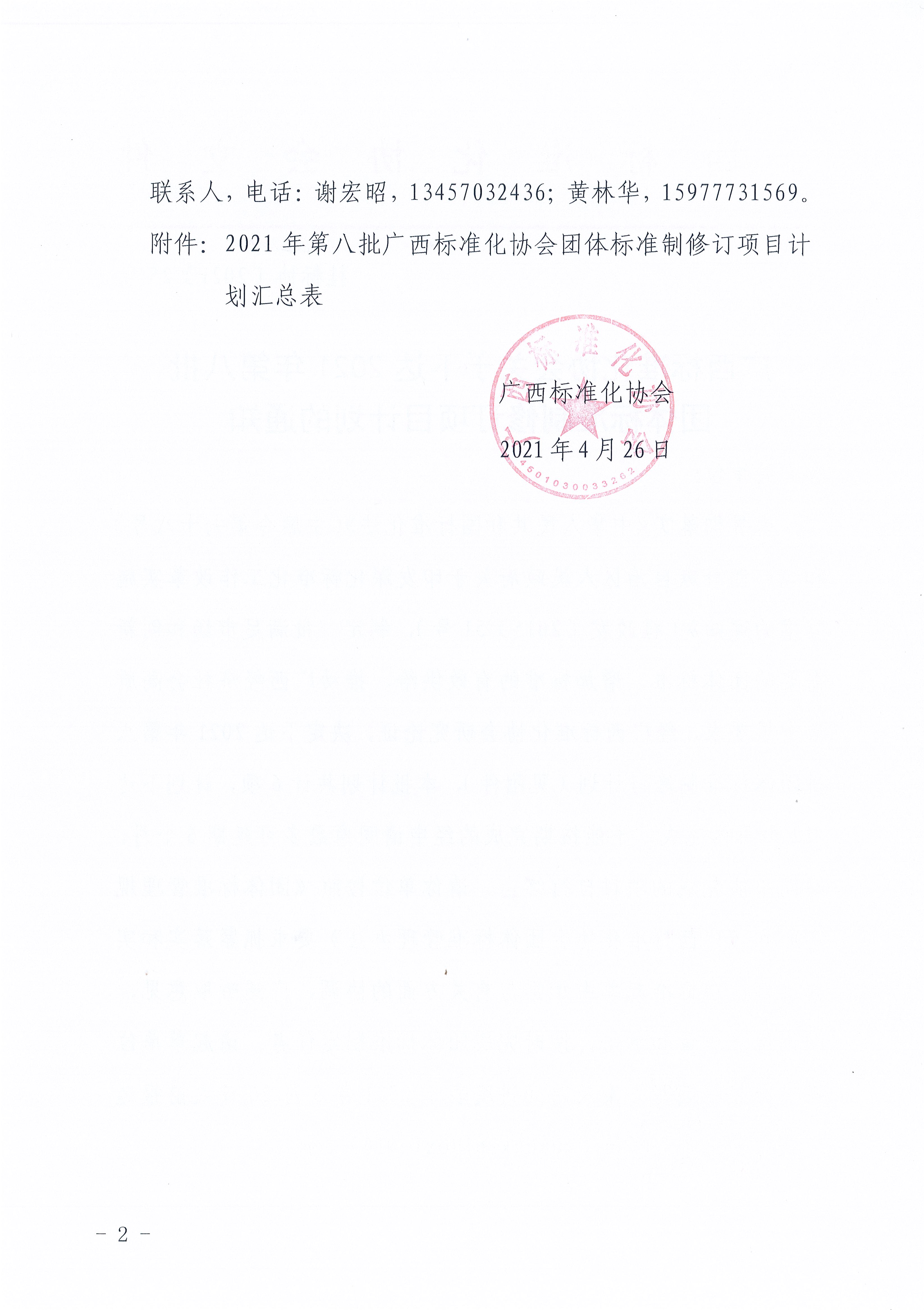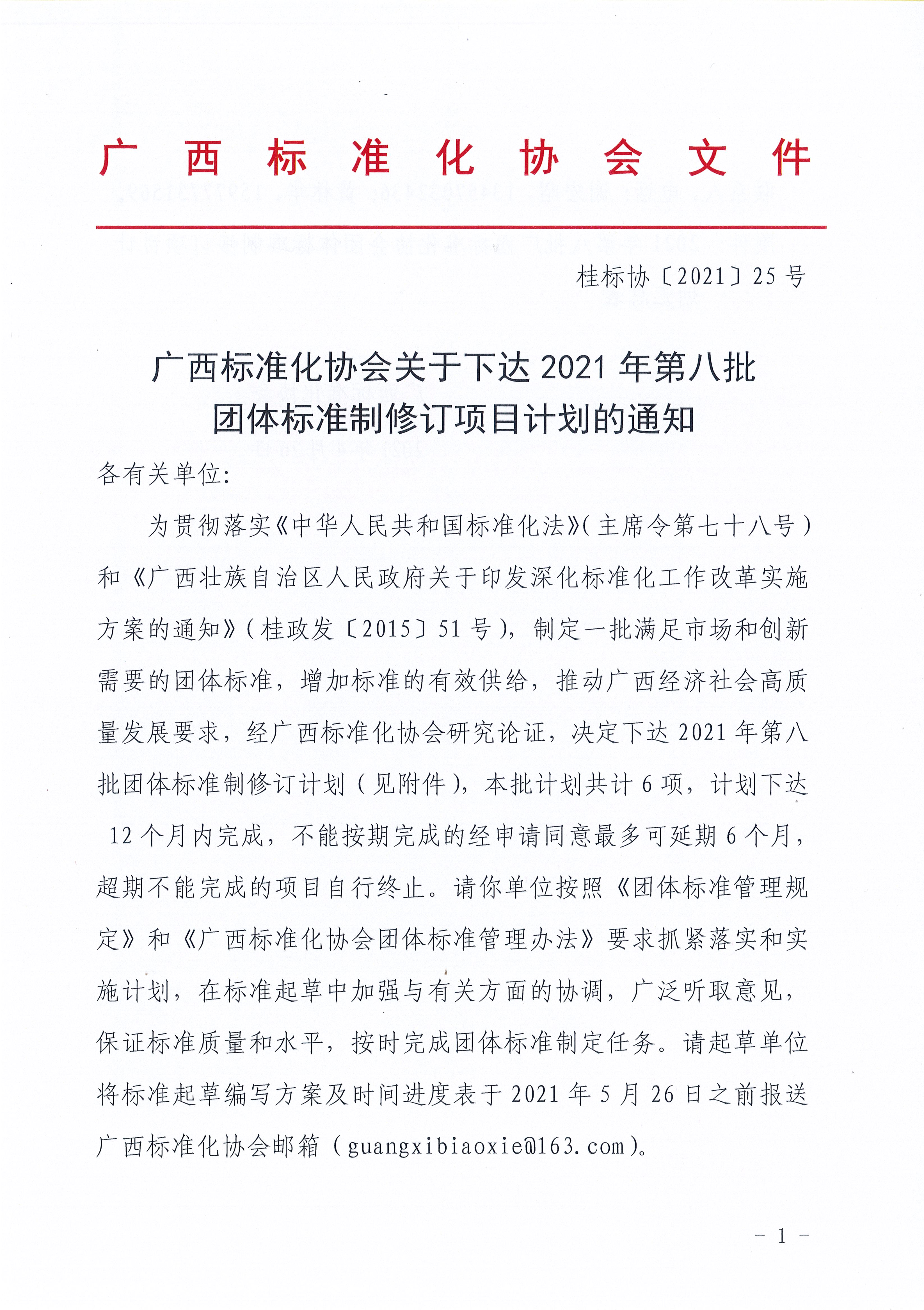 广西标准化协会关于下达2021年第八批团体标准制修订项目计划的通知