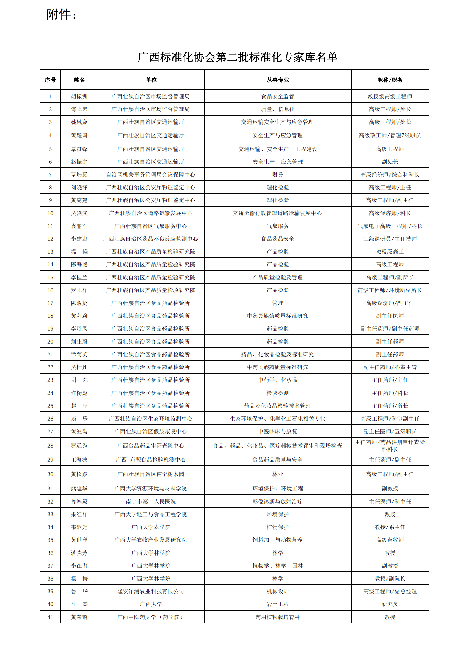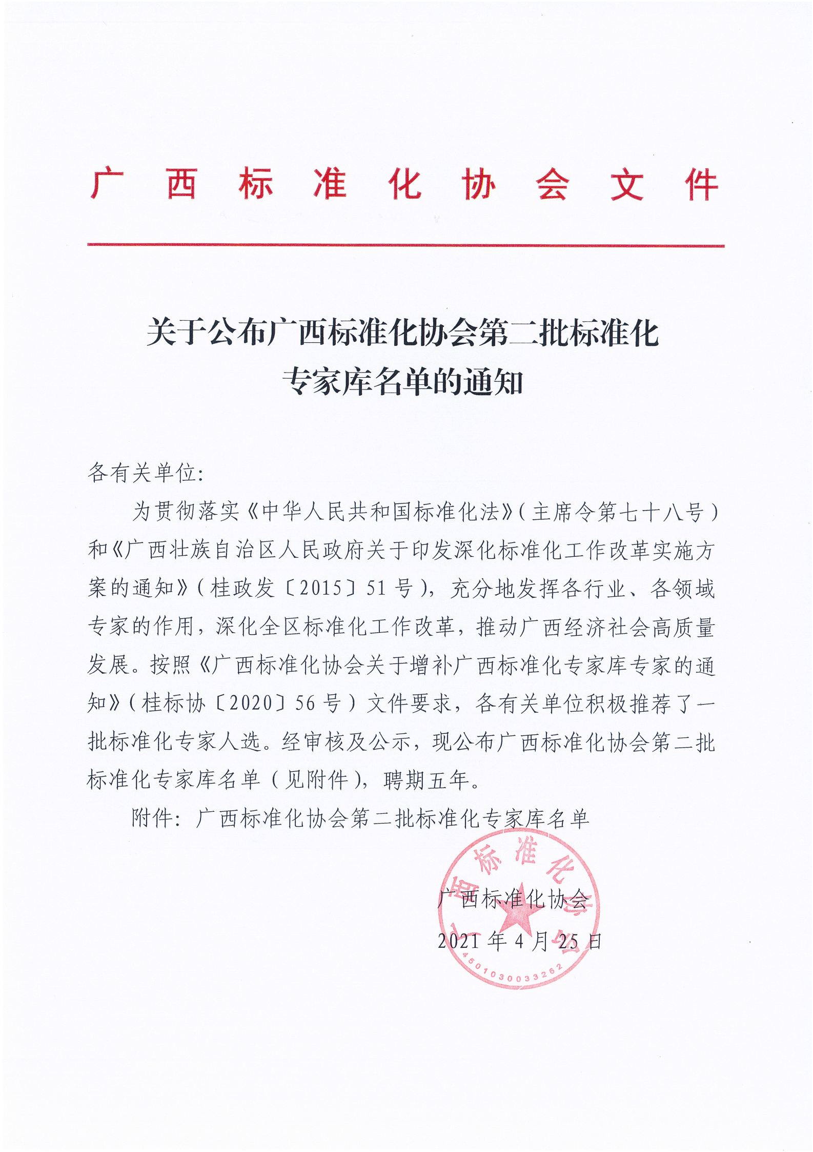 关于公布广西标准化协会第二批标准化专家库名单的通知