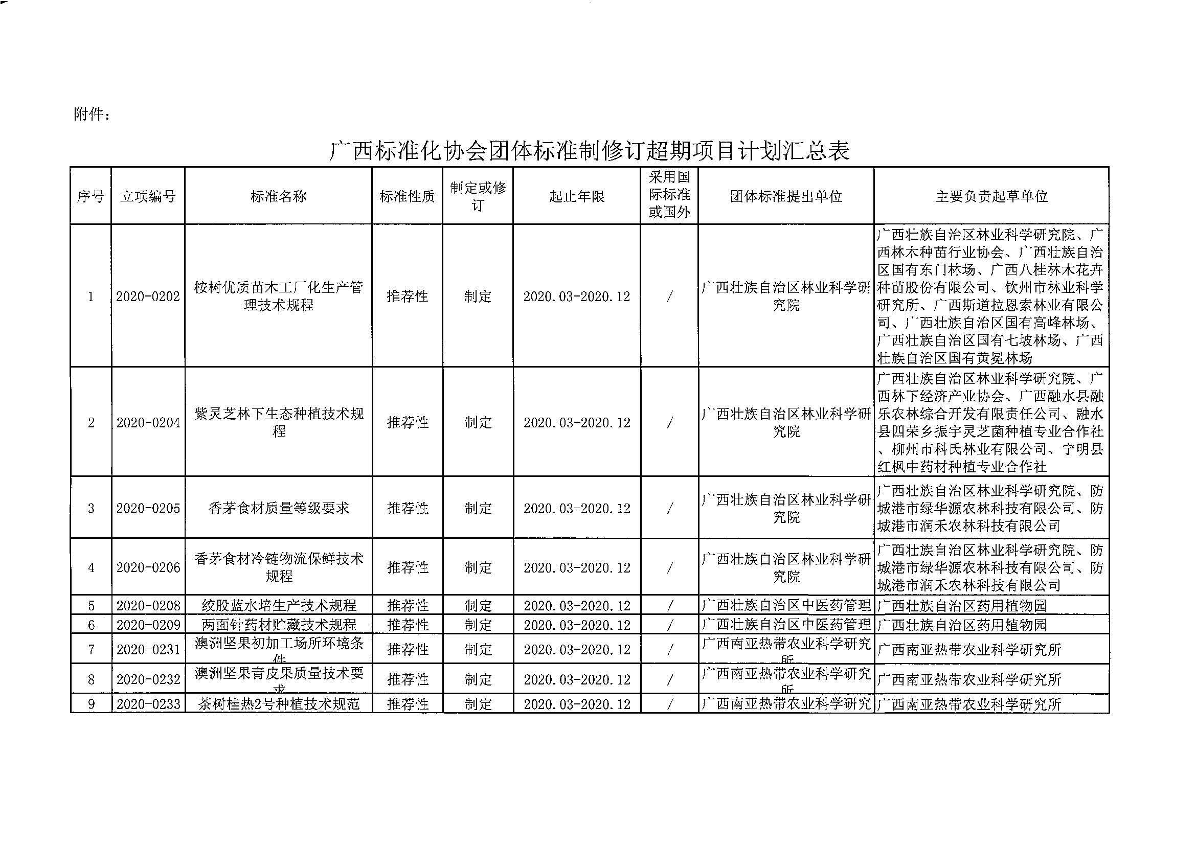 附件:广西标准化协会团体标准制修订超期项目计划汇总表