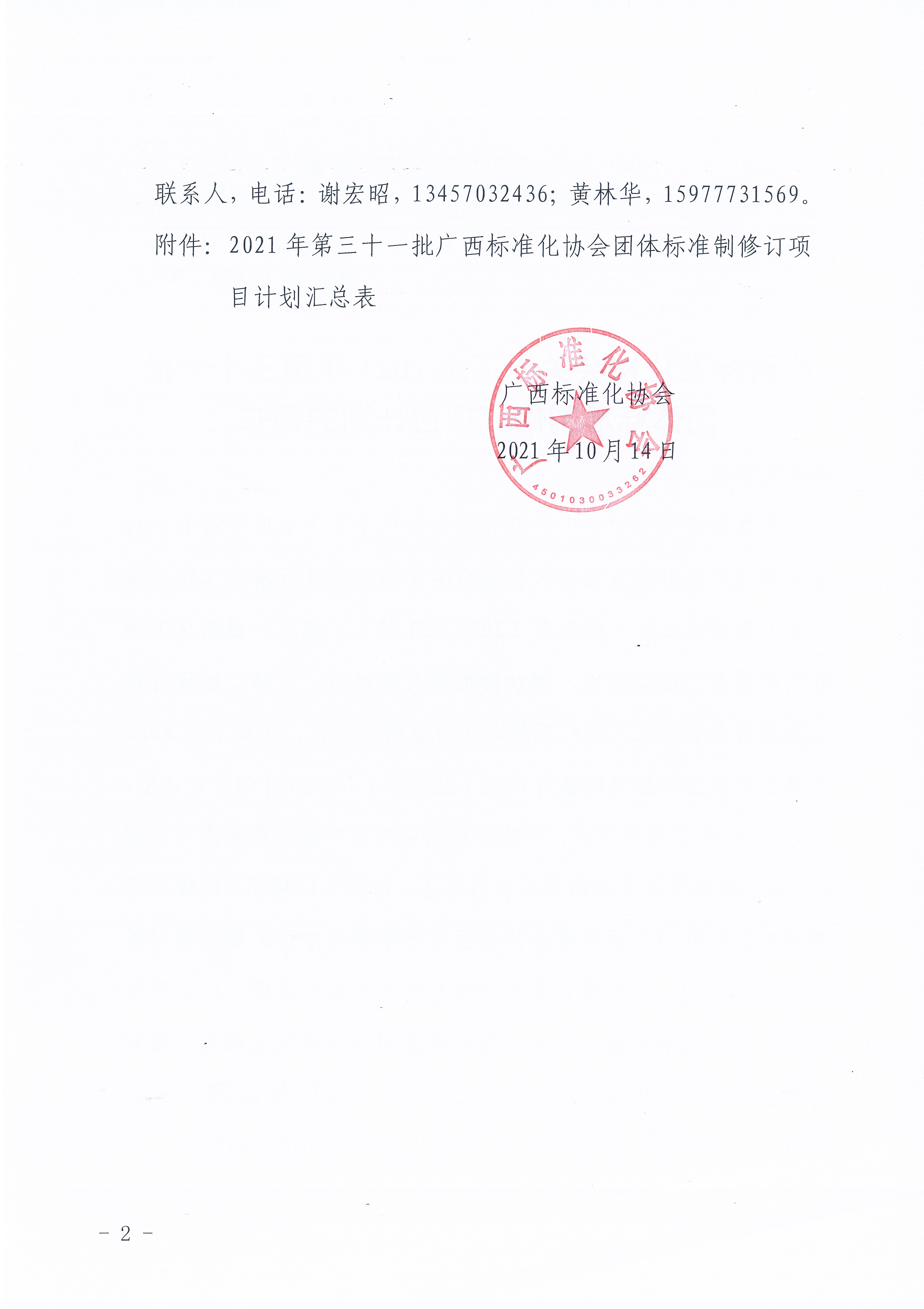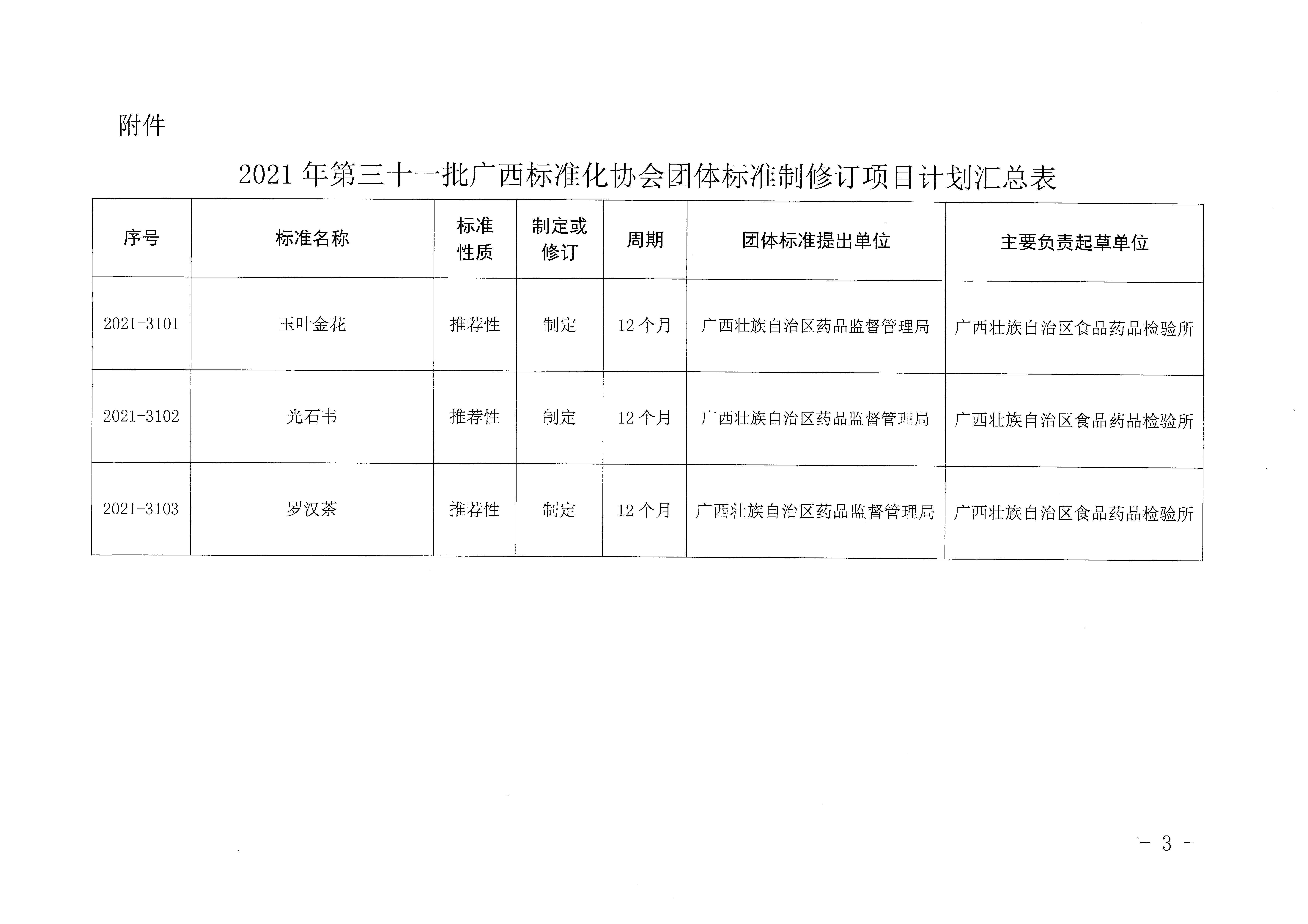 广西标准化协会关于下达2021年第三十一批团体标准制修订项目计划的通知