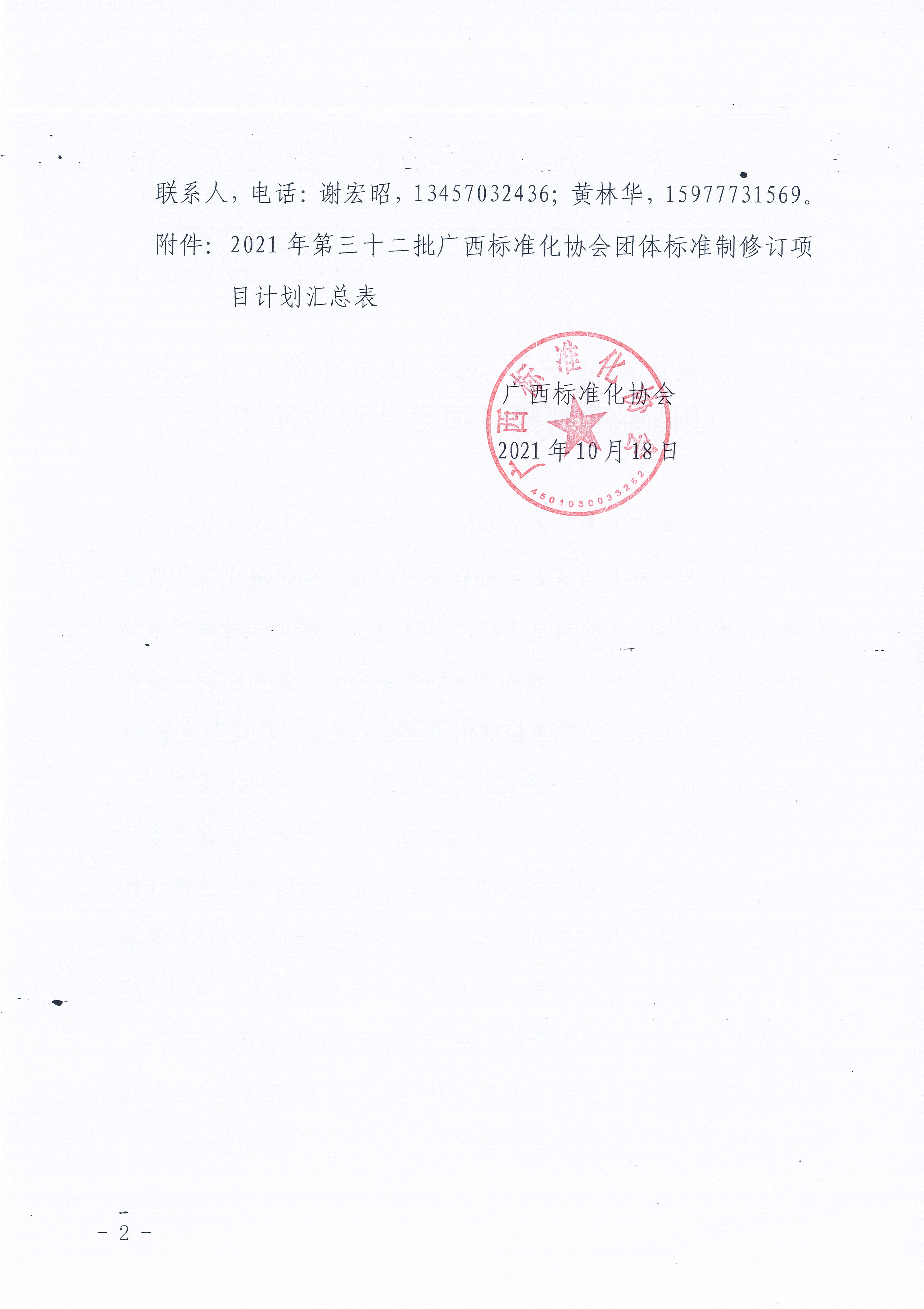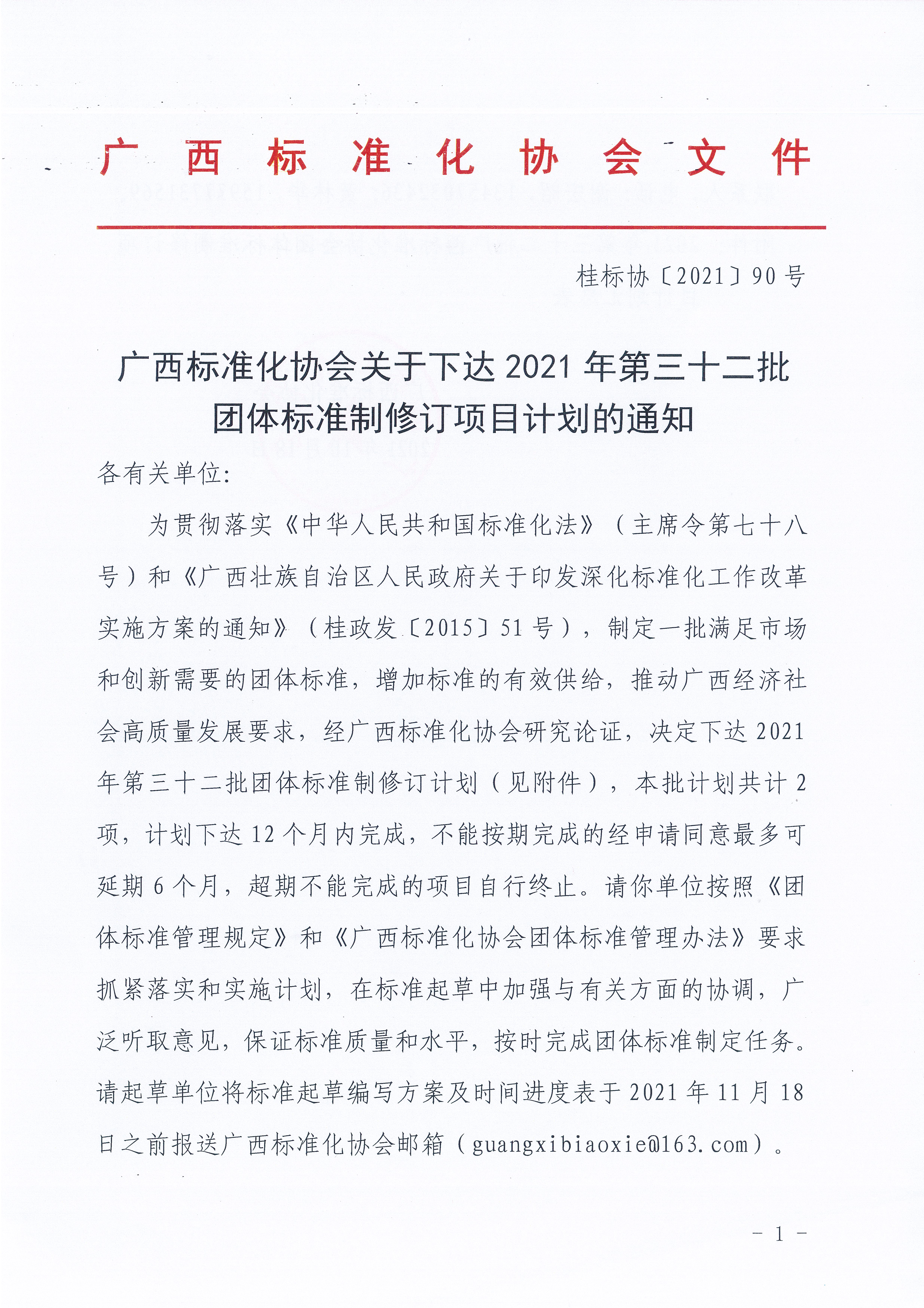 广西标准化协会关于下达2021年第三十二批团体标准制修订项目计划的通知