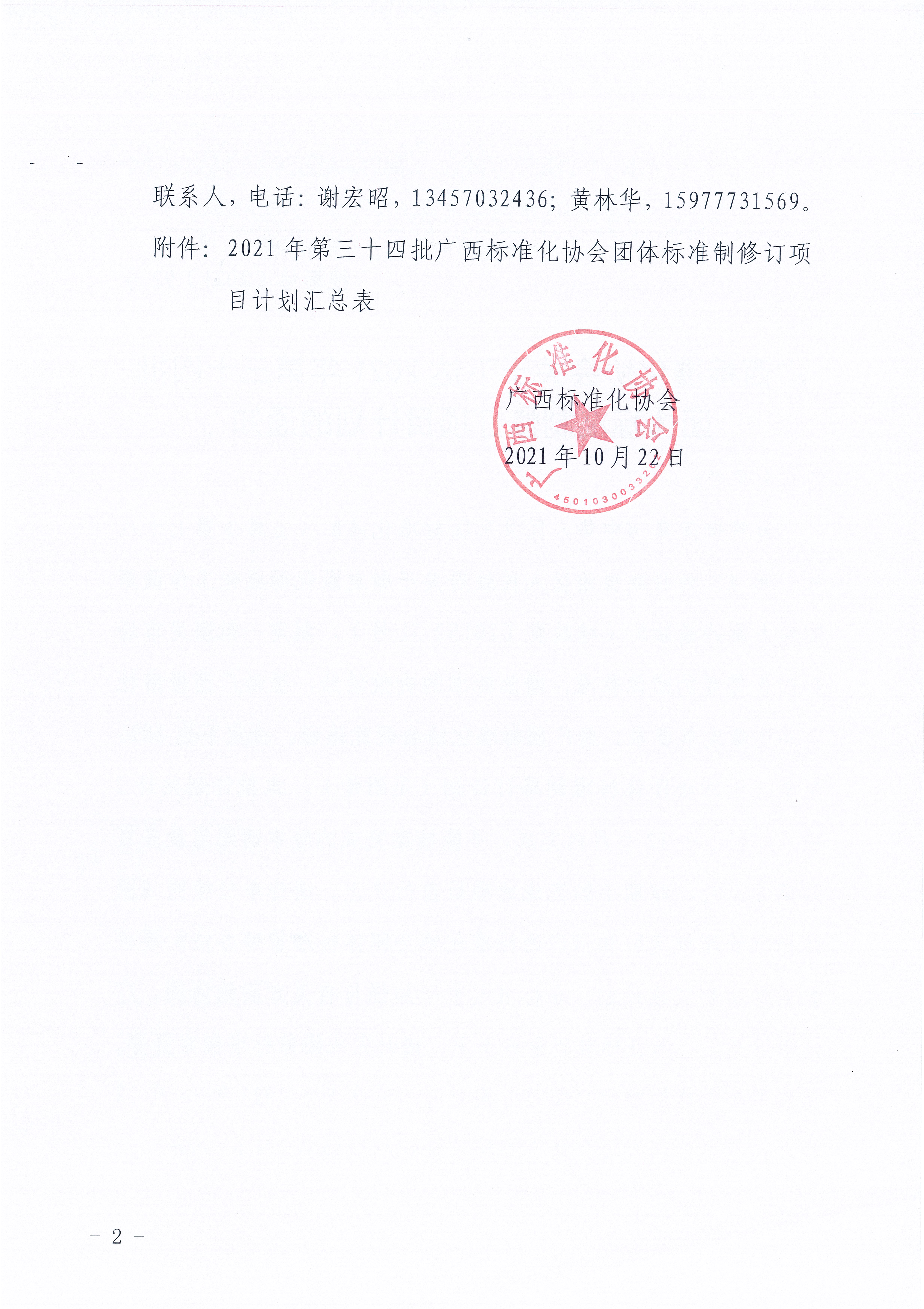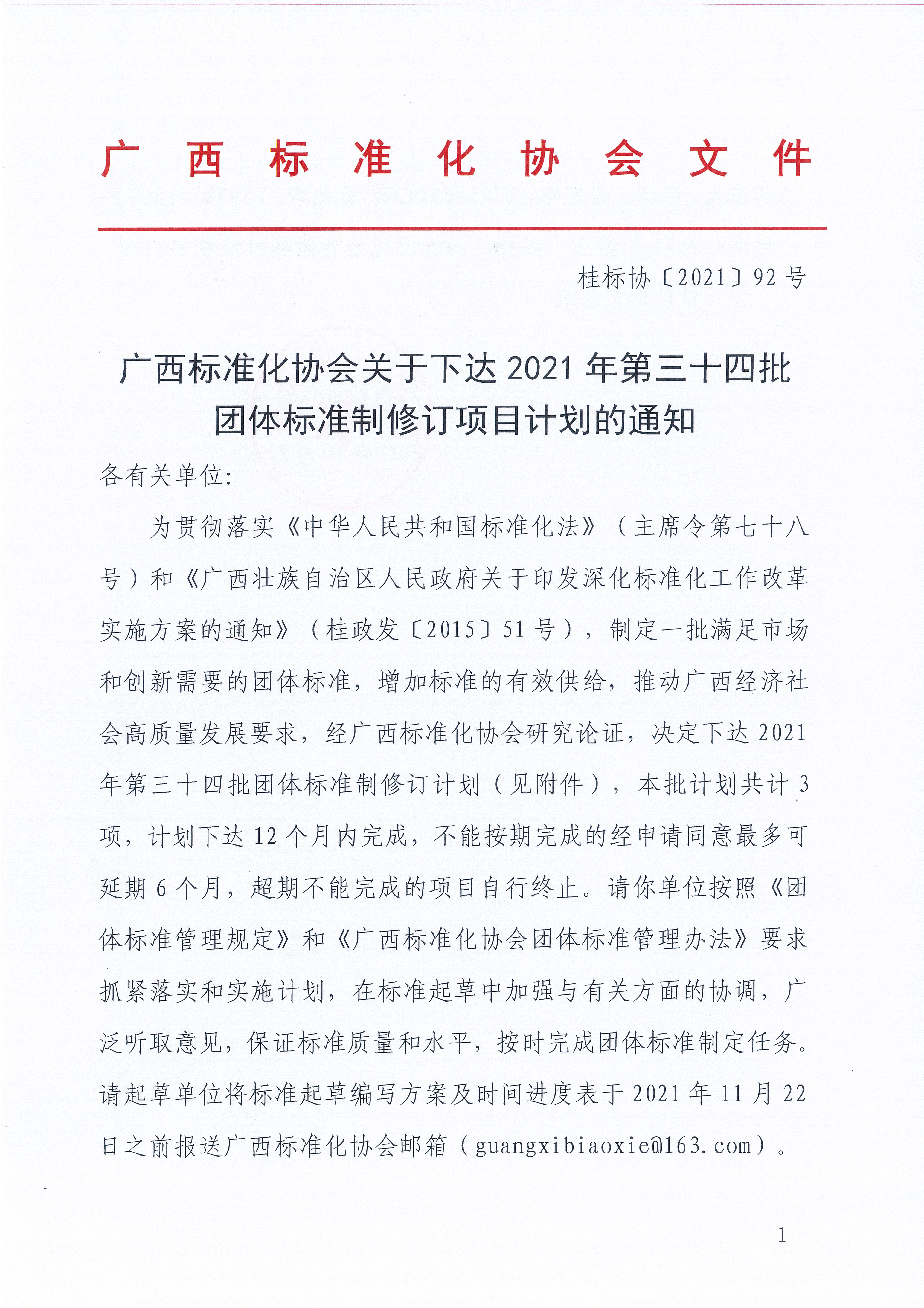 广西标准化协会关于下达2021年第三十四批团体标准制修订项目计划的通知