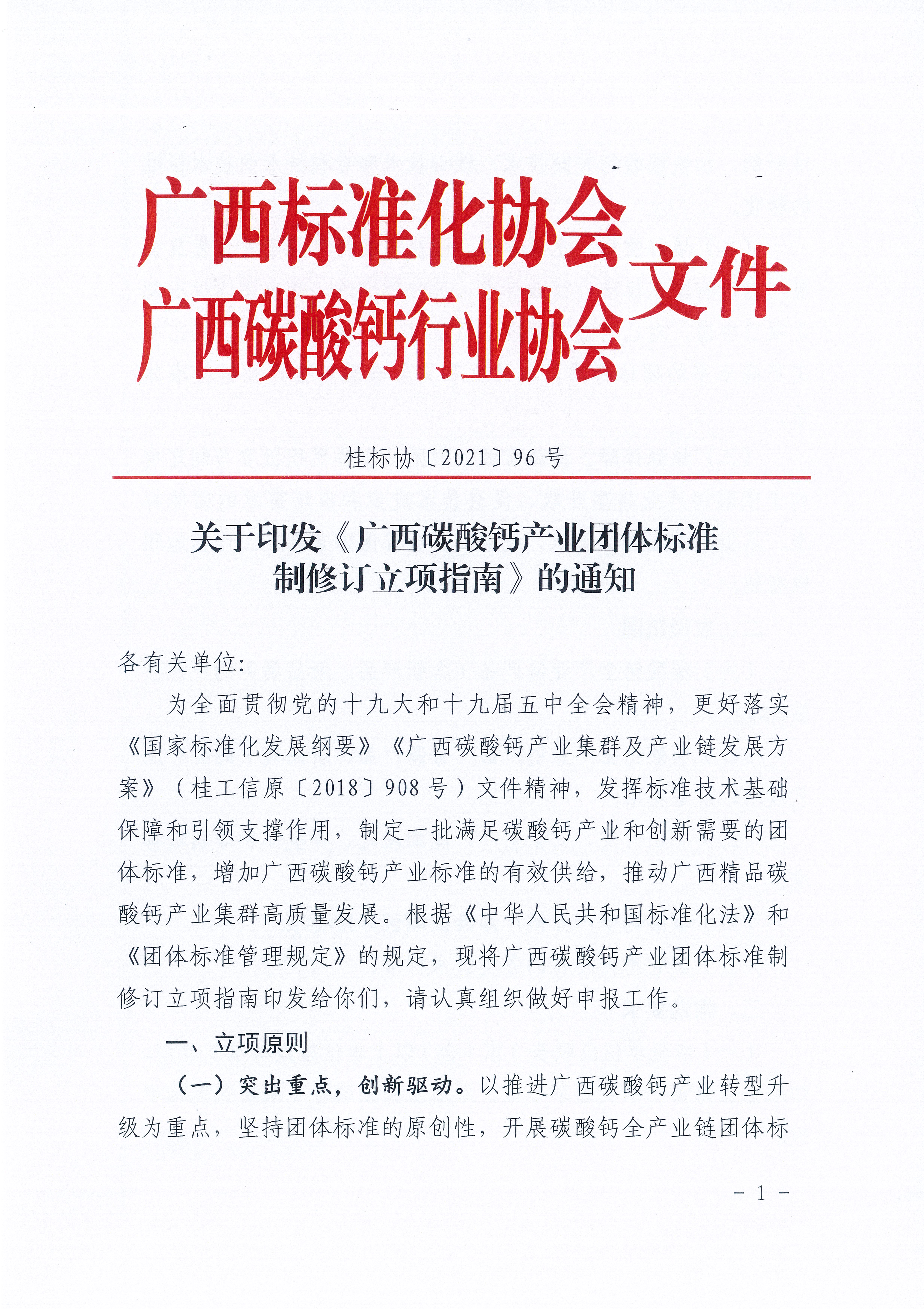 关于印发《广西碳酸钙产业团体标准制修订立项指南》的通知
