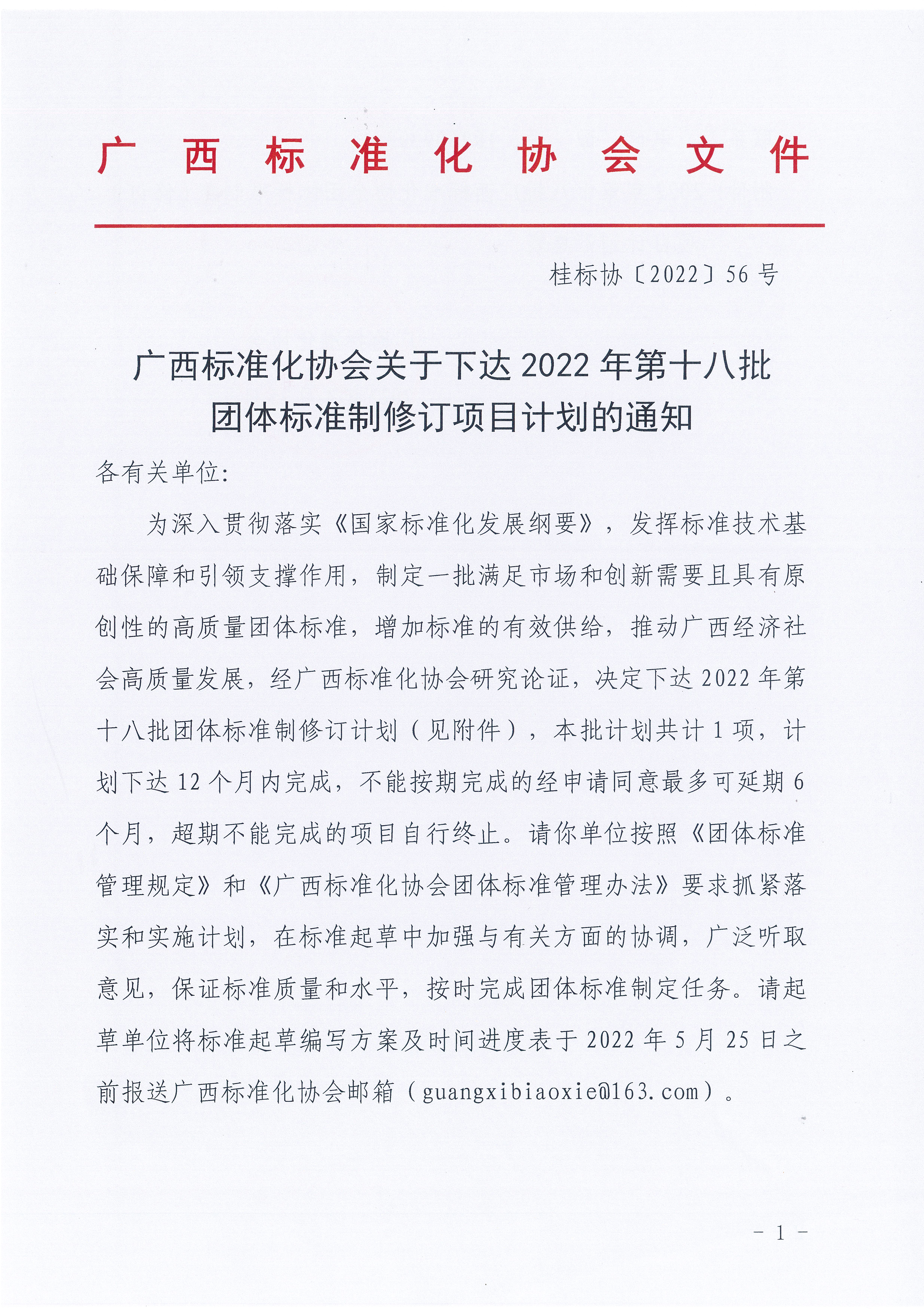 广西标准化协会关于下达2022年第十八批团体标准制修订项目计划的通知