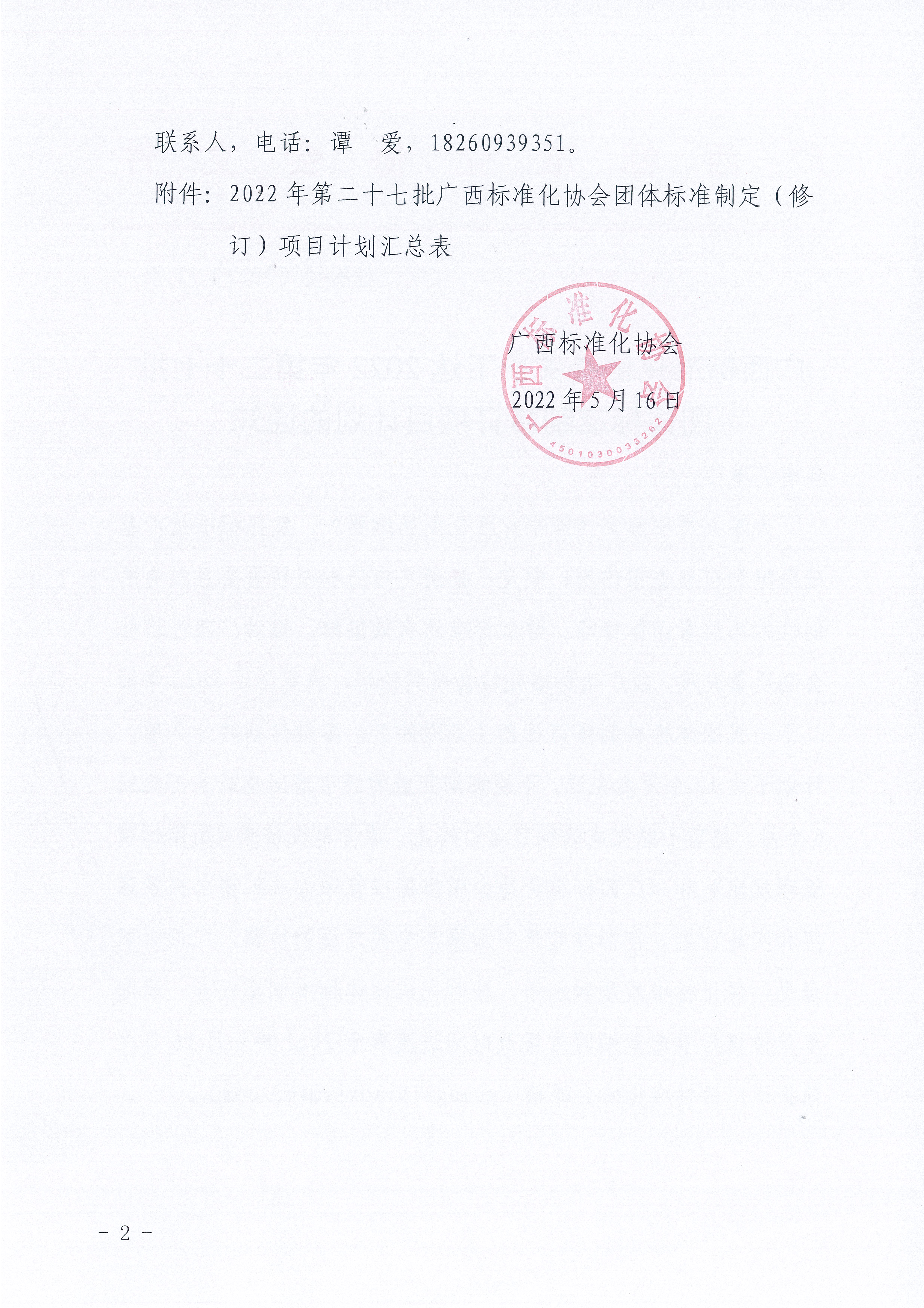 广西标准化协会关于下达2022年第二十七批团体标准制修订项目计划的通知