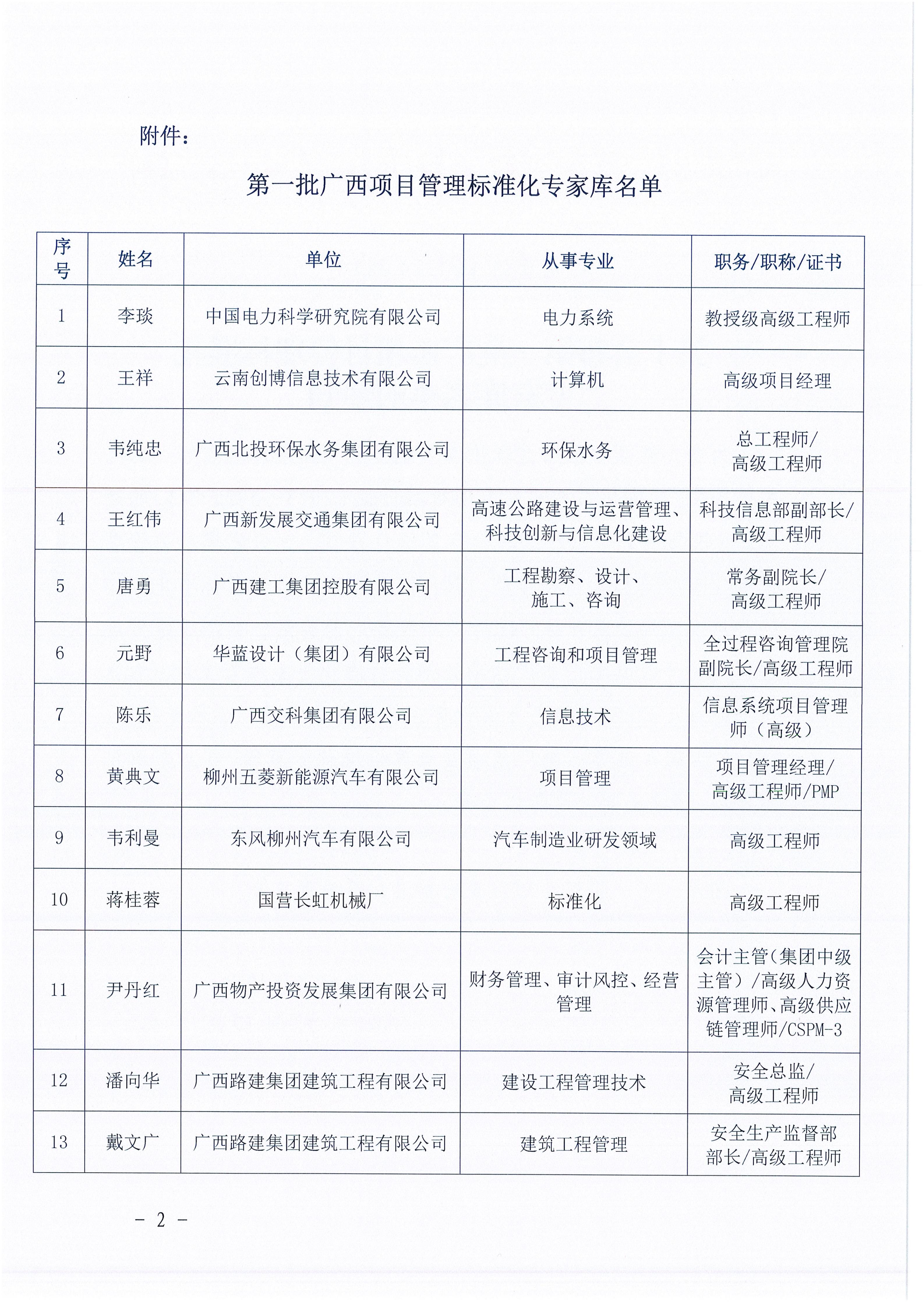 关于公布第一批广西项目管理标准化专家库名单的通知.pdf