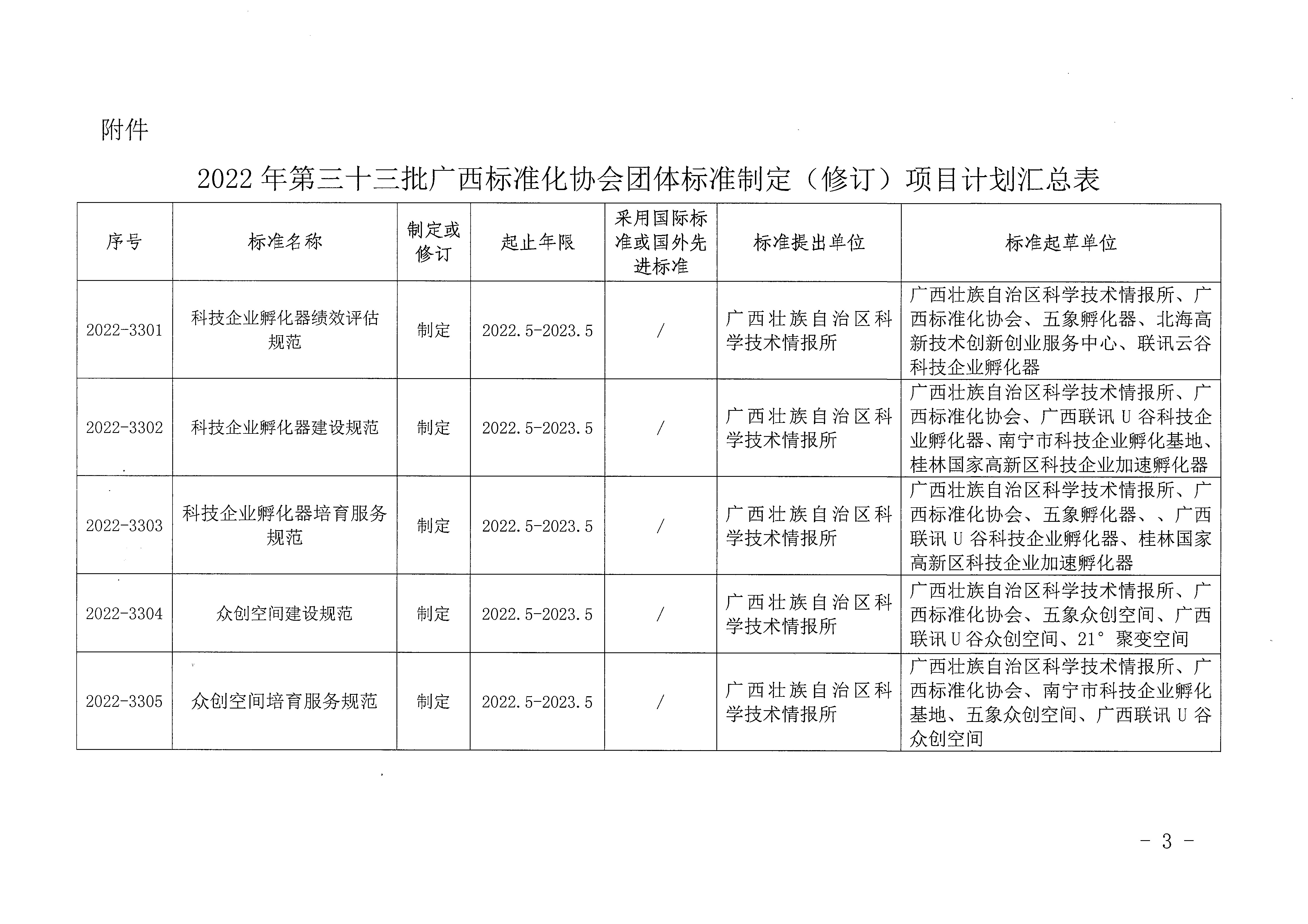 广西标准化协会关于下达2022年第三十三批团体标准制修订项目计划的通知