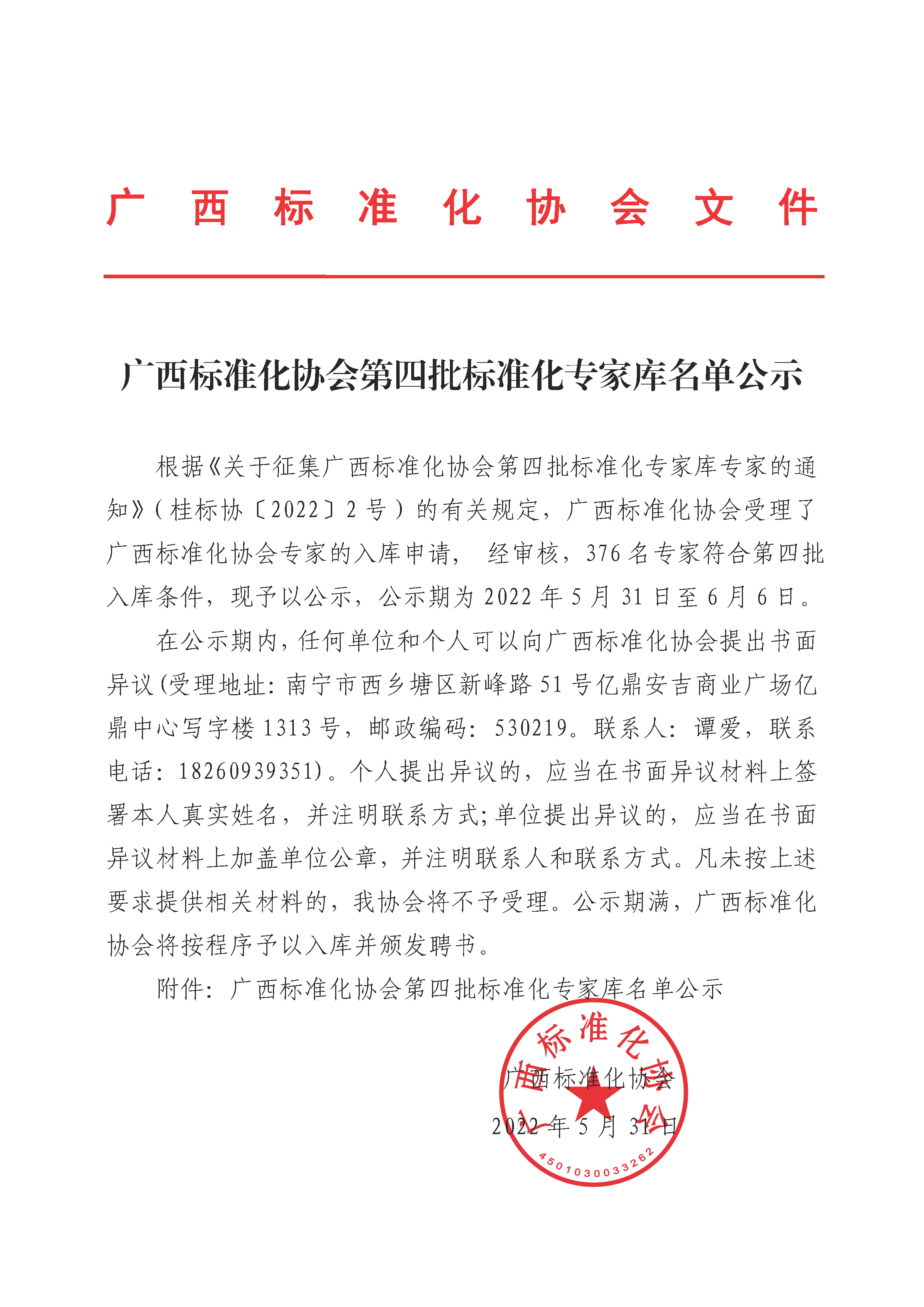 广西标准化协会第四批标准化专家库名单公示