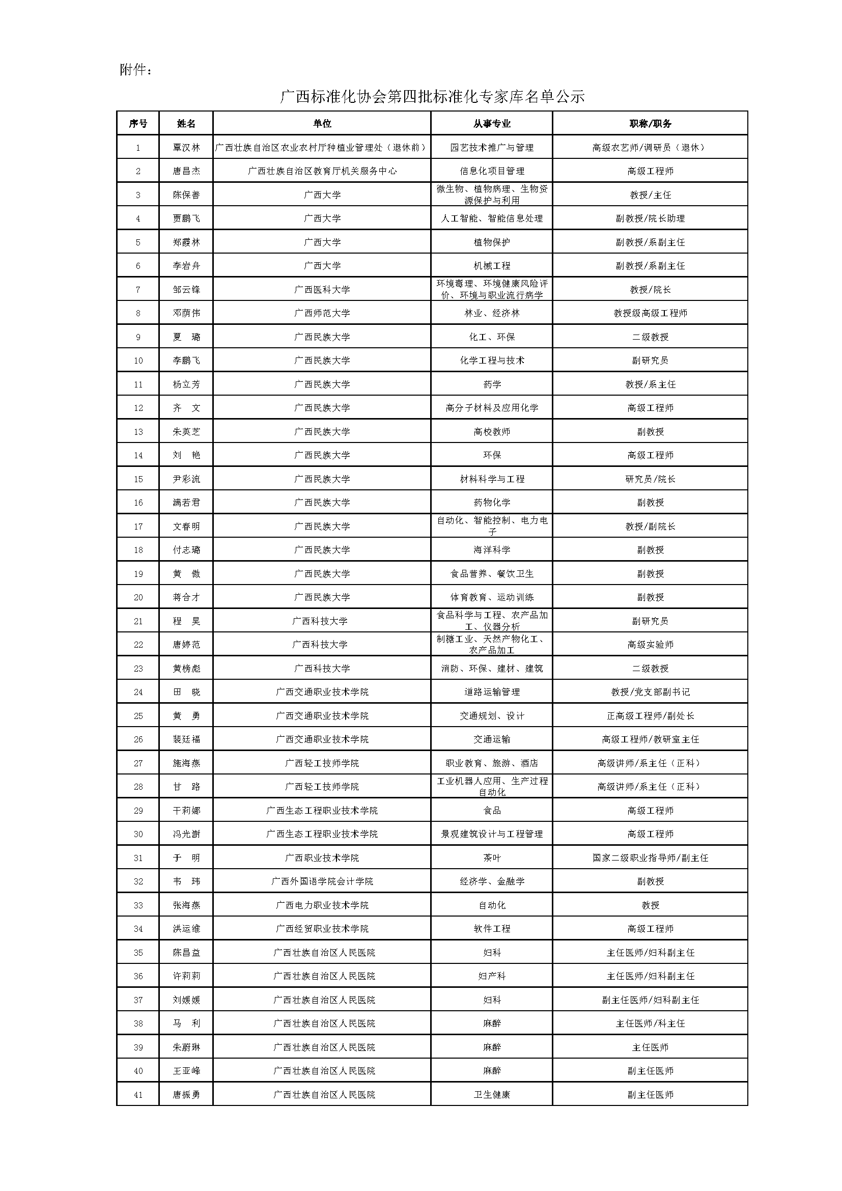 附件:广西标准化协会第四批标准化专家库名单公示