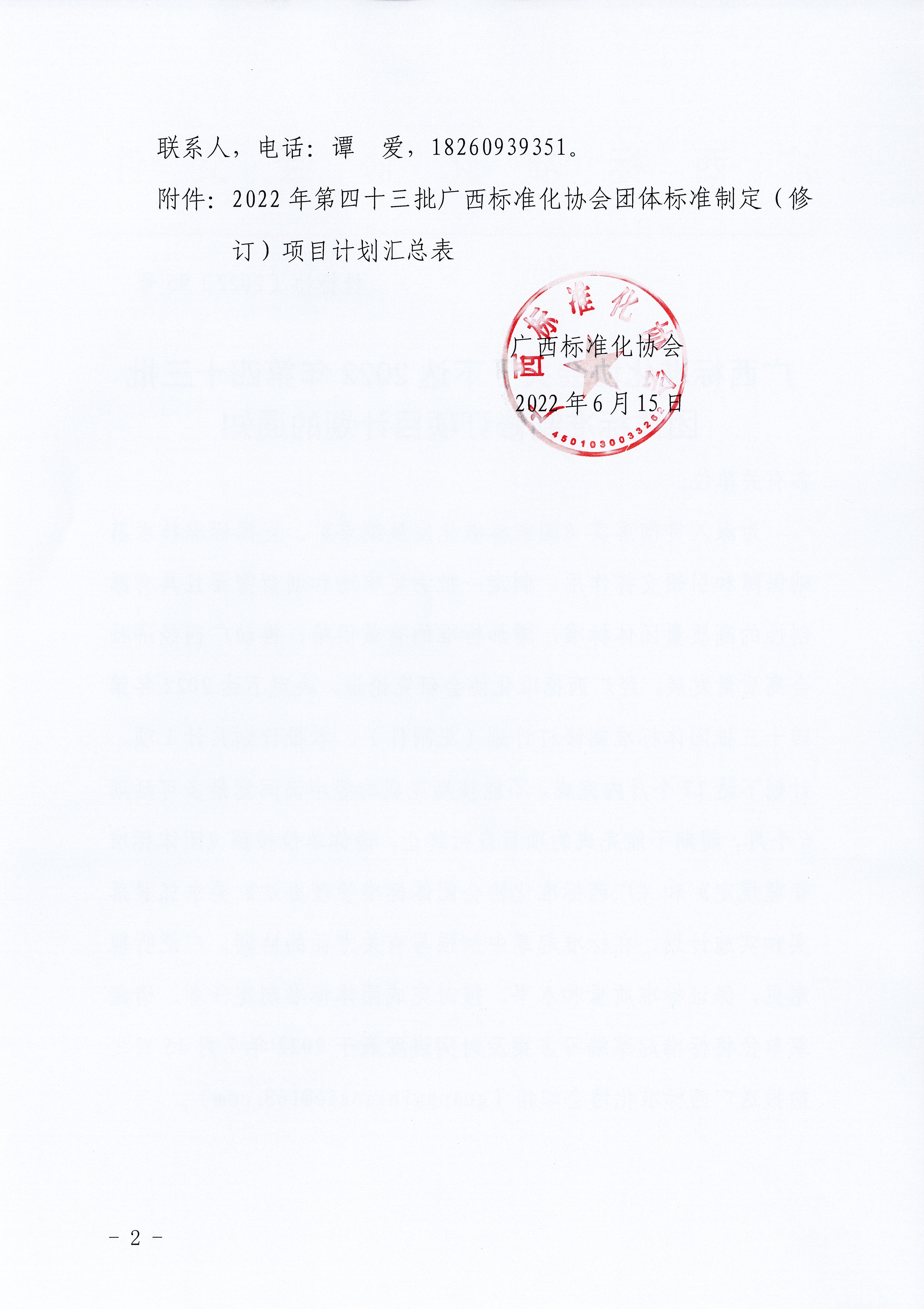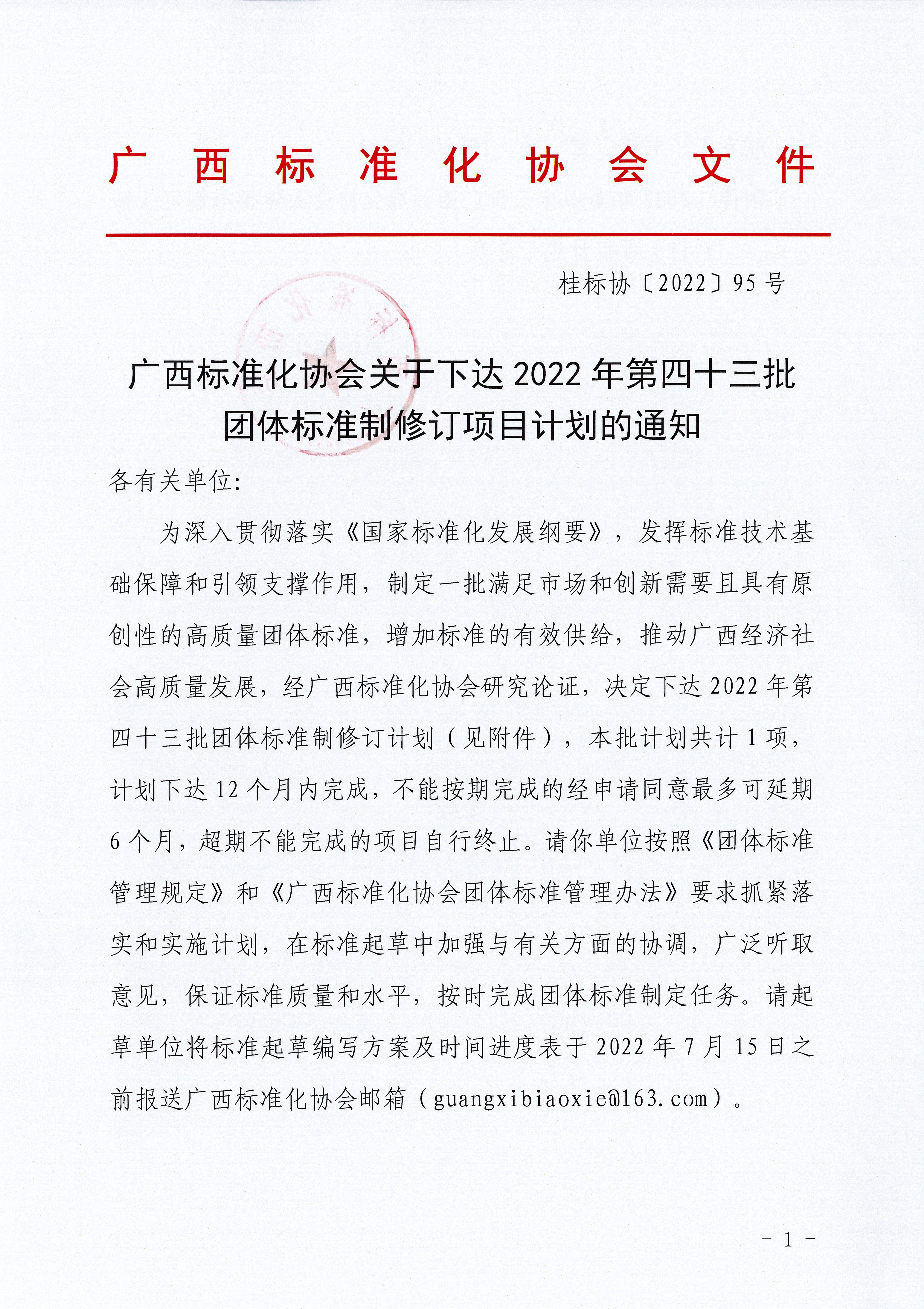 广西标准化协会关于下达2022年第四十三批团体标准制修订项目计划的通知