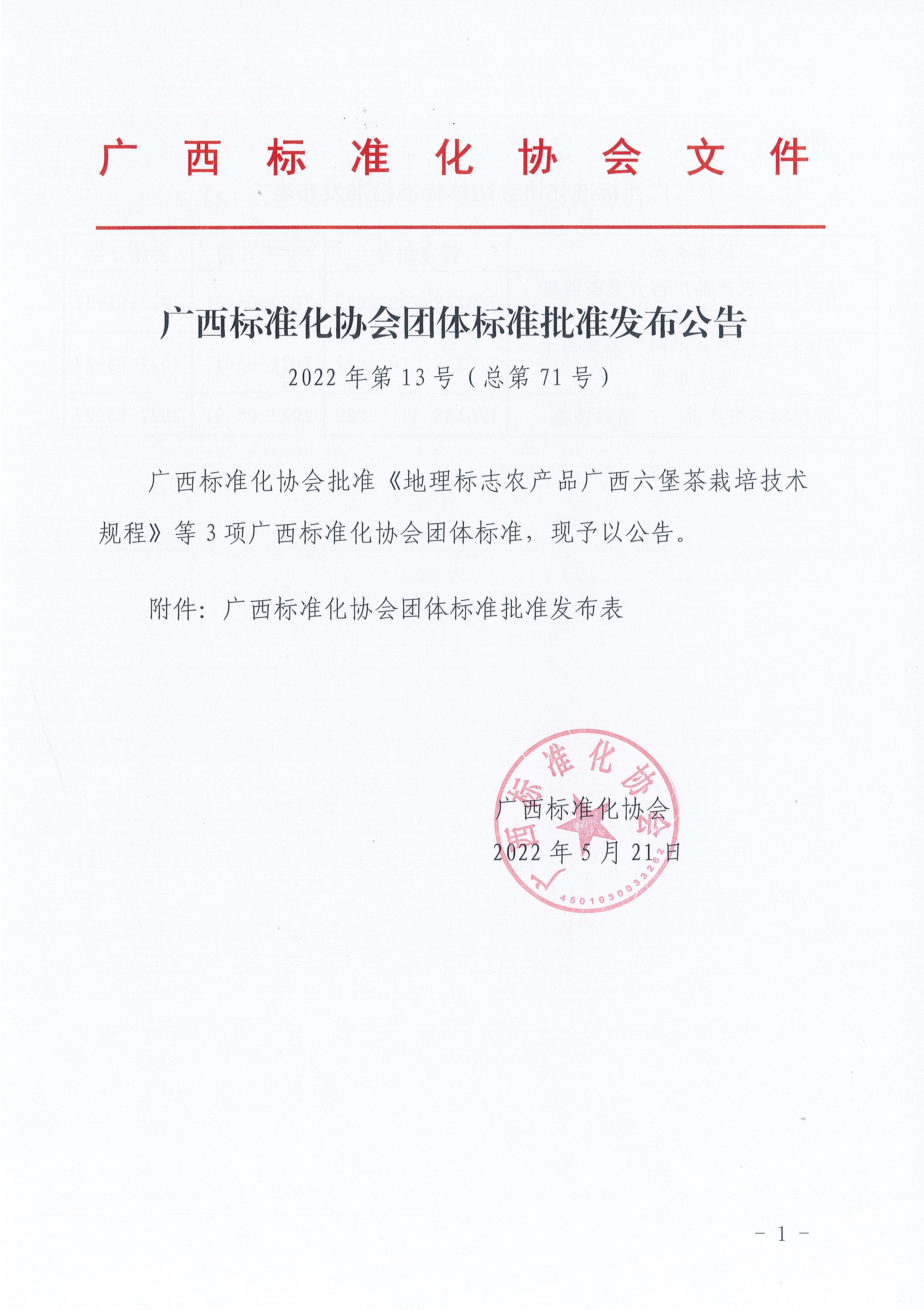 广西标准化协会团体标准批准发布公告《2022年第13号(总第71号)》