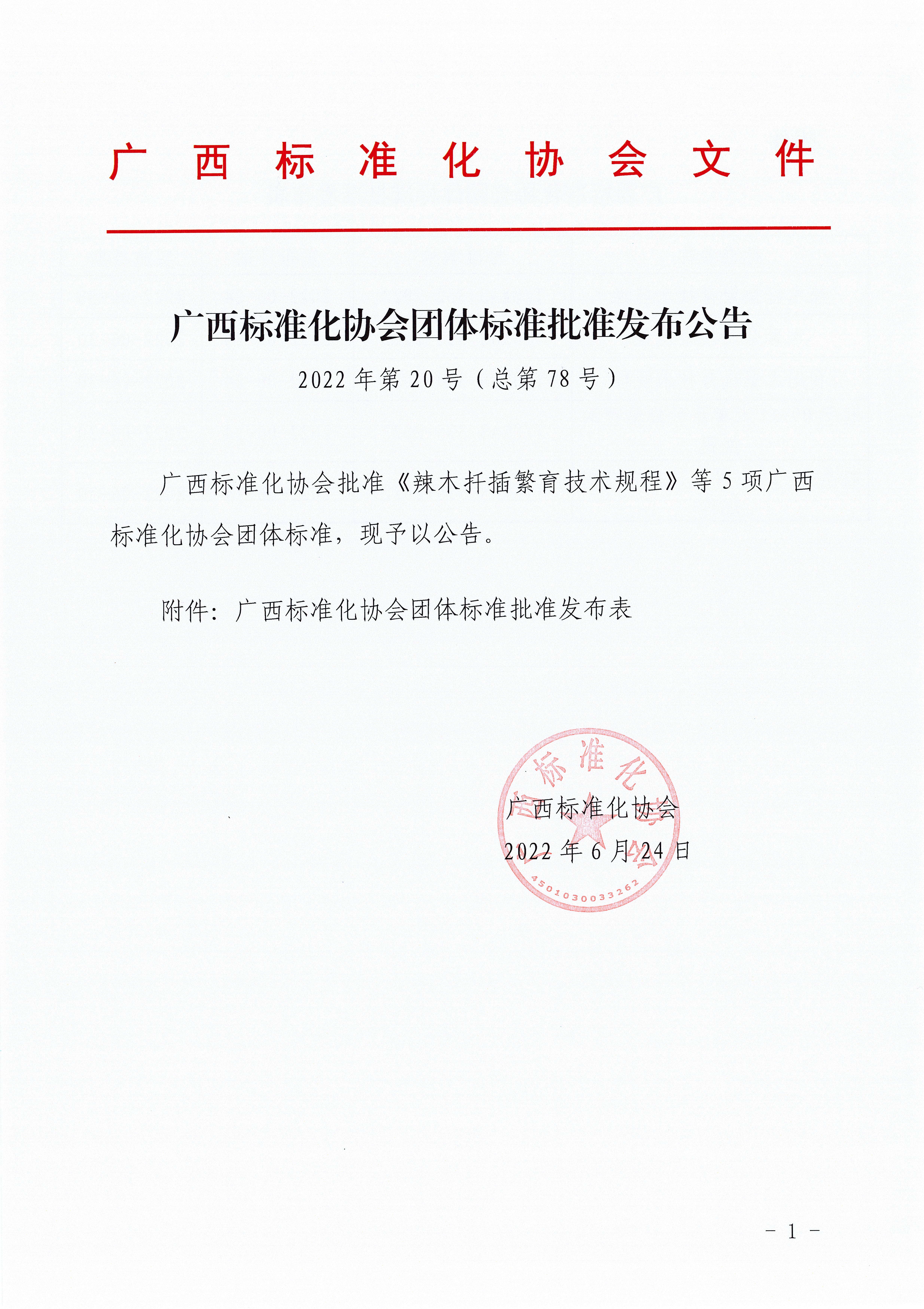 广西标准化协会团体标准批准发布公告《2022年第20号(总第78号)》