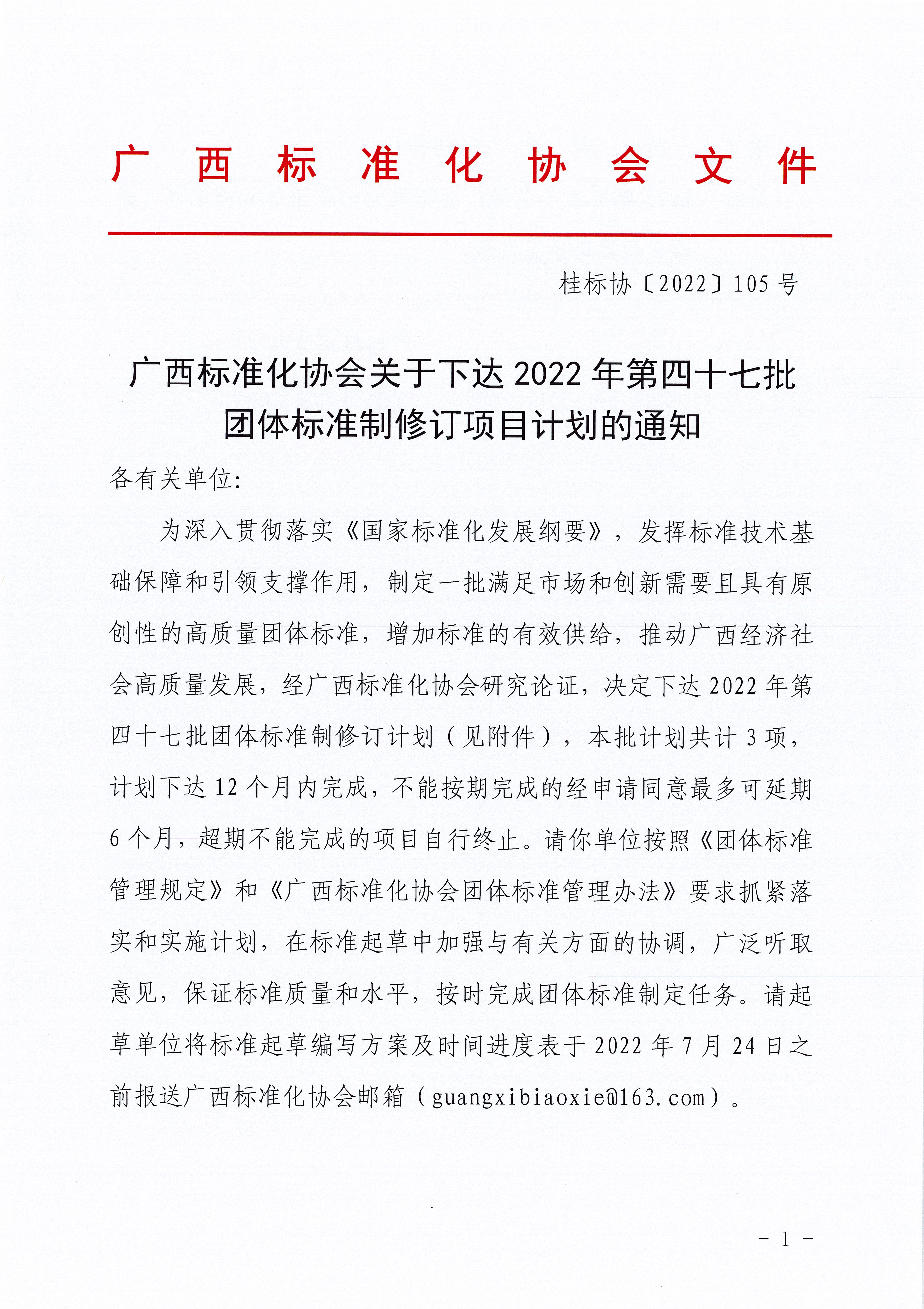 广西标准化协会关于下达2022年第四十七批团体标准制修订项目计划的通知