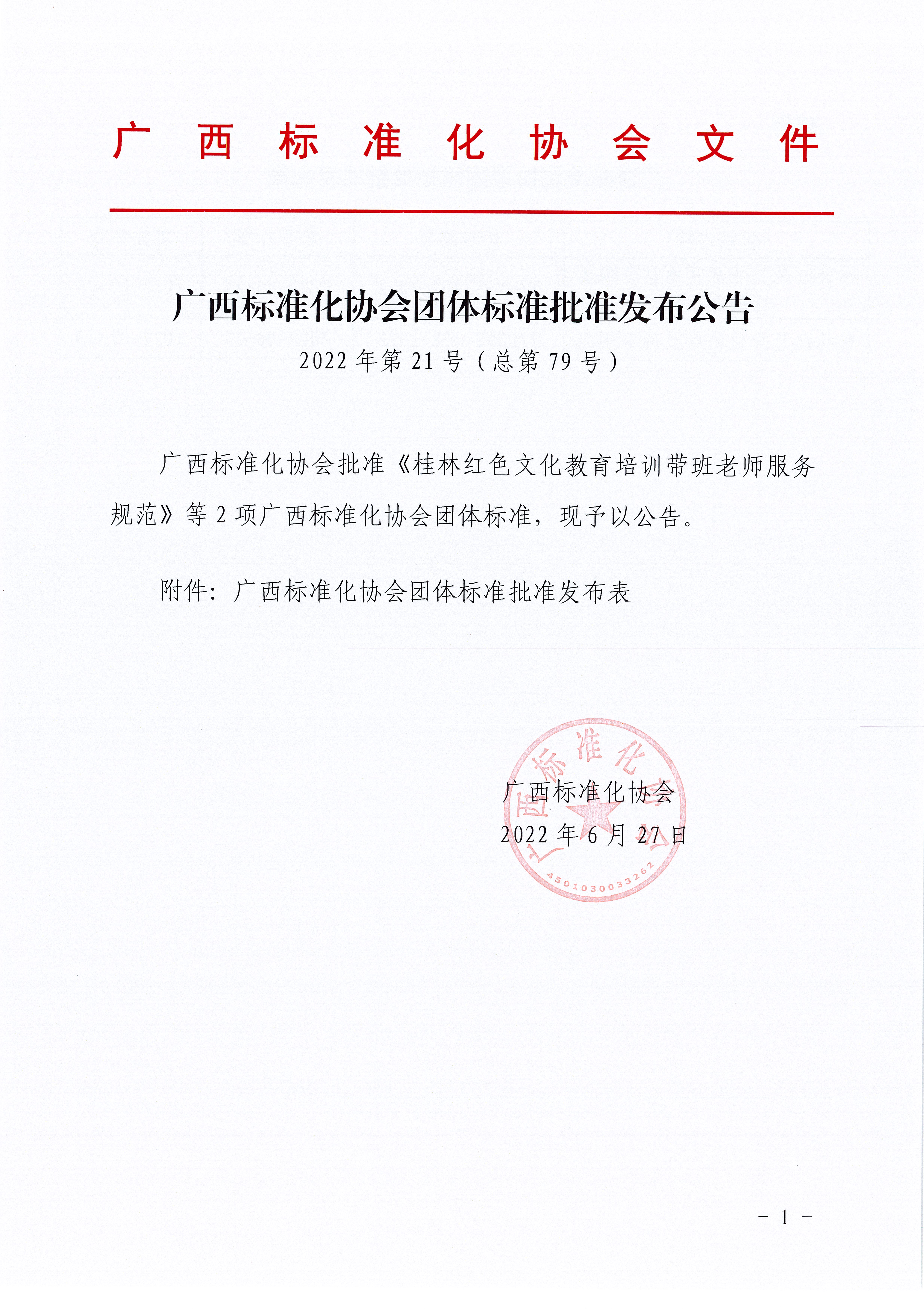 广西标准化协会团体标准批准发布公告《2022年第21号(总第79号)》