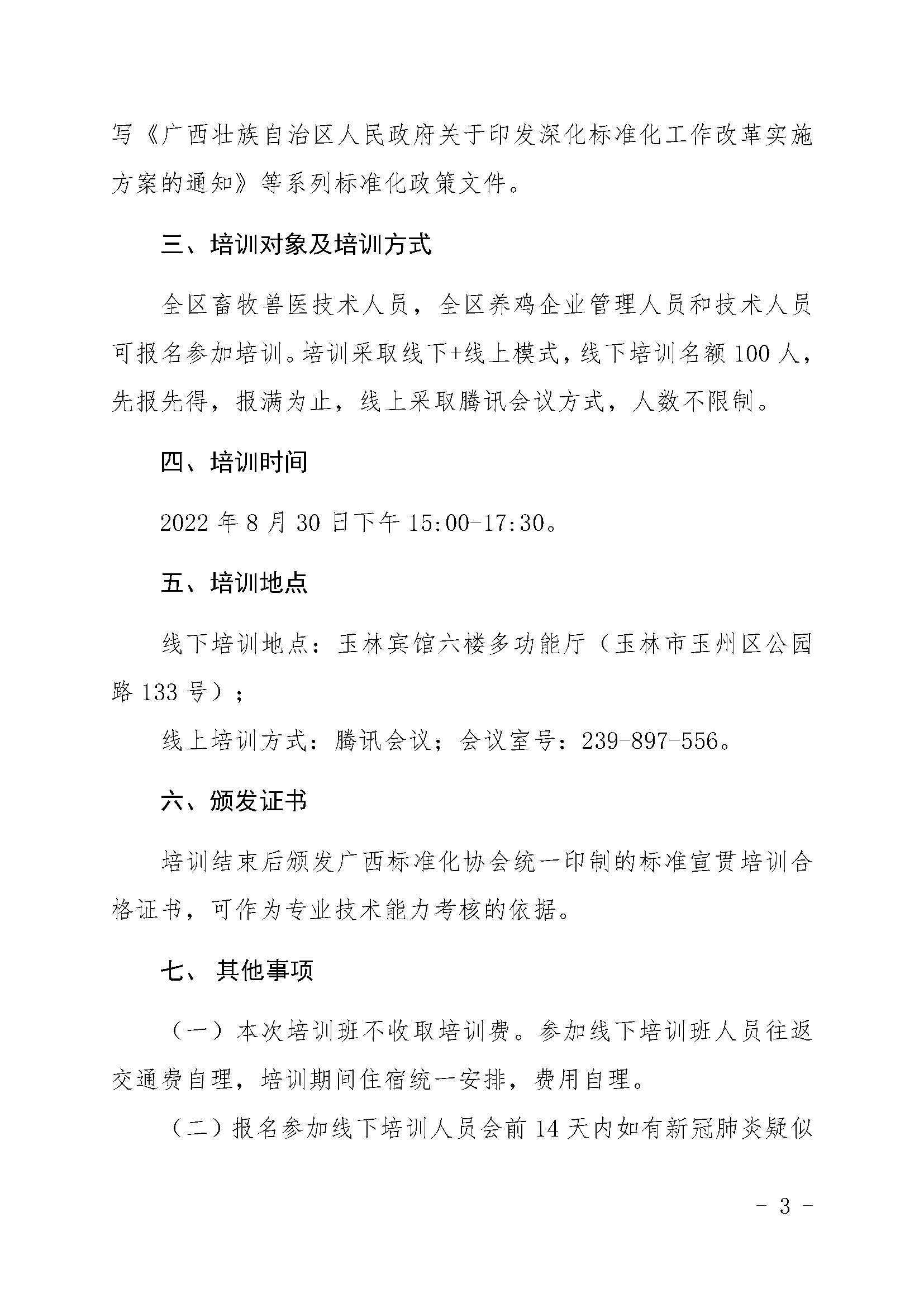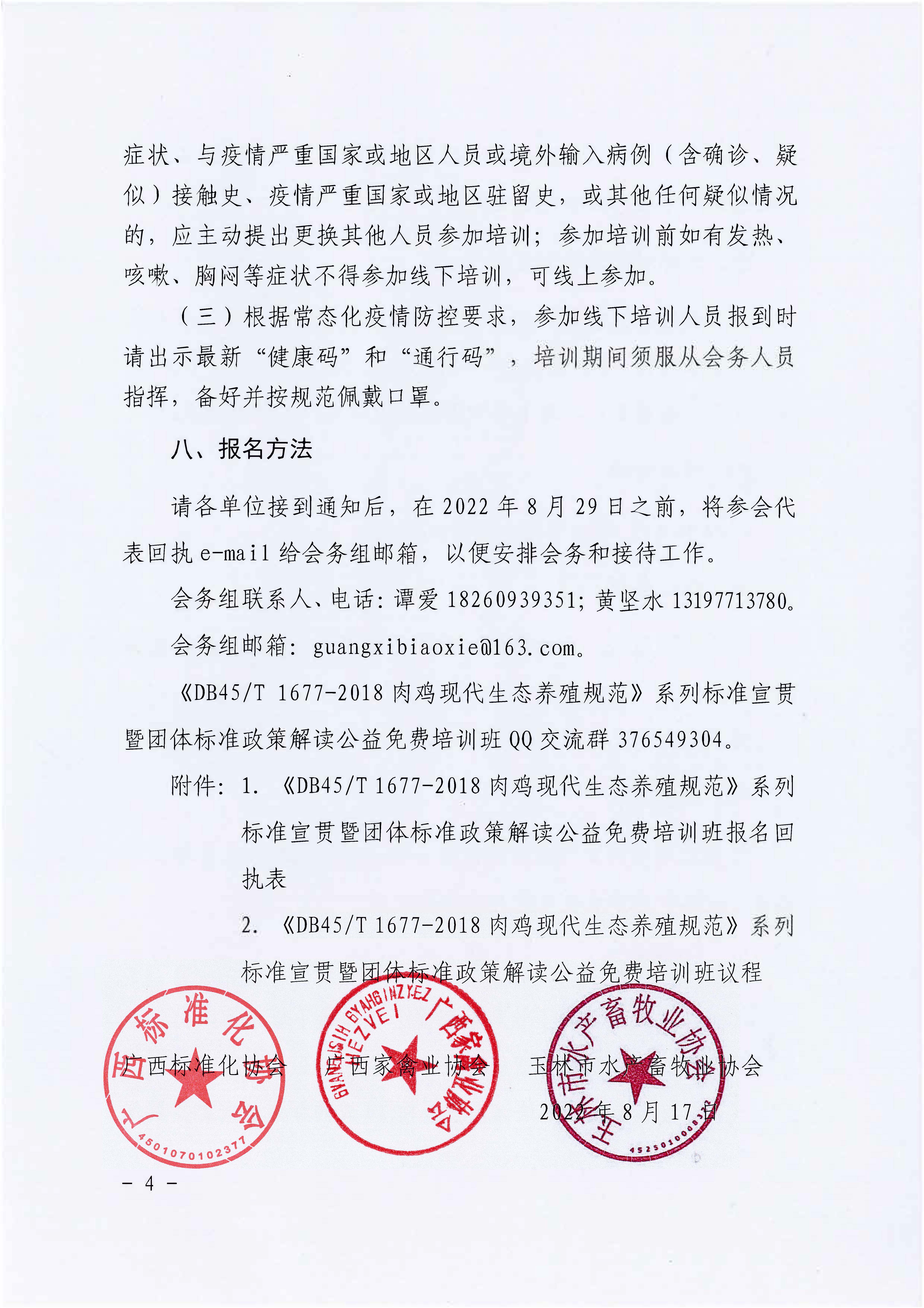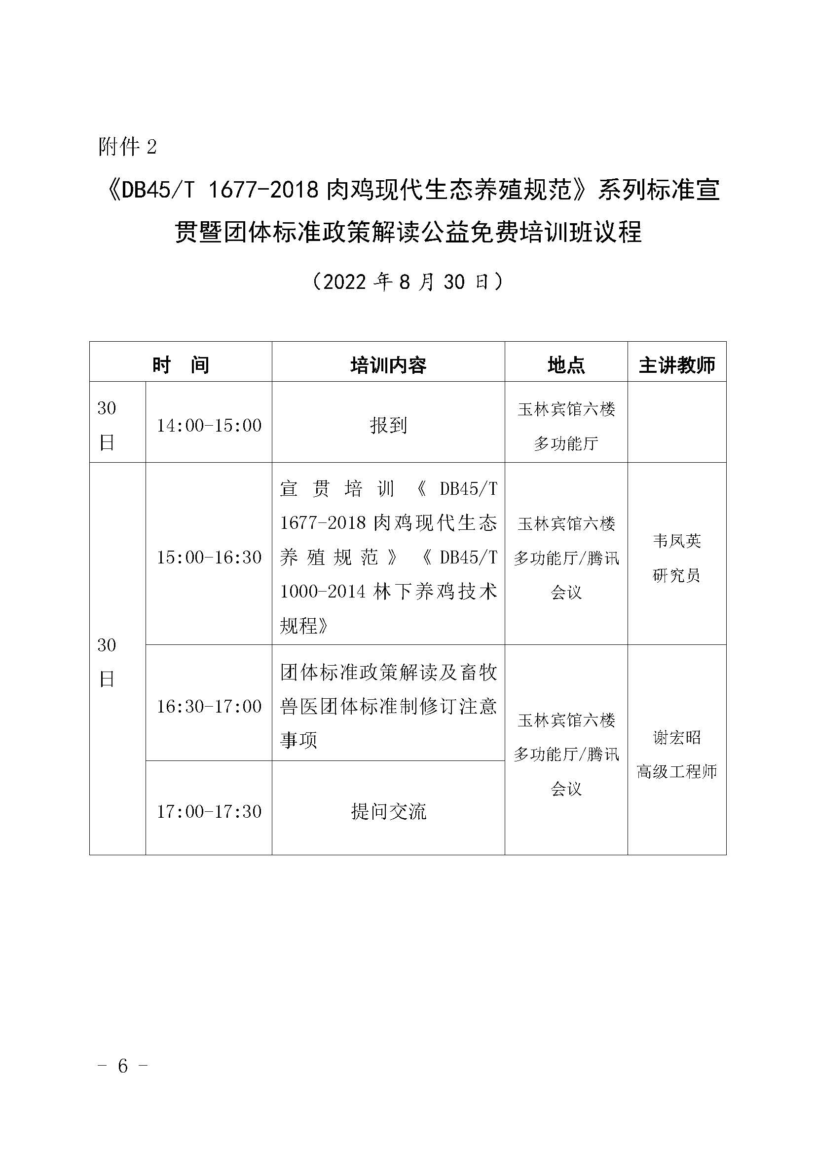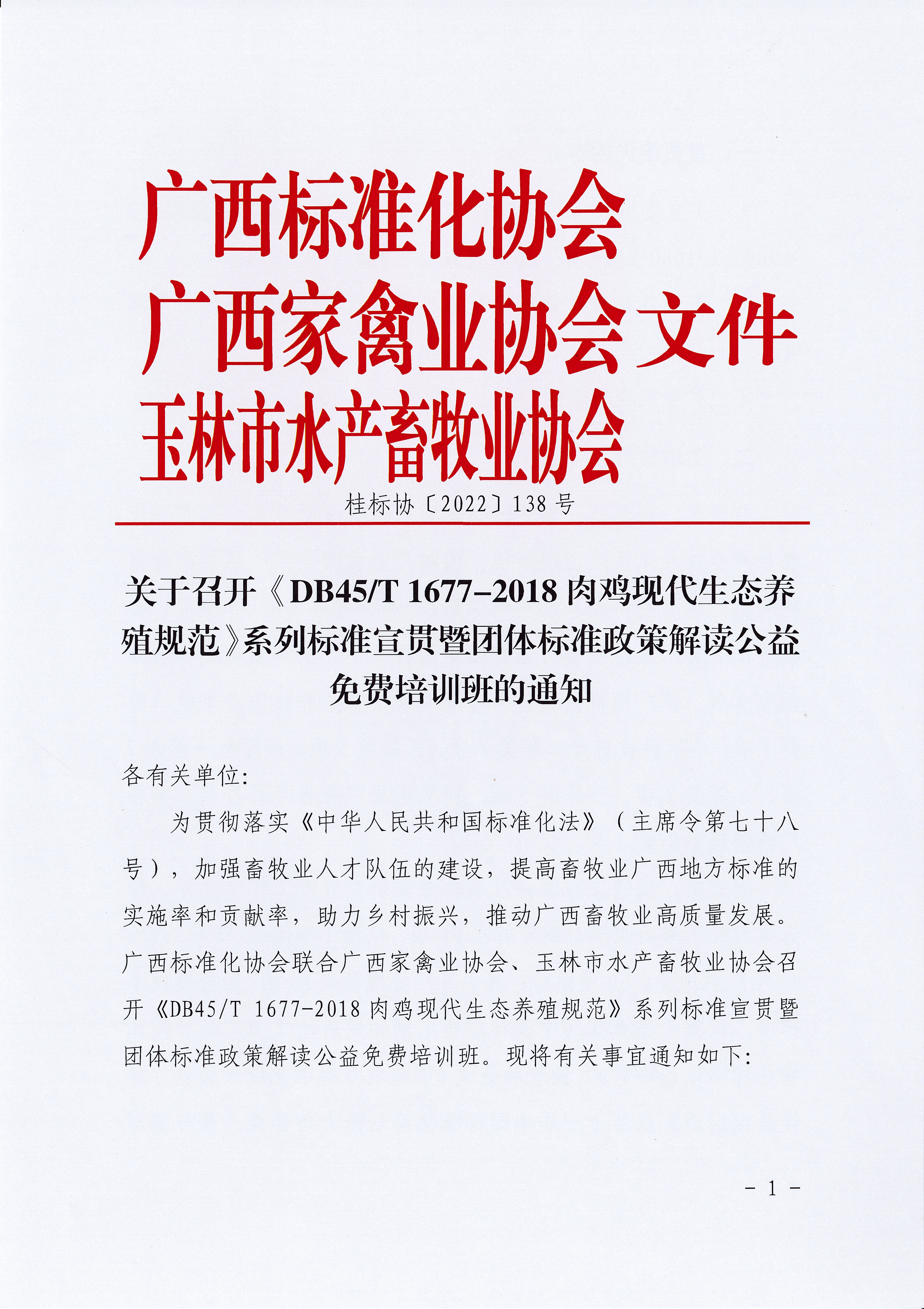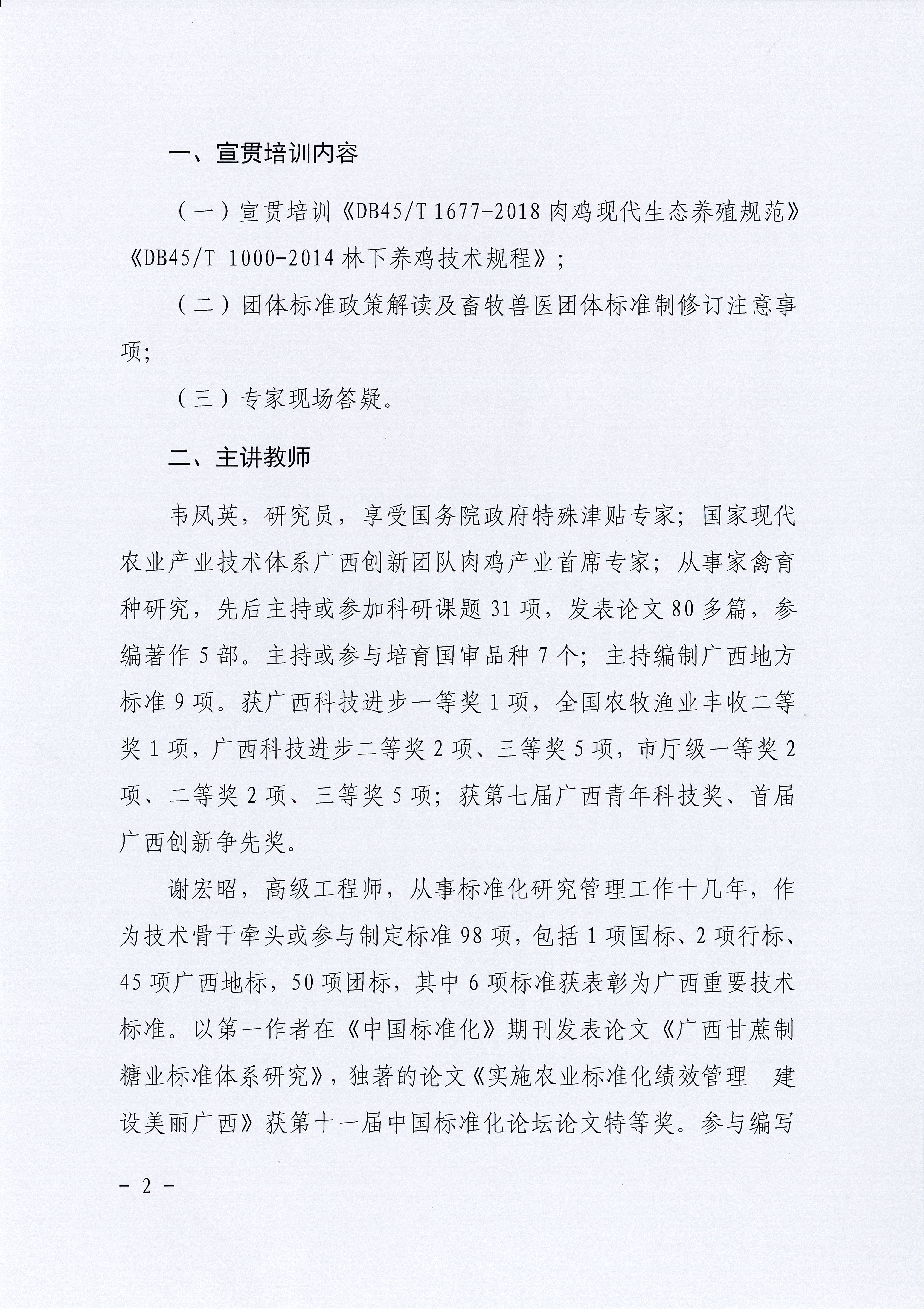 关于召开《DB45T 1677-2018 肉鸡现代生态养殖规范》系列标准宣贯暨团体标准政策解读公益免费培训班的通知