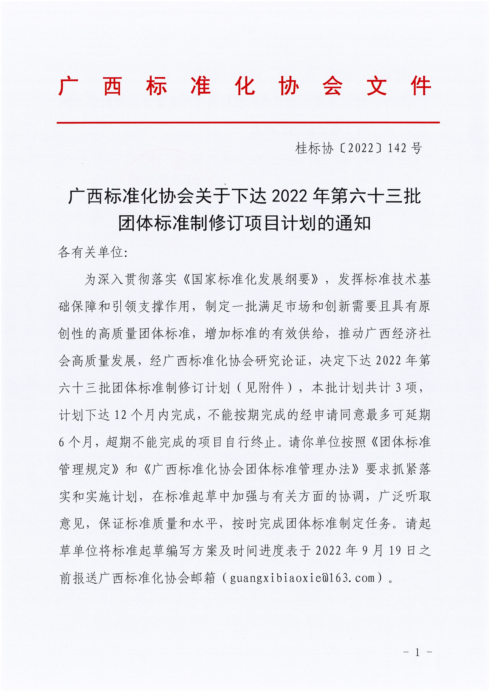 广西标准化协会关于下达2022年第六十三批团体标准制修订项目计划的通知