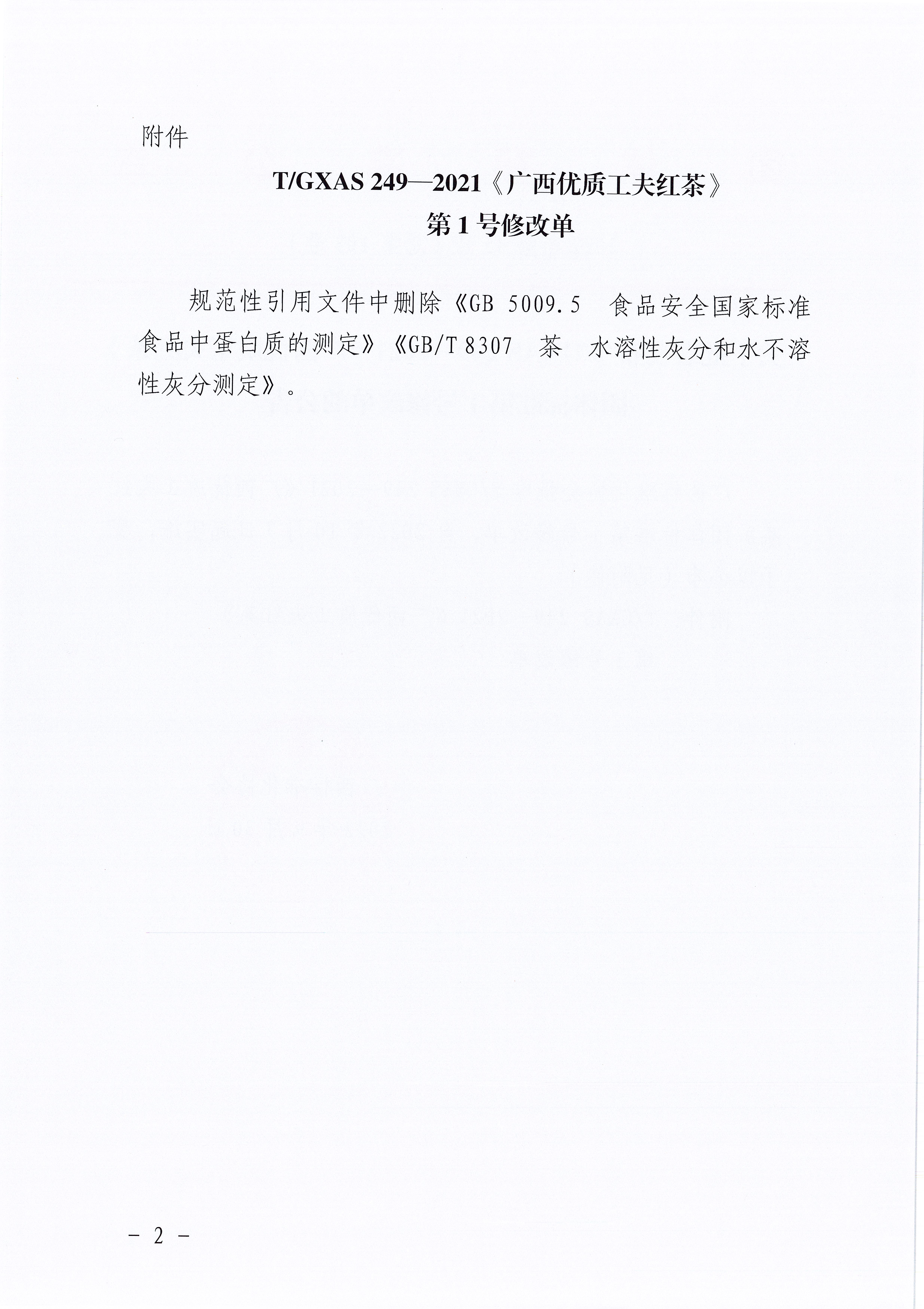 关于批准发布TGXAS 249—2021《广西优质工夫红茶》团体标准第1号修改单的公告