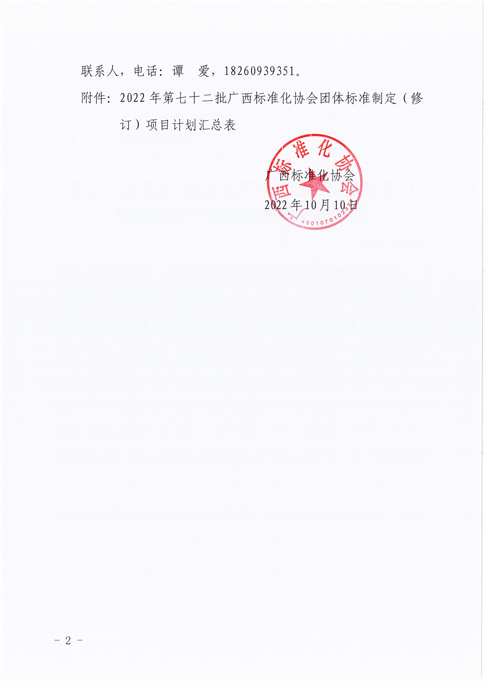 广西标准化协会关于下达2022年第七十二批团体标准制修订项目计划的通知