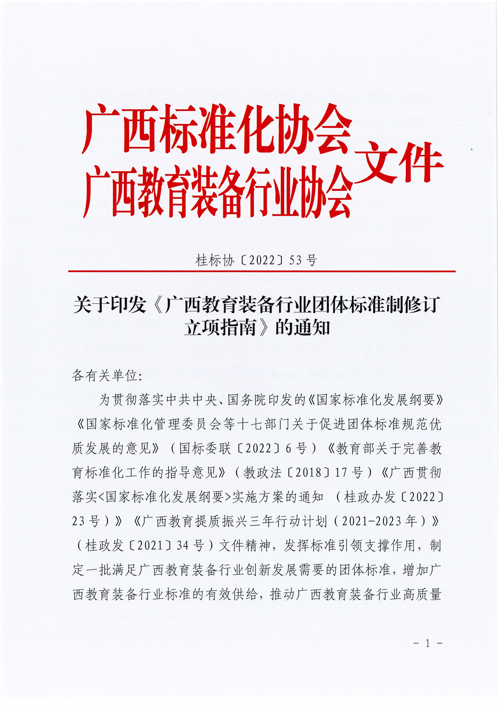 关于印发《广西教育装备行业团体标准制修订立项指南》的通知