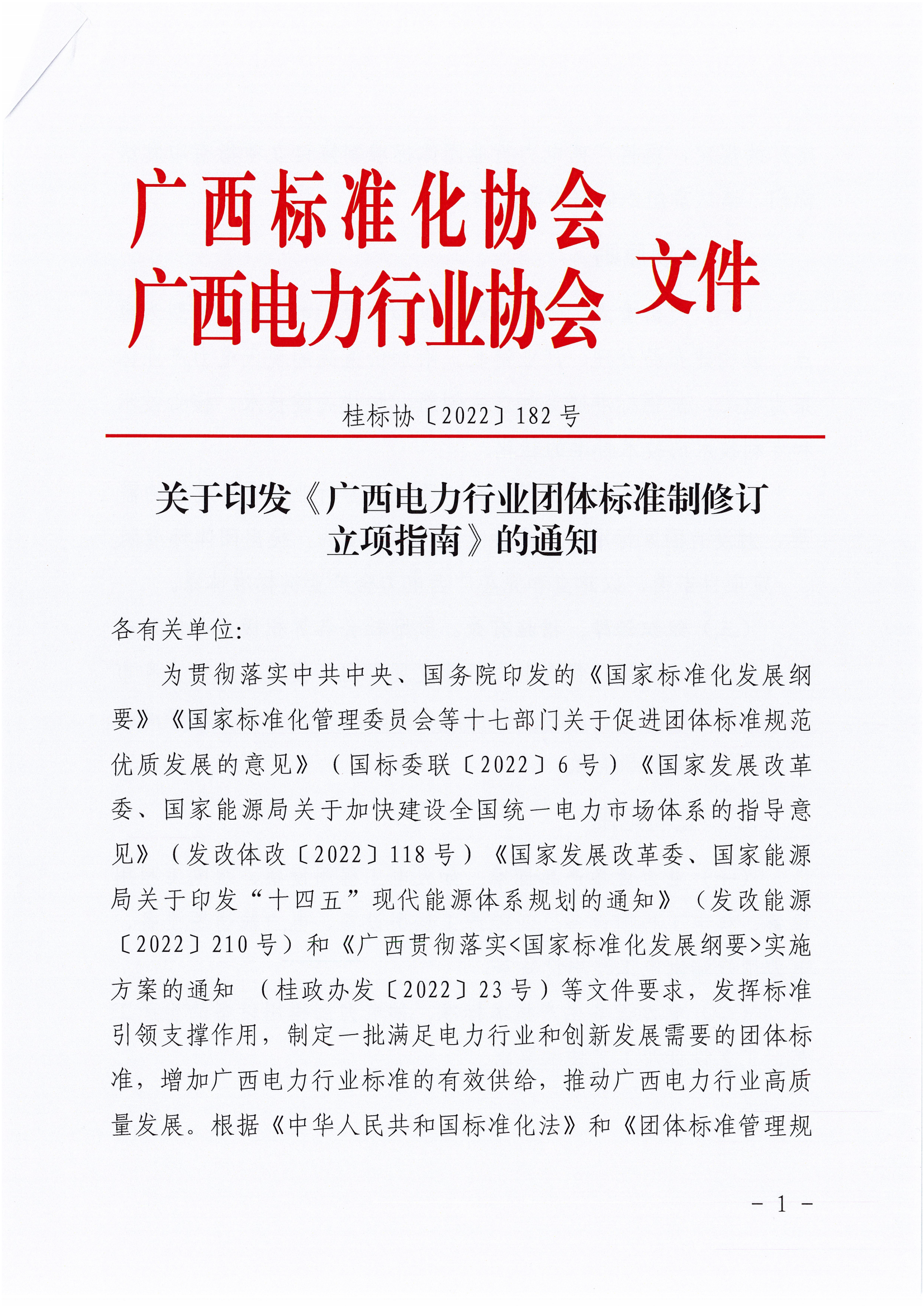 关于印发《广西电力行业团体标准制修订立项指南》的通知