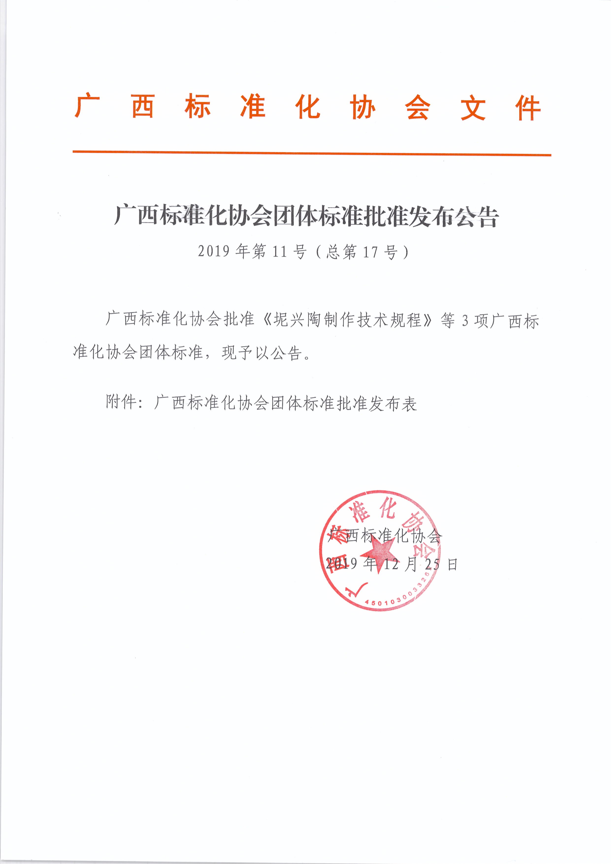 广西标准化协会团体标准批准发布公告《2019年第11号(总第17号)》