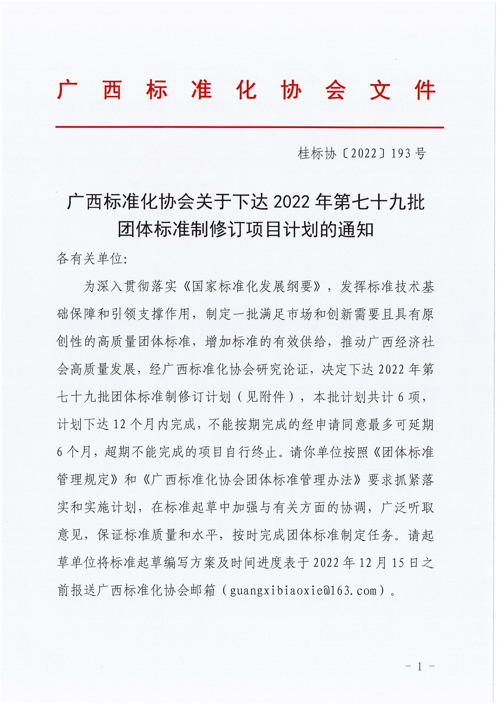 文件下载:广西标准化协会关于下达2022年第七十九批团体标准制修订项目计划的通知