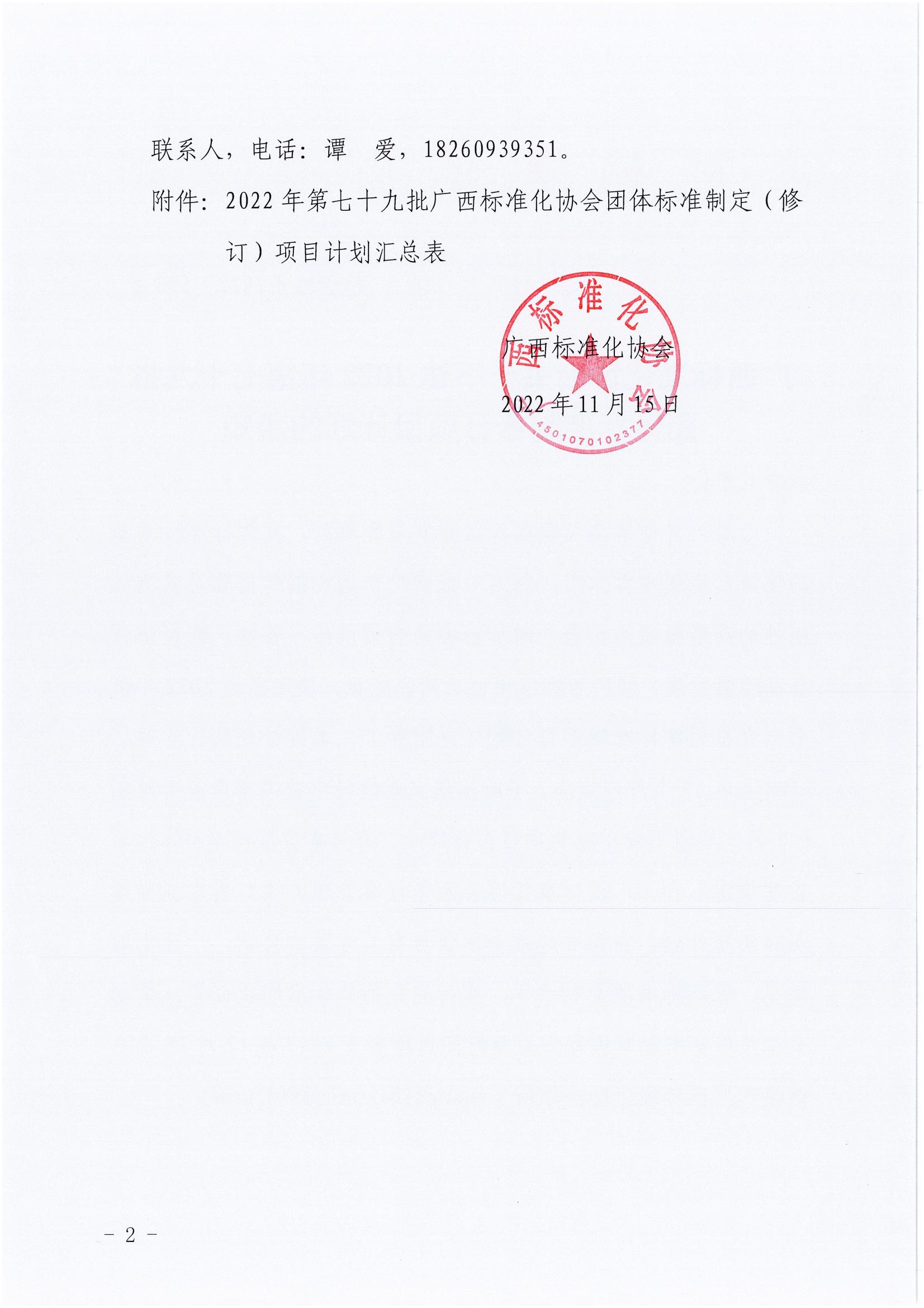 广西标准化协会关于下达2022年第七十九批团体标准制修订项目计划的通知