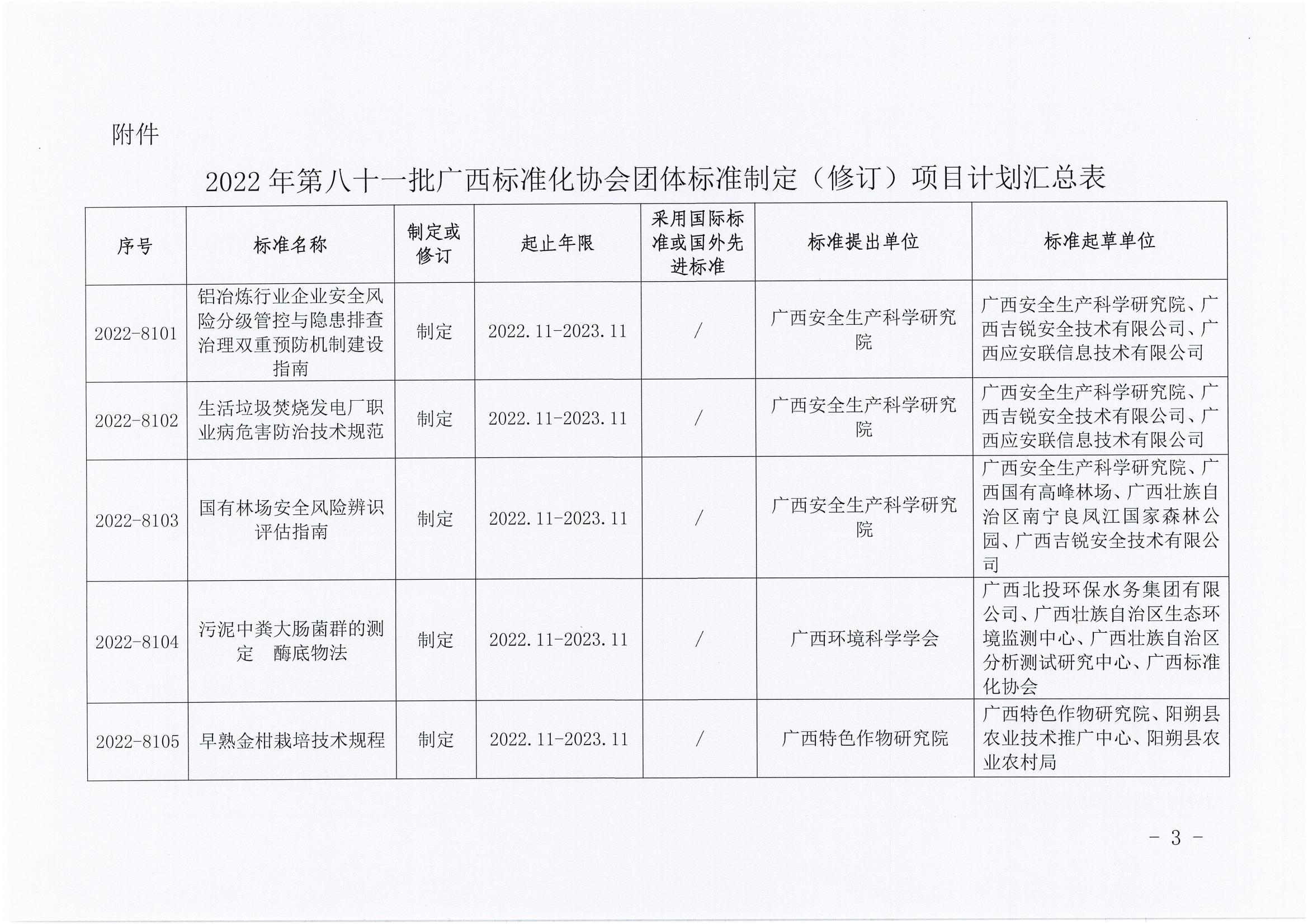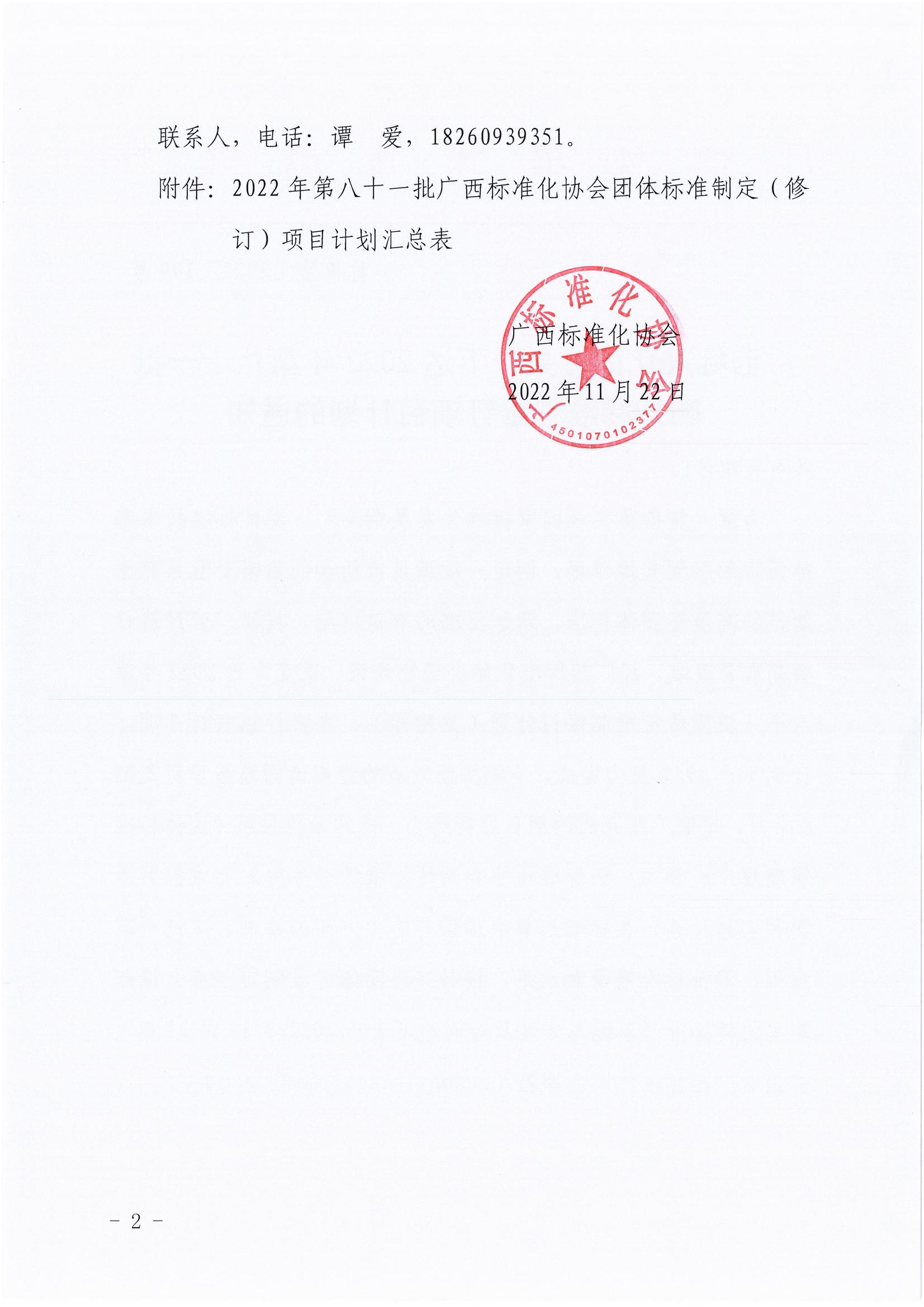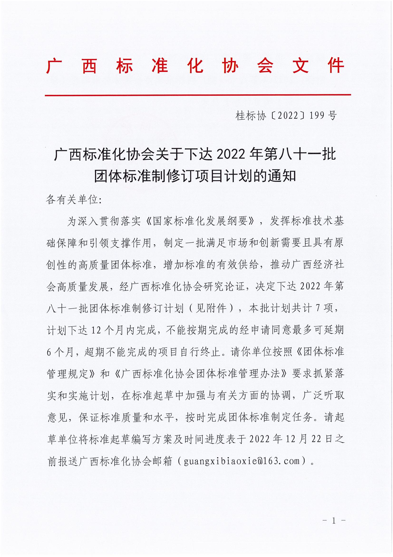 广西标准化协会关于下达2022年第八十一批团体标准制修订项目计划的通知