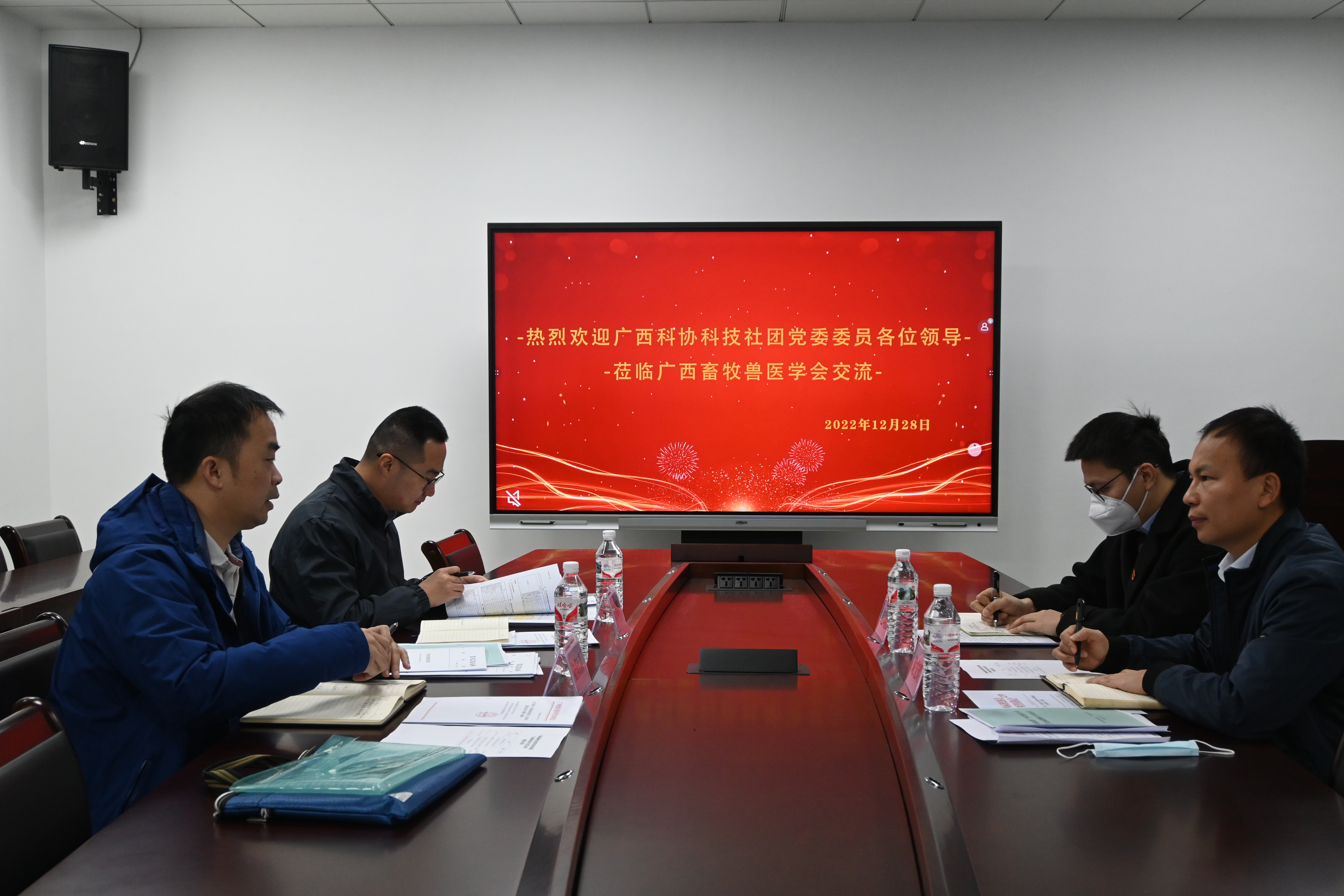2022年12月28日,为进一步贯彻落实中央关于党要管党、从严治党的重大部署,增强广西科协科技社团党委与广西畜牧兽医学会党支部的沟通,密切联系广西畜牧兽医学会,听取党员意见,进一步推进广西畜牧兽医学会党支部标准化规范化建设,广西科协科技社团党委委员谢宏昭到广西畜牧兽医学会党支部实地走访调研座谈,广西畜牧兽医学会副理事长兼秘书长/党支部副书记陆阳清、副秘书长兼党支部组织委员王晓晔、广西标准化协会党支部党建专员赵翊波一同参加调研座谈会。