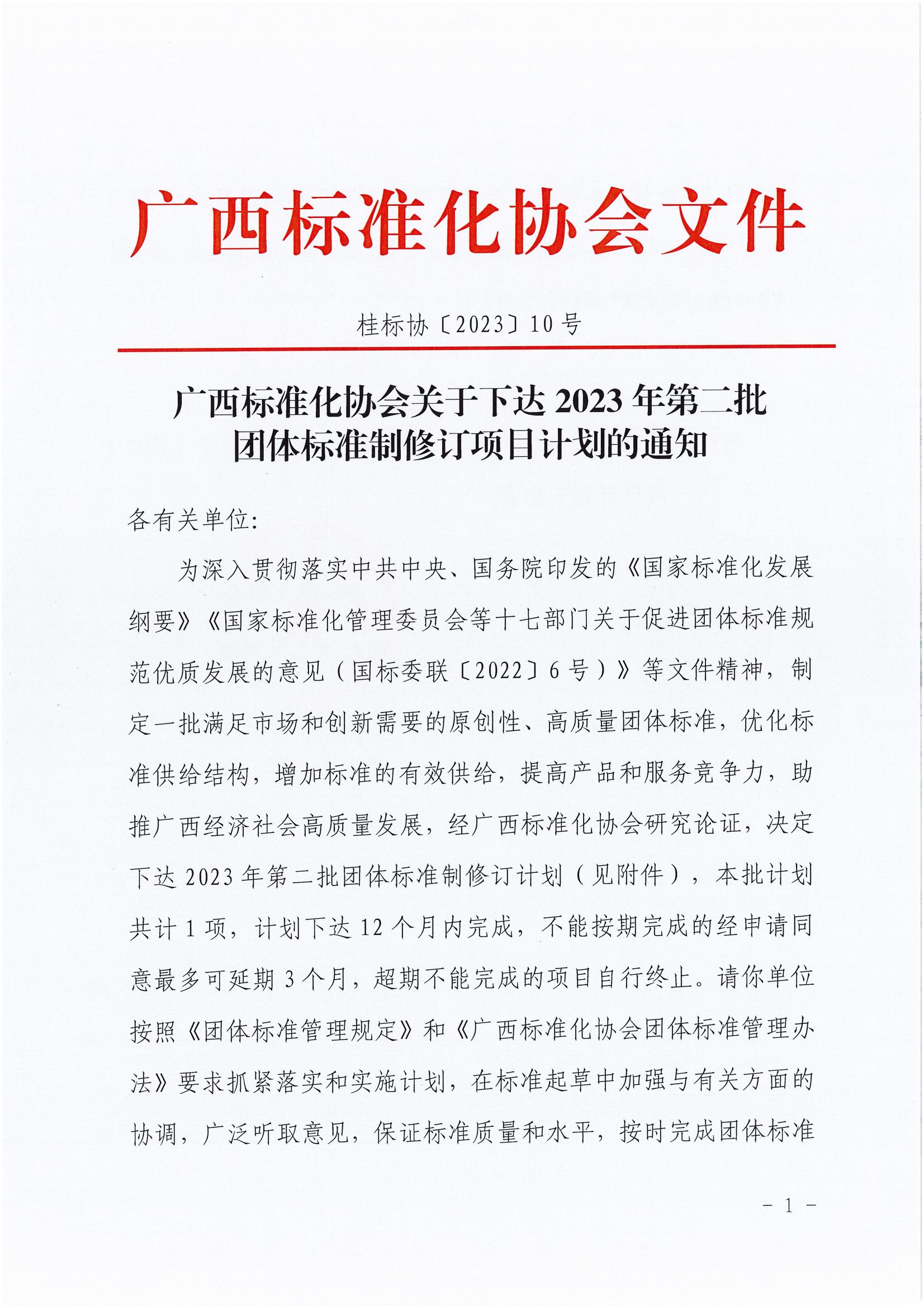 广西标准化协会关于下达2023年第二批团体标准制修订项目计划的通知