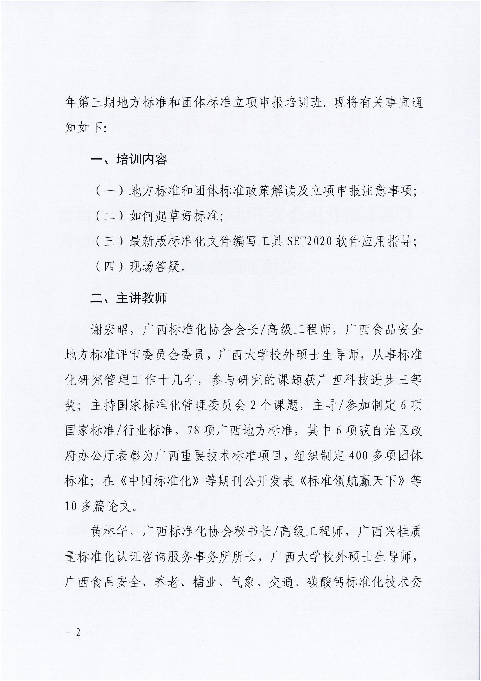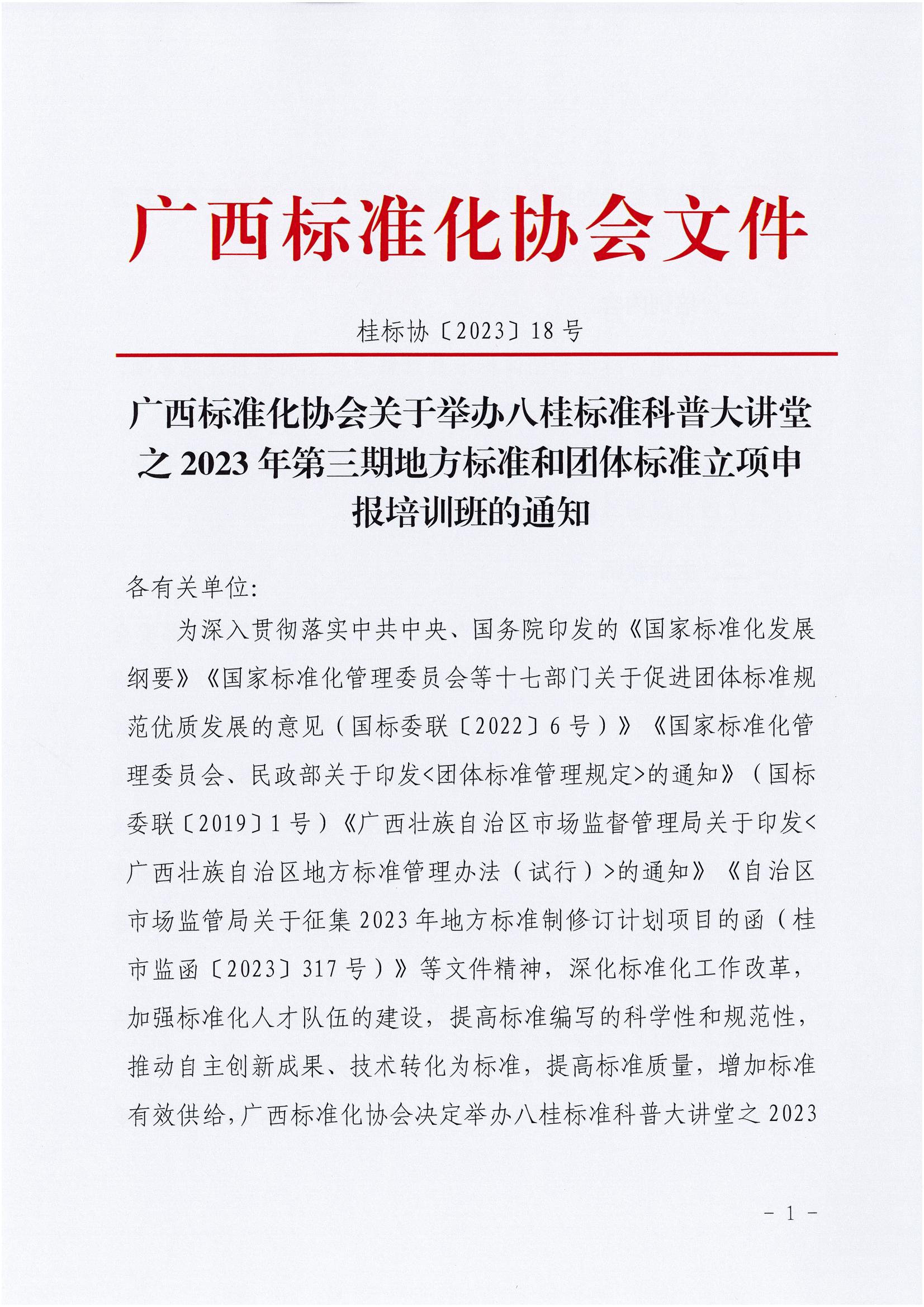 广西标准化协会关于举办八桂标准科普大讲堂之2023年第三期地方标准和团体标准立项申报培训班的通知