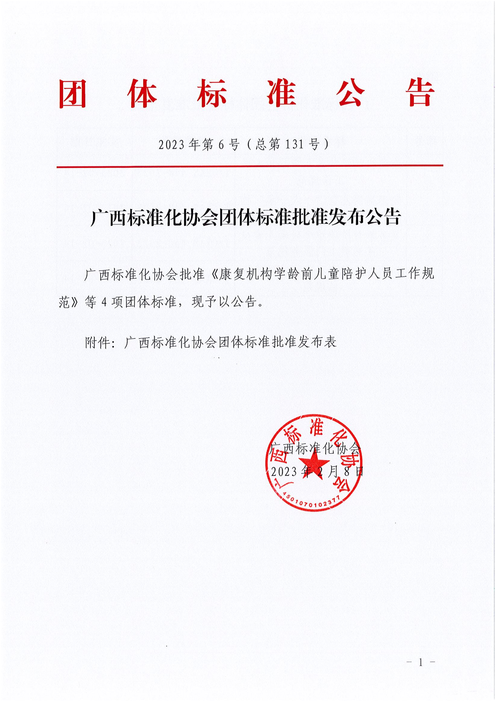 广西标准化协会团体标准批准发布公告《2023年第6号(总第131号)》