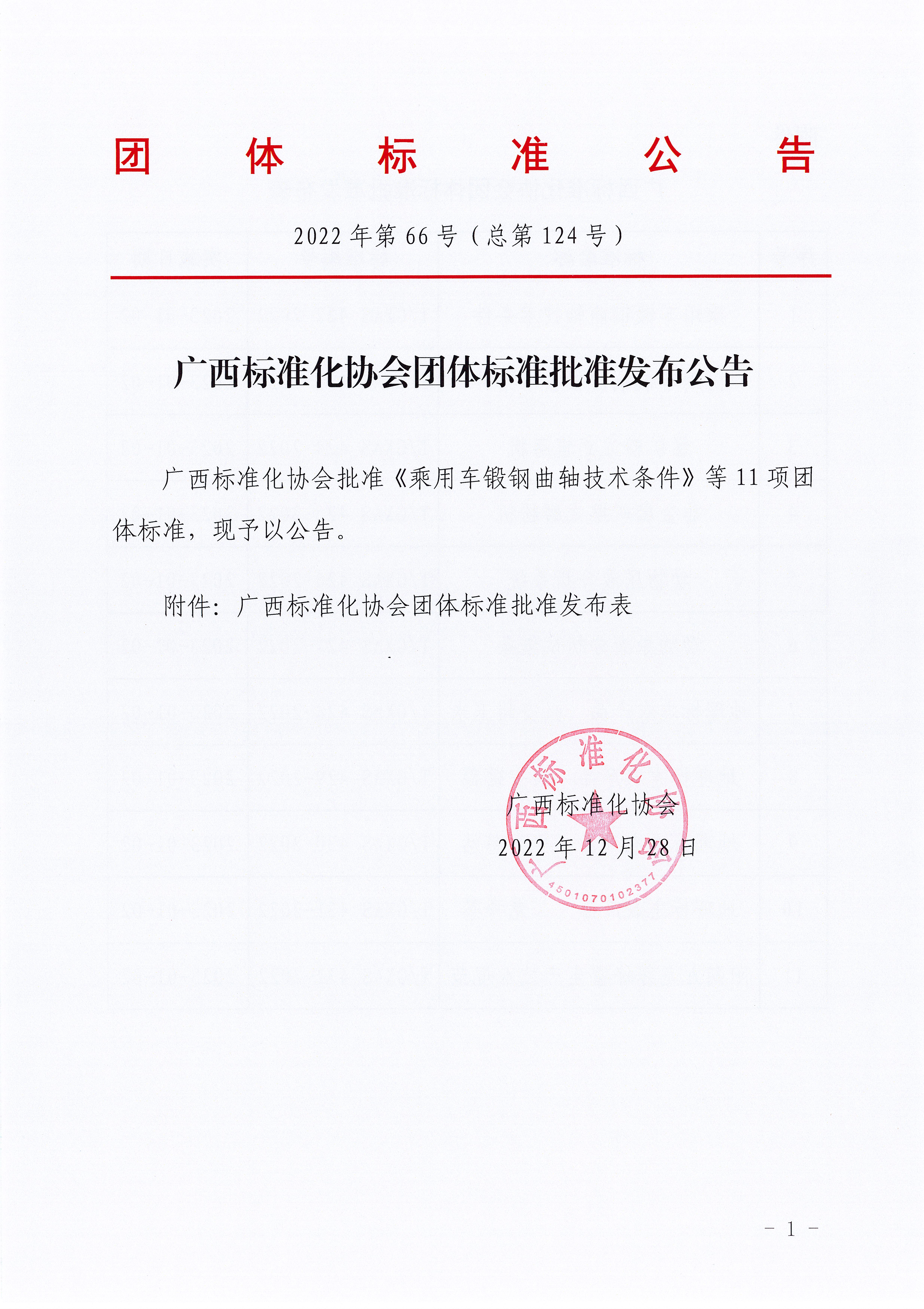 广西标准化协会团体标准批准发布公告《2022年第66号(总第124号)》