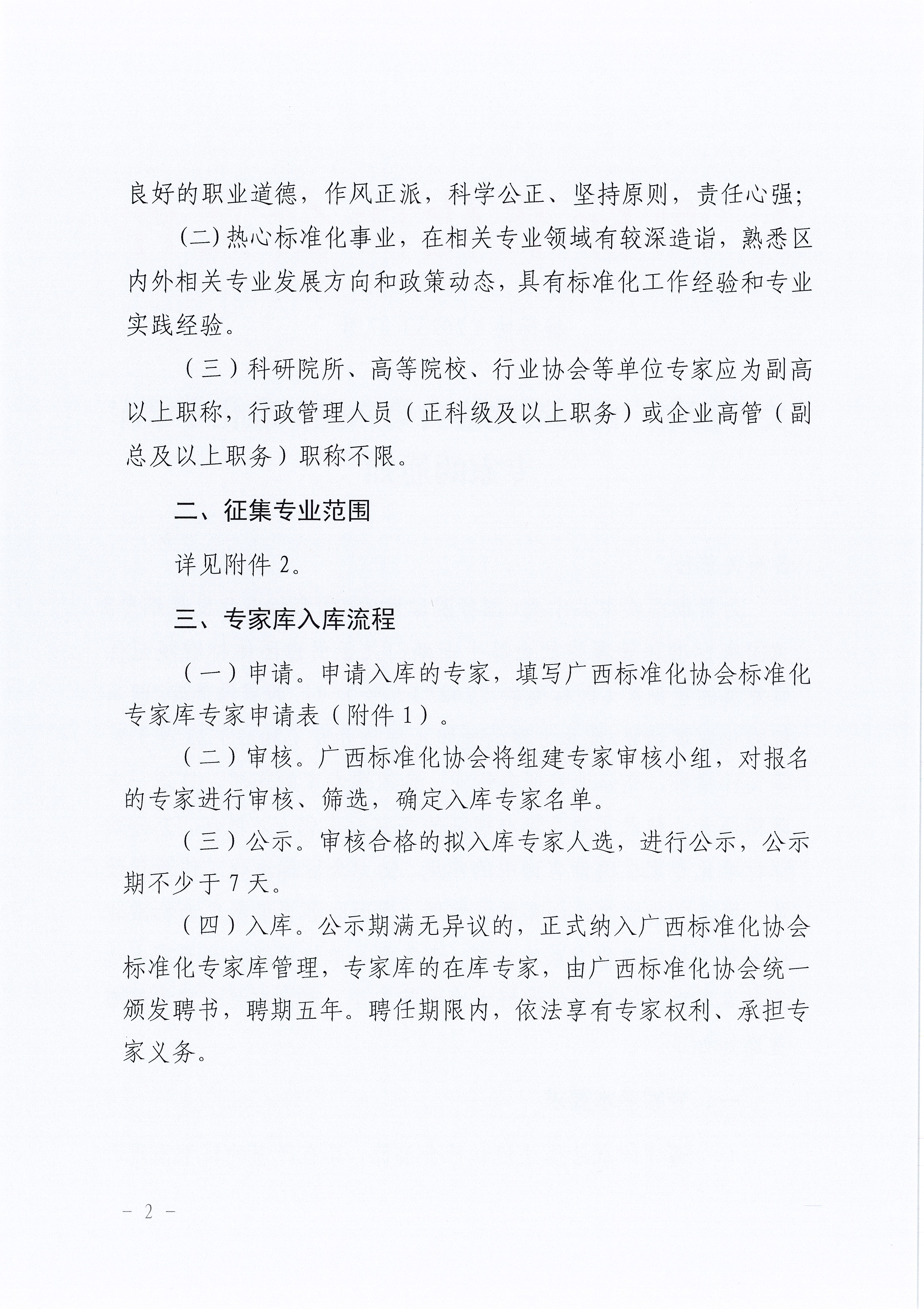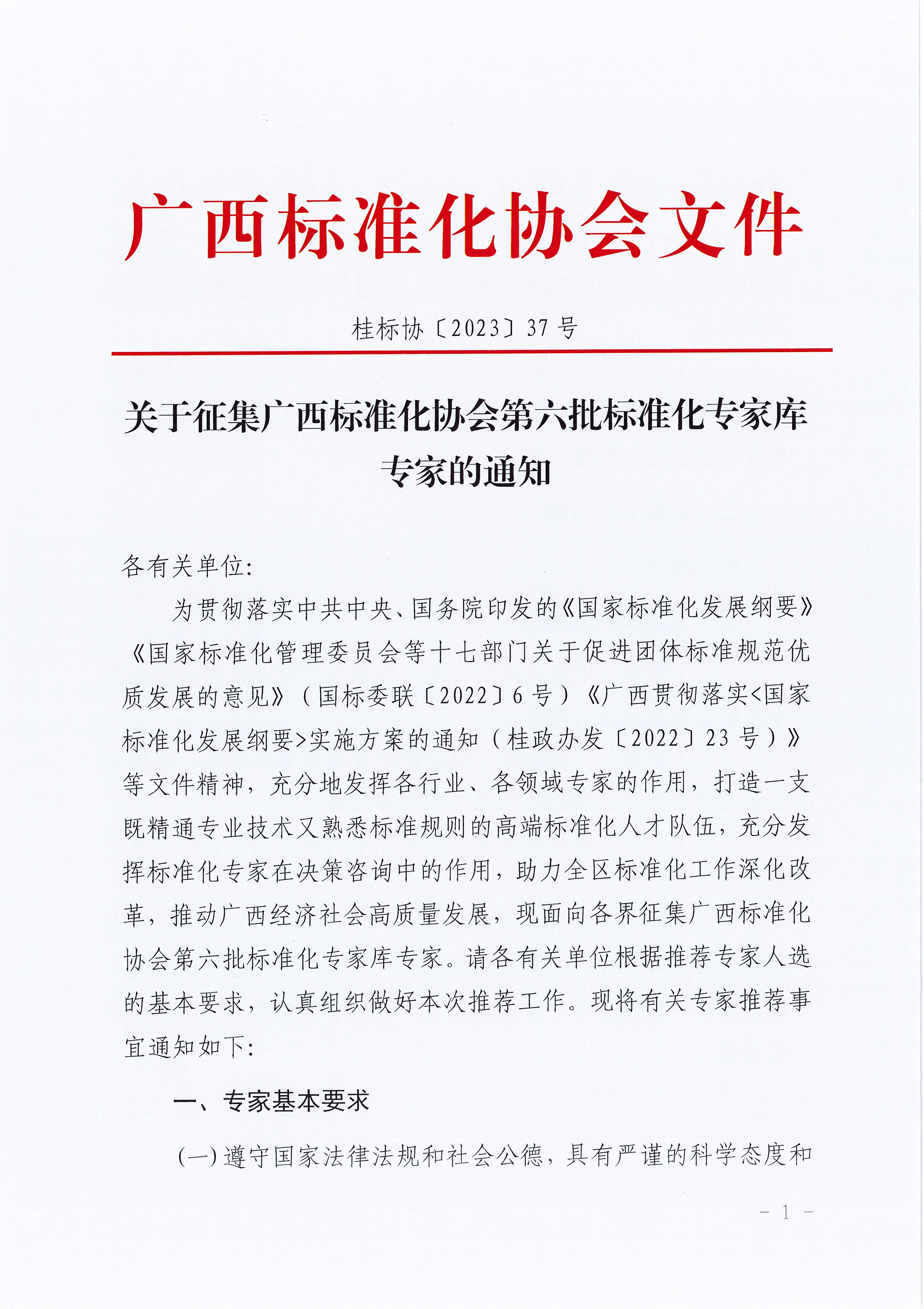 关于征集广西标准化协会第六批标准化专家库专家的通知