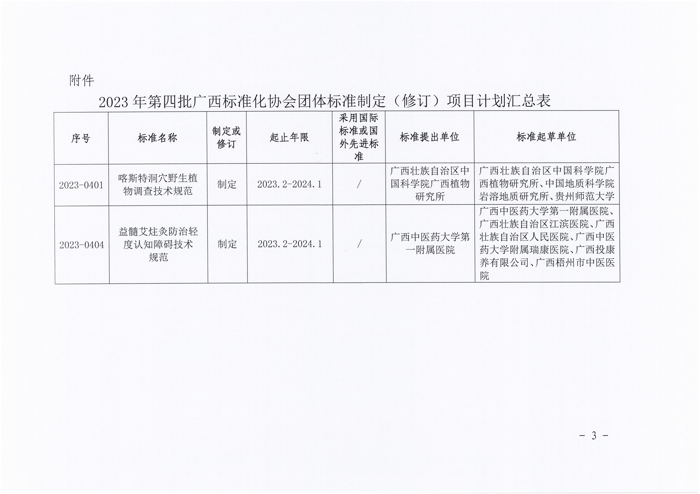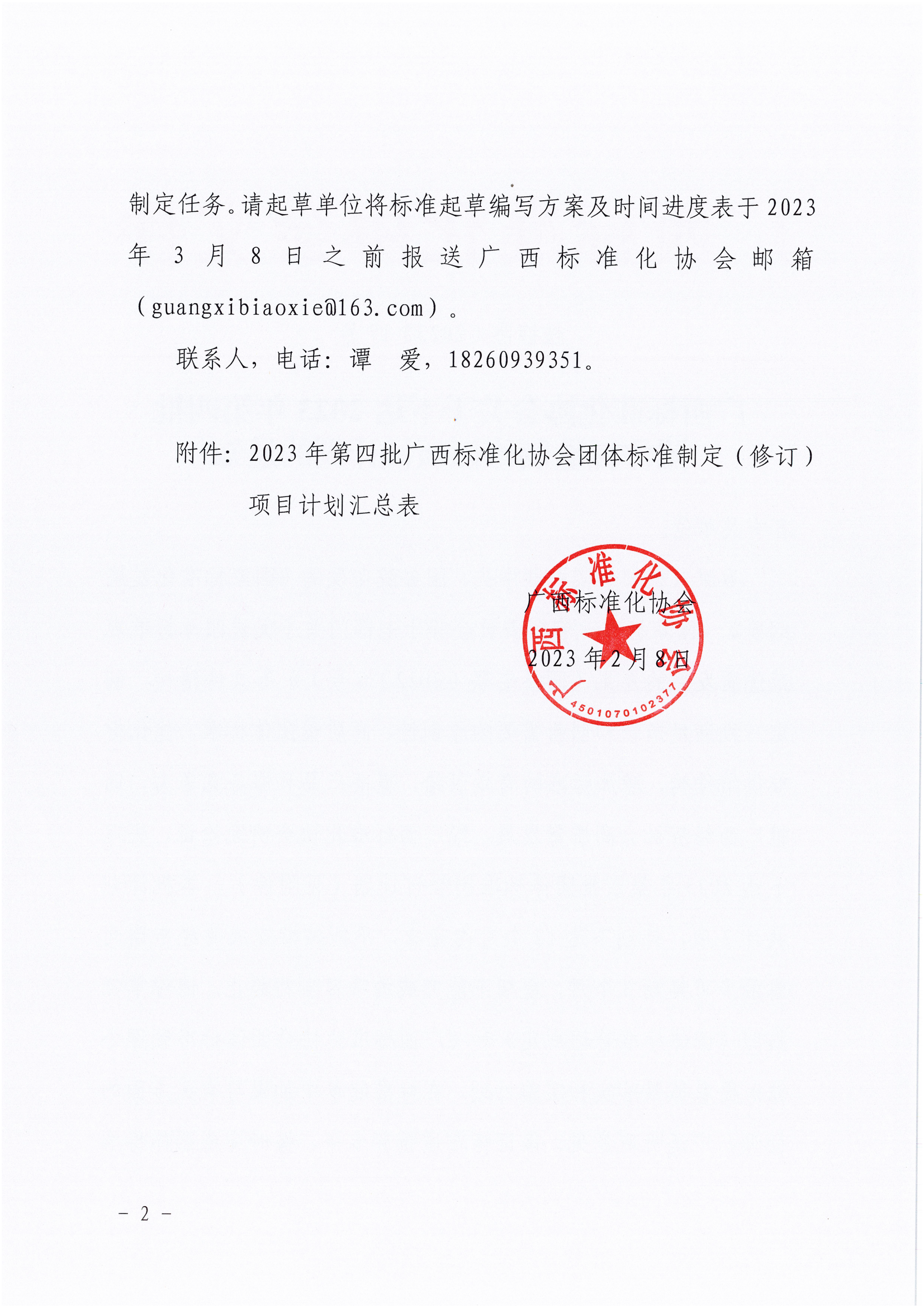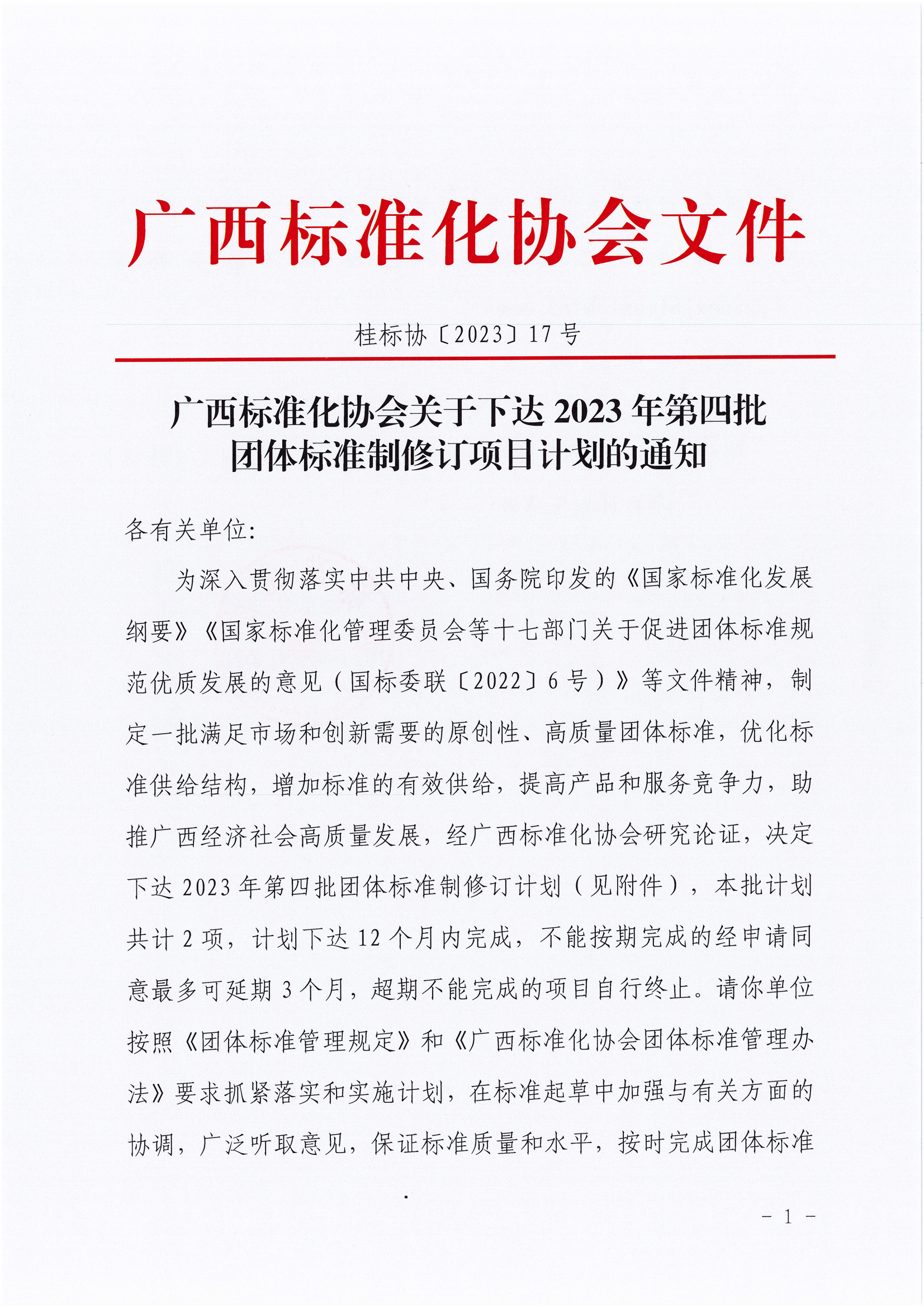 广西标准化协会关于下达2023年第四批团体标准制修订项目计划的通知