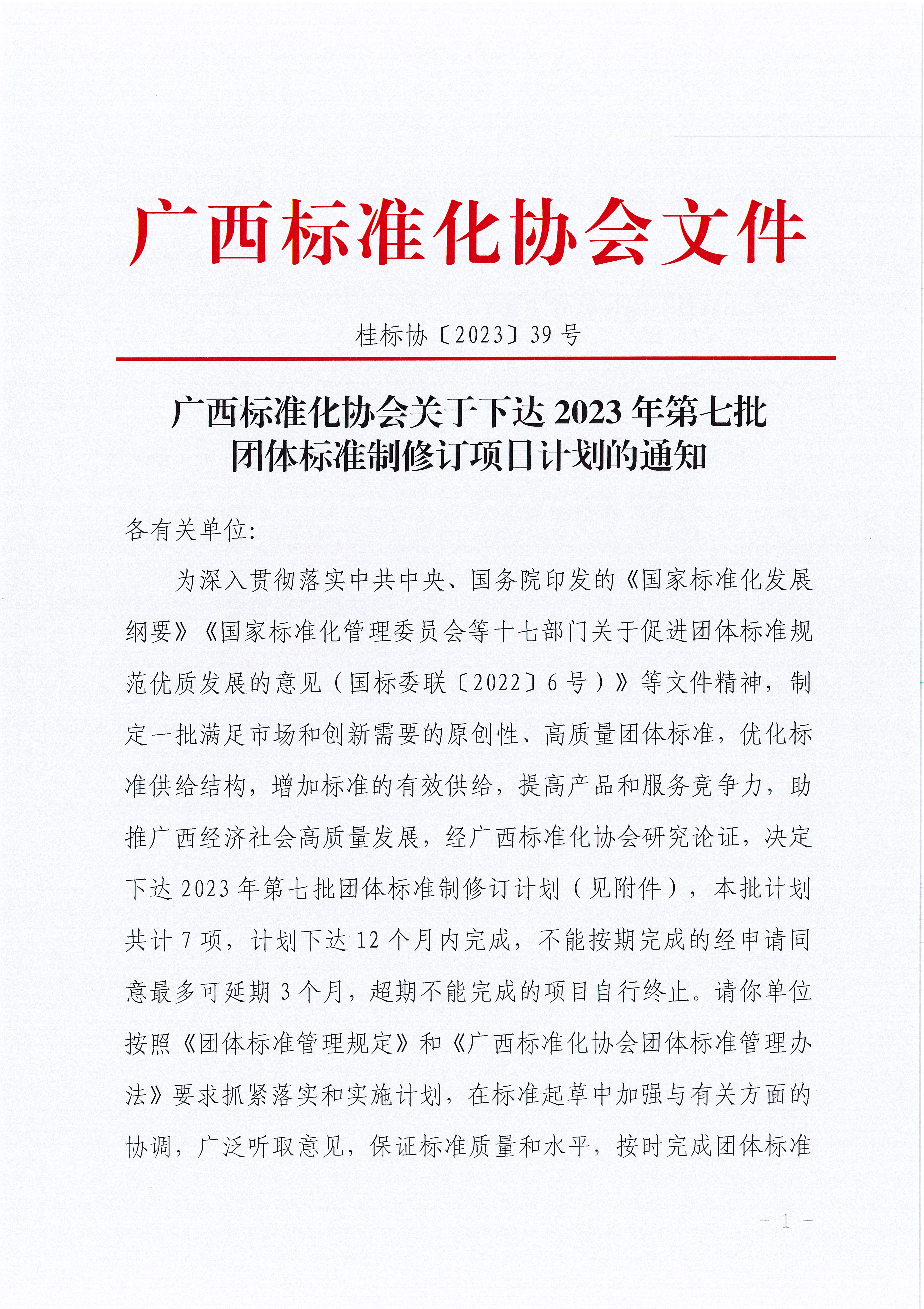 广西标准化协会关于下达2023年第七批团体标准制修订项目计划的通知