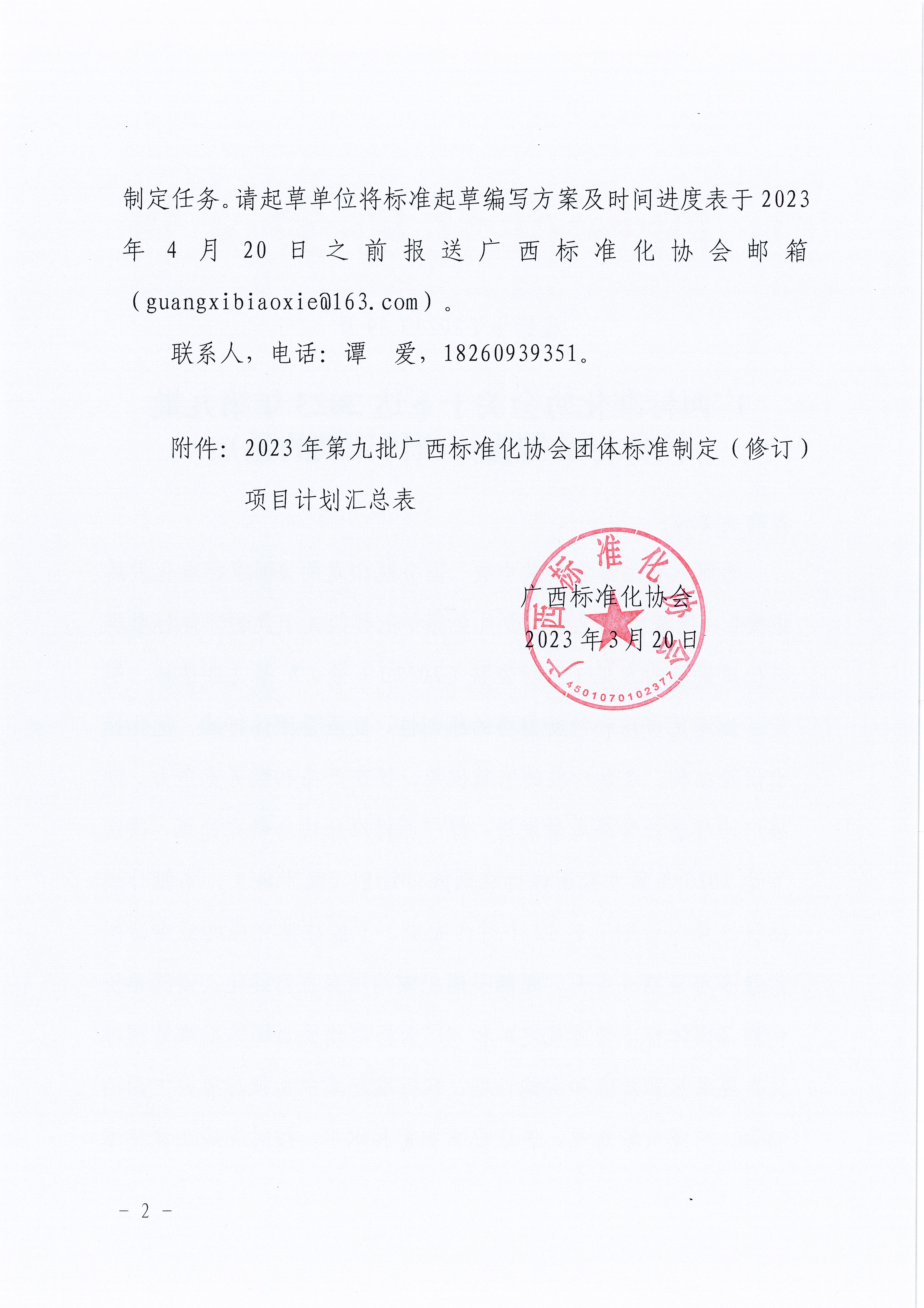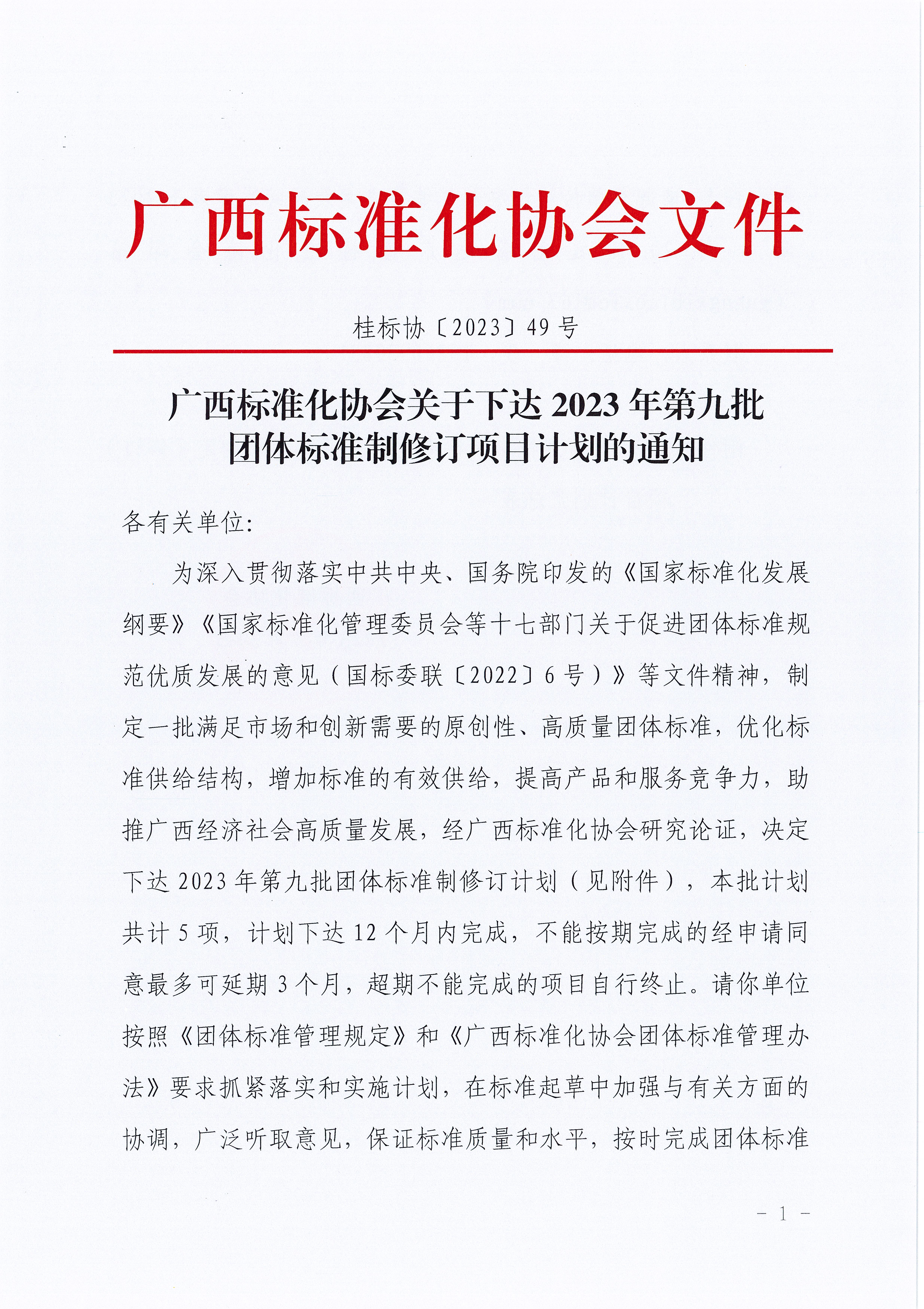 广西标准化协会关于下达2023年第九批团体标准制修订项目计划的通知