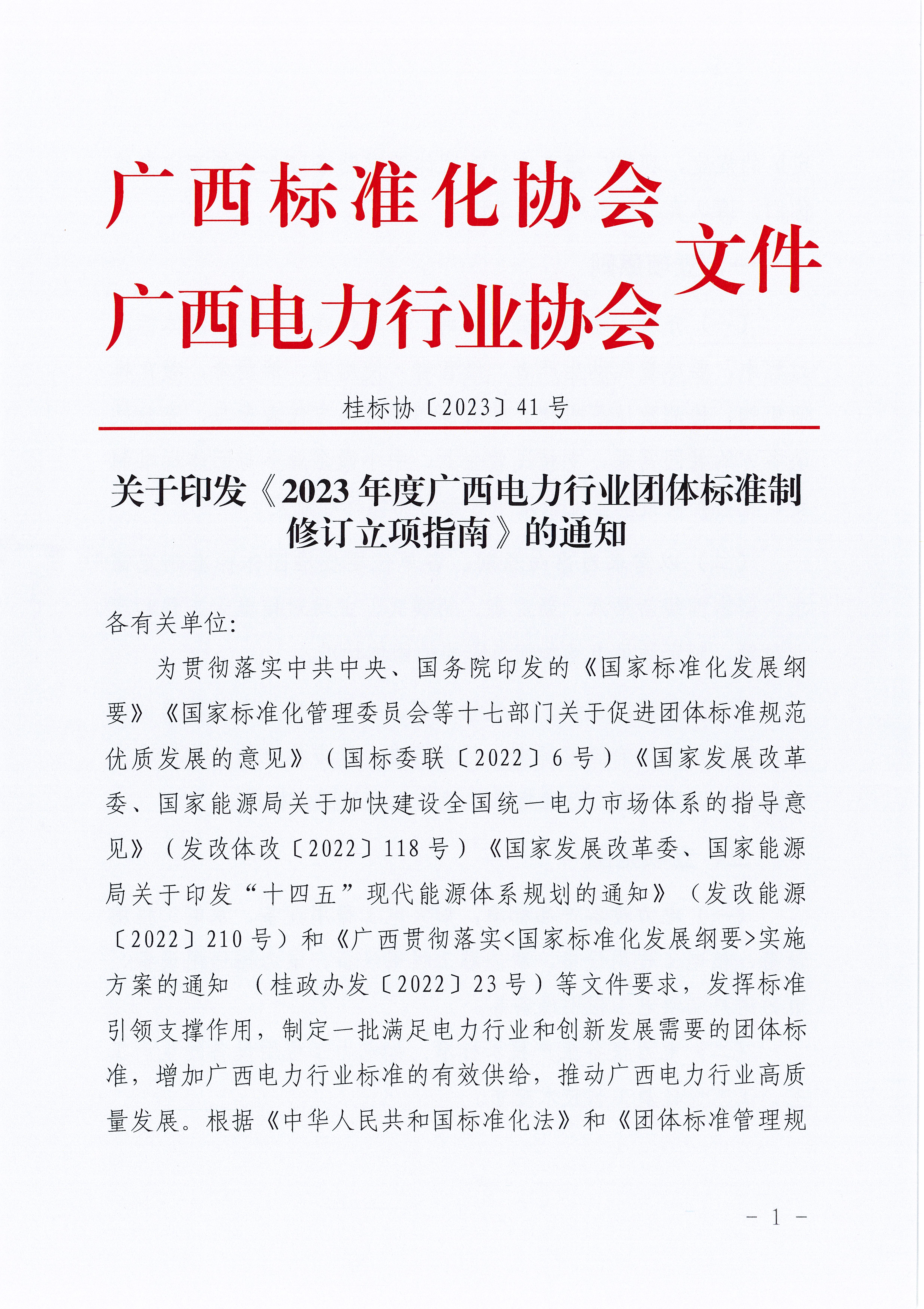 关于印发《2023年度广西电力行业团体标准制修订立项指南》的通知