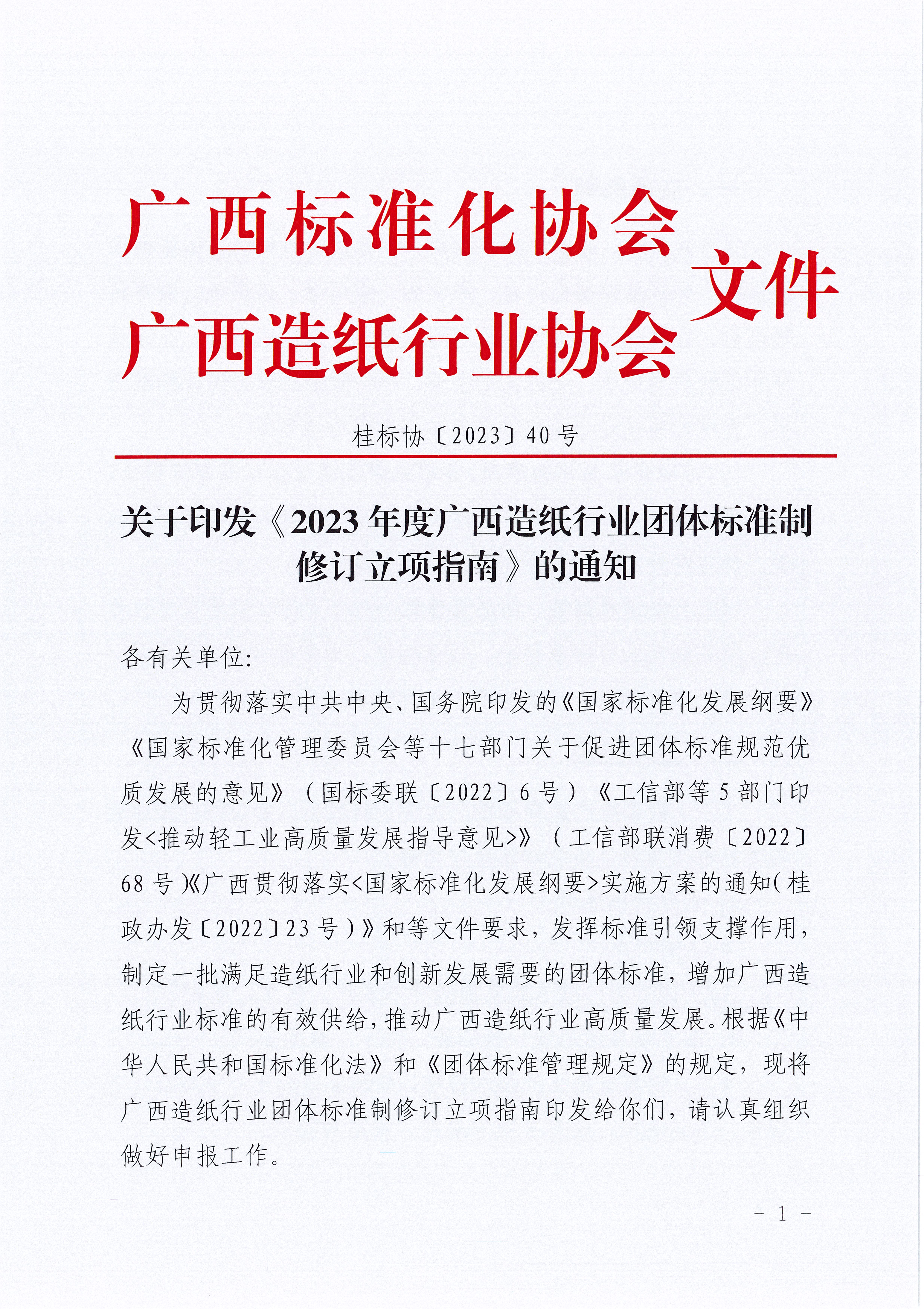 关于印发《2023广西造纸行业团体标准制修订立项指南》的通知